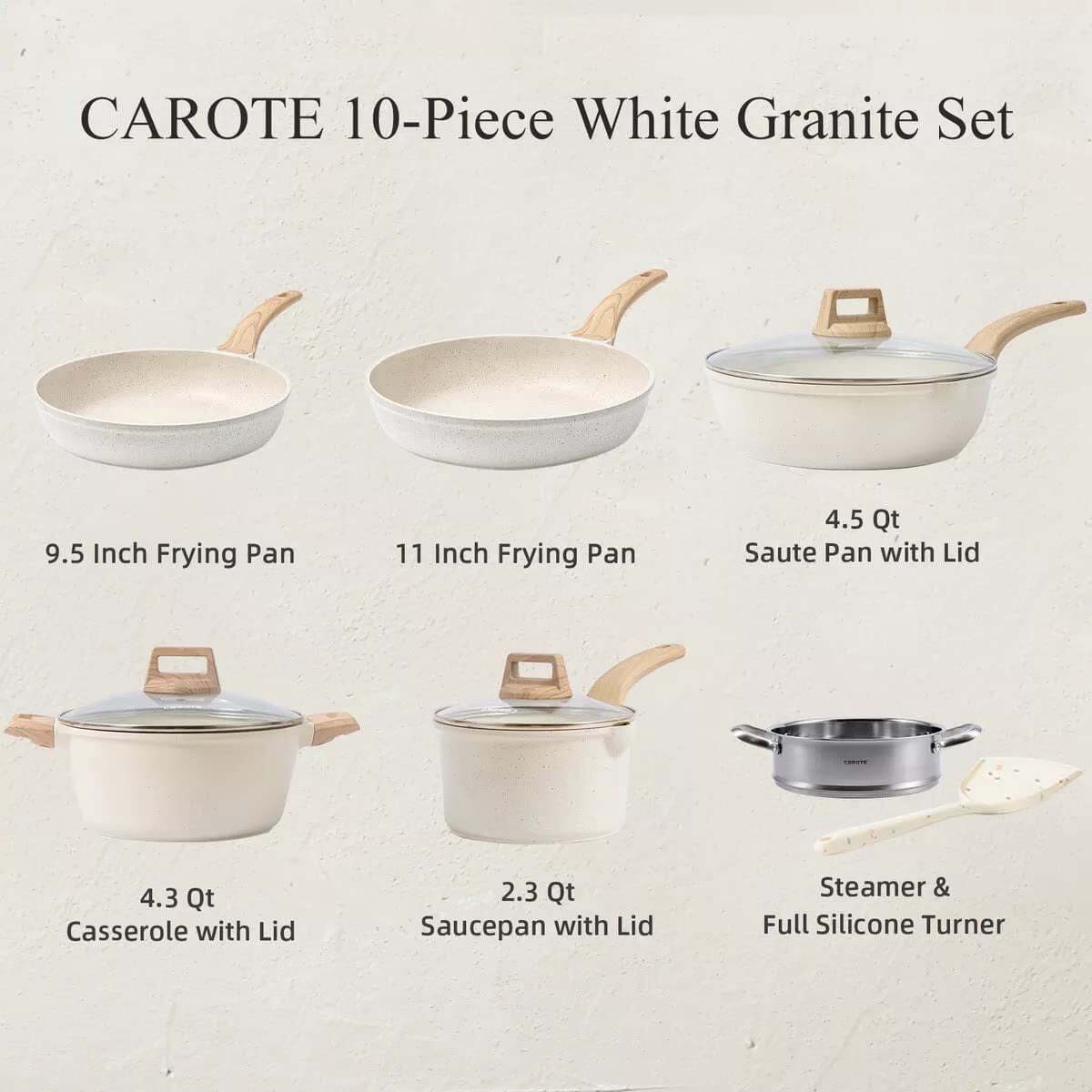 Pots and Pans Set Nonstick, 10 Pcs White Granite Induction Kitchen Cookware Sets