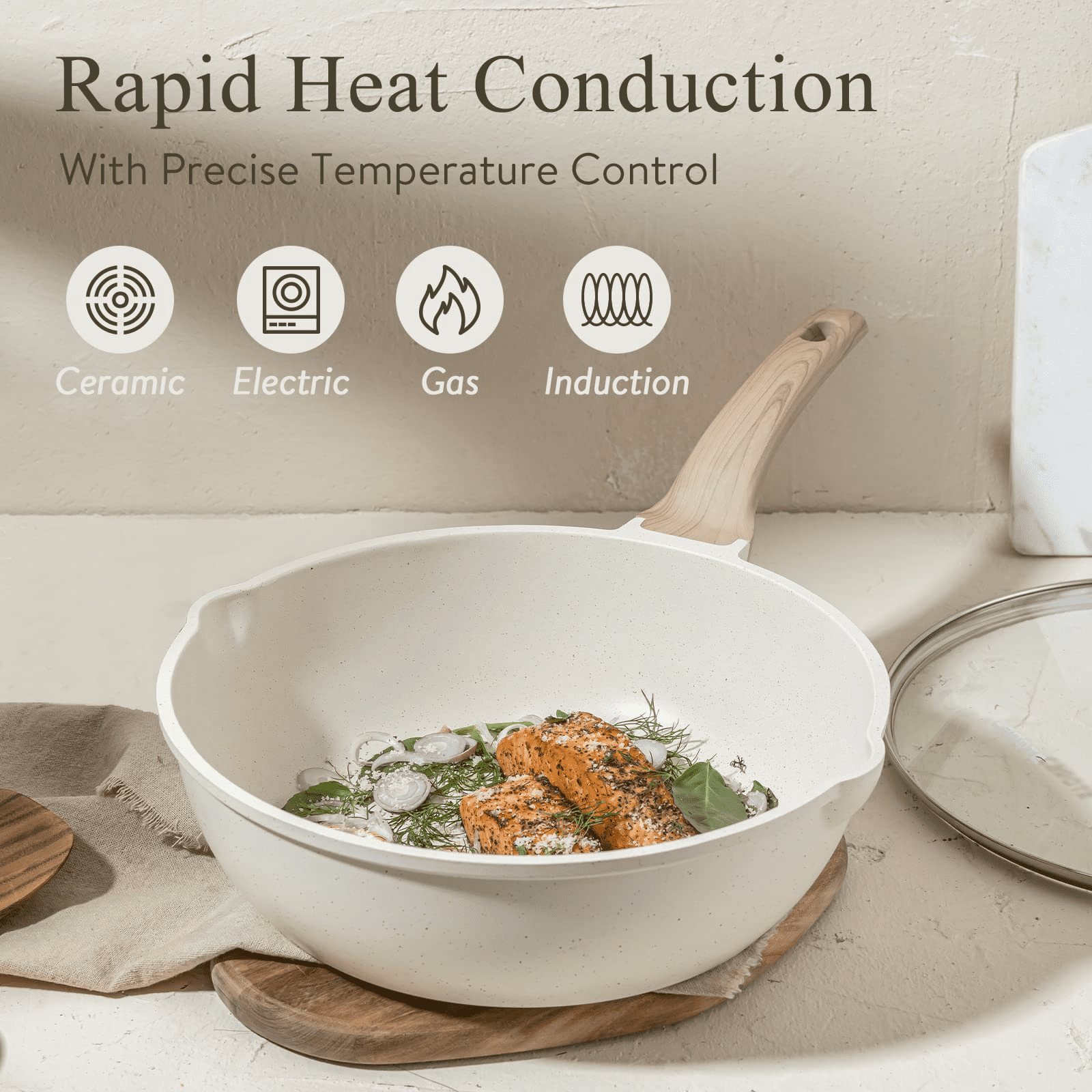 • Super Easy to Clean Rivetless interior,with all-in-one design, to prevent snags and food stick. Just gently wipe it with a paper towel or rinse it with water, which make cooking not only easier but also more convenient.