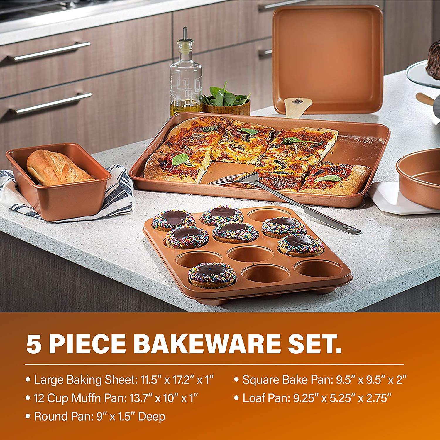 • Steel Pots and Pans Set, 20 Pc Non Stick Cookware Set, Long Lasting Nonstick Kitchen Set with Pan Set, Pot Set, Baking Set, Stay Cool Handles, Dishwasher Safe, 100% Toxin Free-Copper
