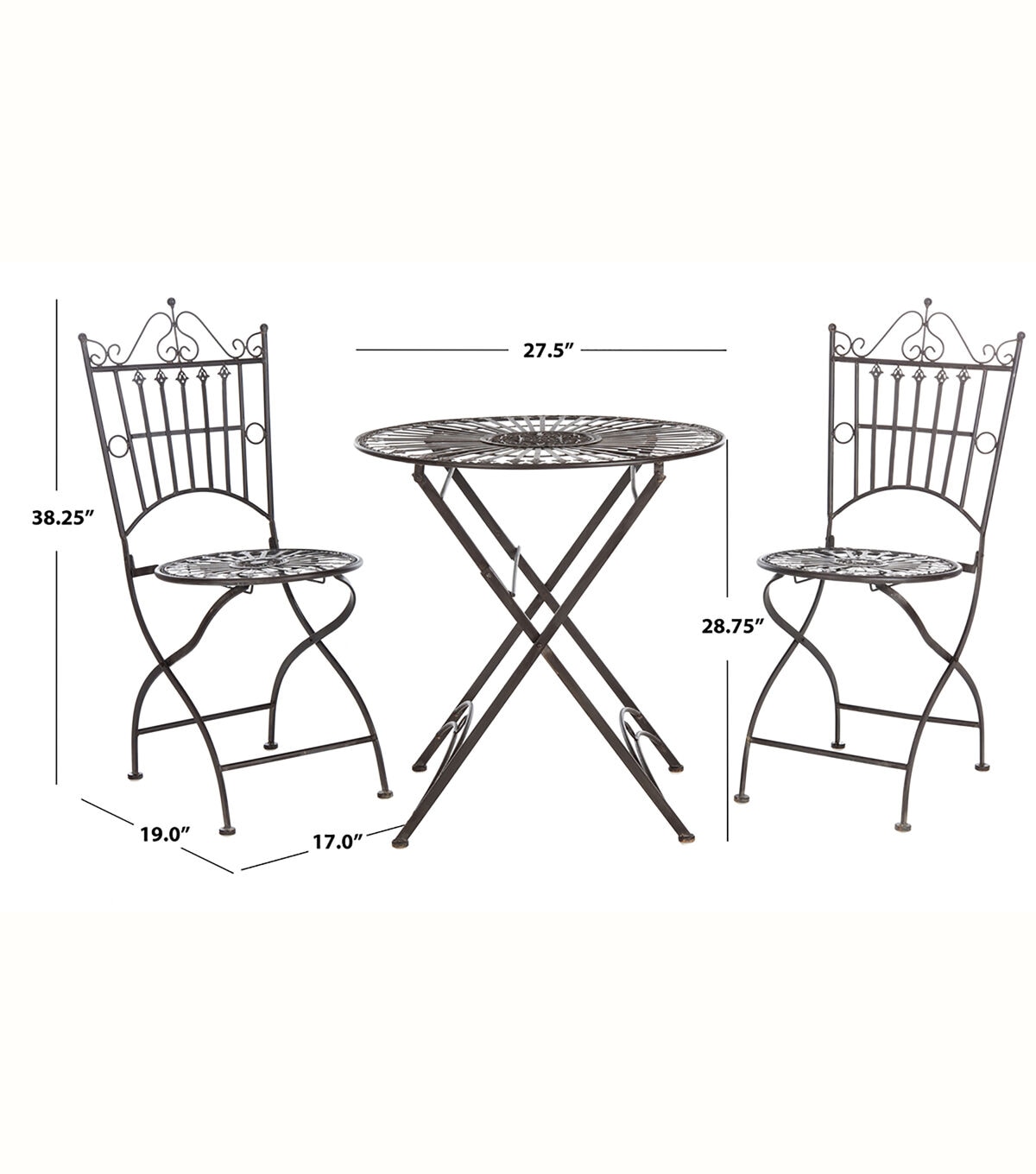 Safavieh 3pc Black Rust Belen Outdoor Table & Chair Bistro Set