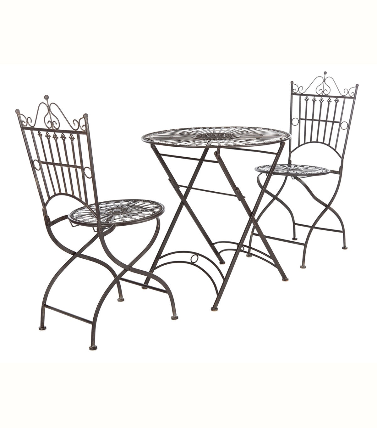 Whether it’s afternoon tea or a moonlight soiree, it’s easy to dine like royalty with this outdoor Belen Bistro Set. Inspired by master artisan ironwork, Belen's table and two matching chairs are given an elegant Victorian touch with scrolls and flourishes in a black rust finish.
