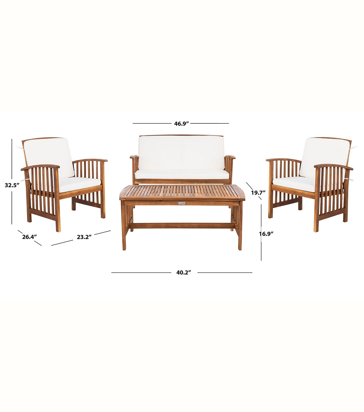 Safavieh 4pc Rocklin Naturel & Beige Outdoor Furniture Set
