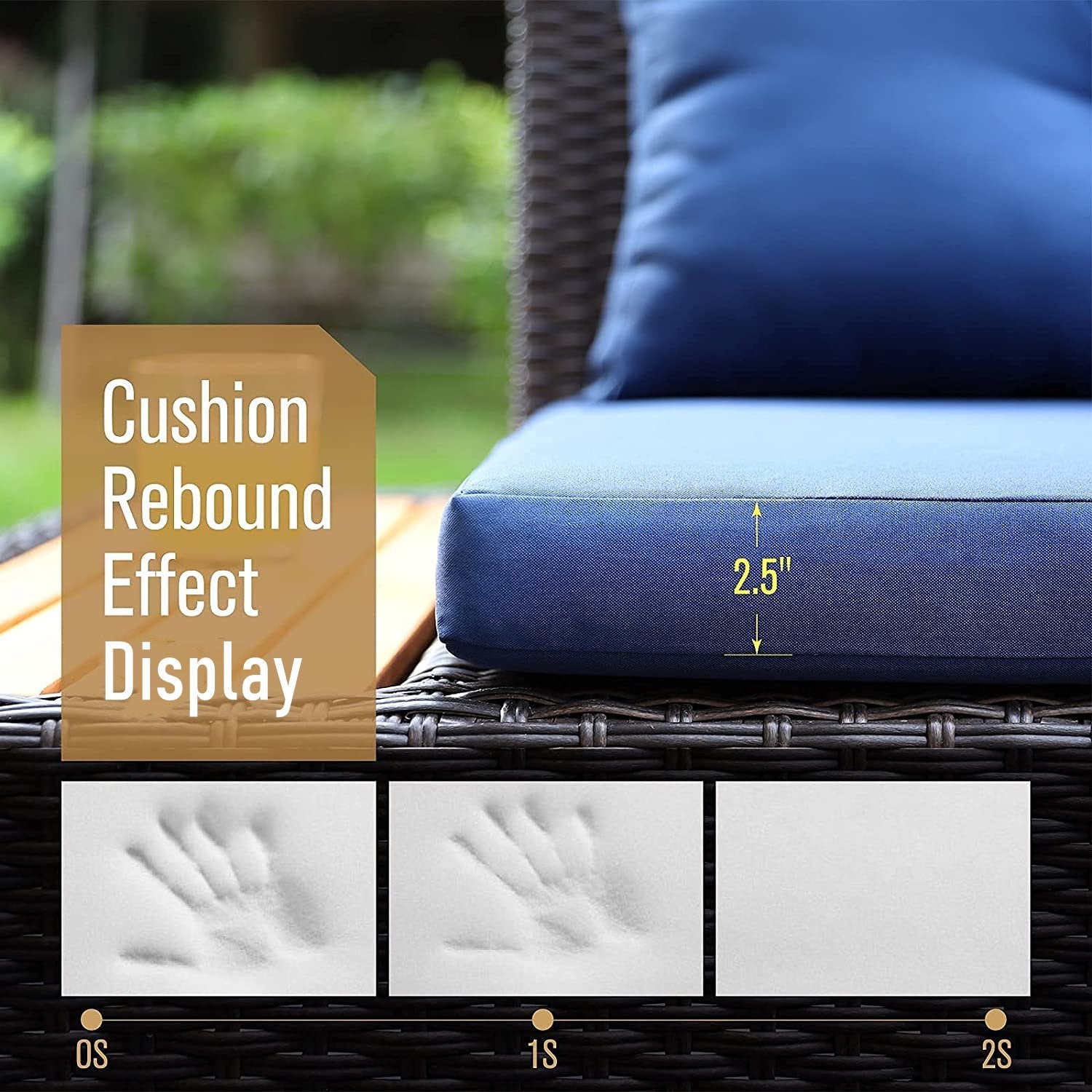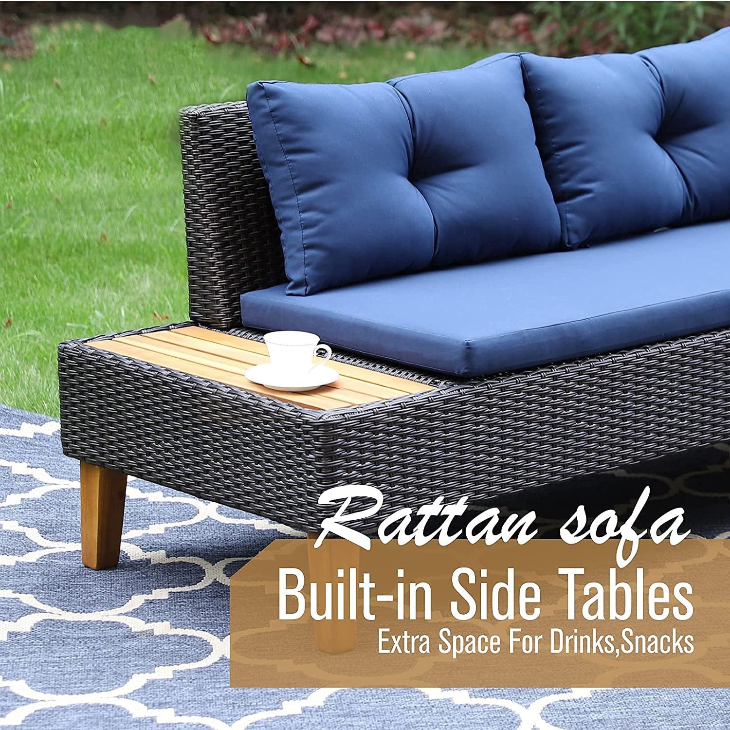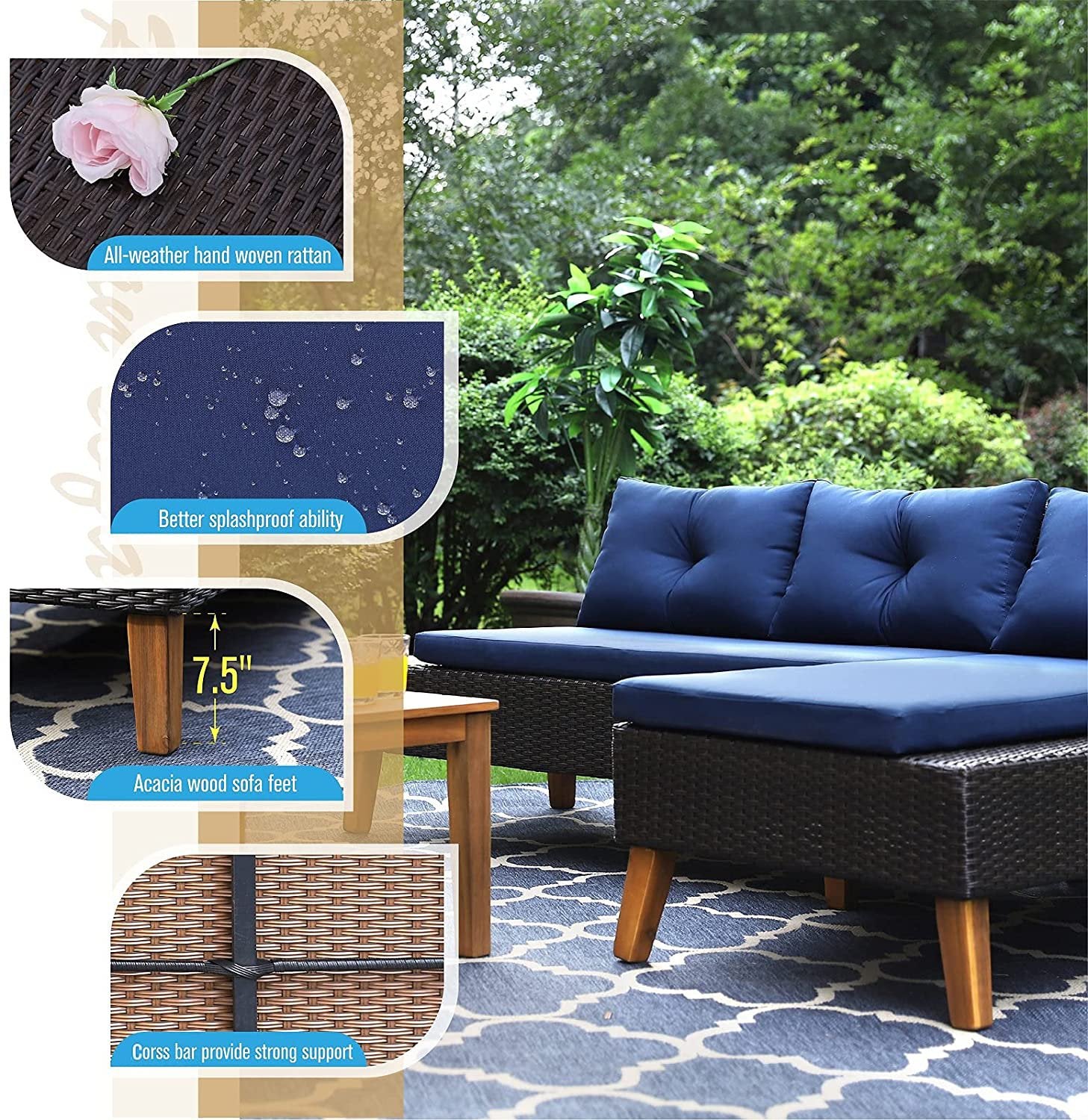 3-Piece Outdoor Rattan & Wood Sectional Sofa Conversation Set With Cushions