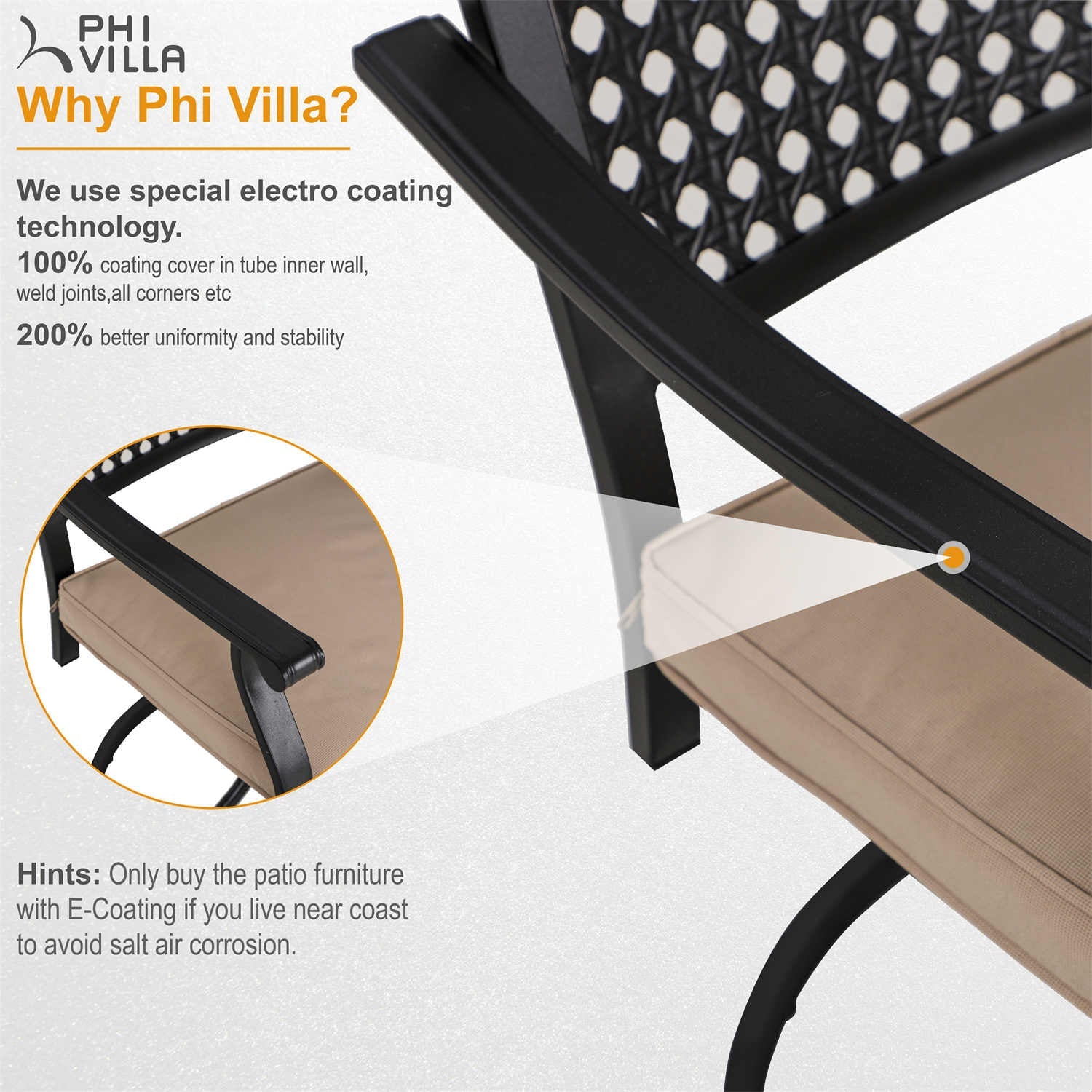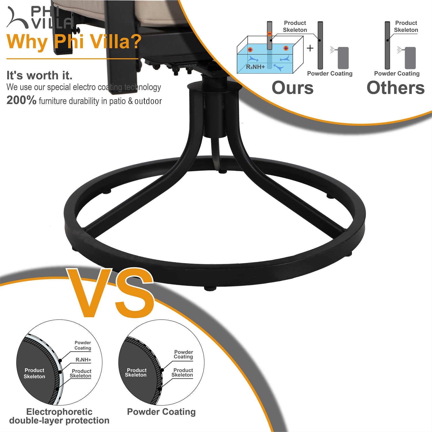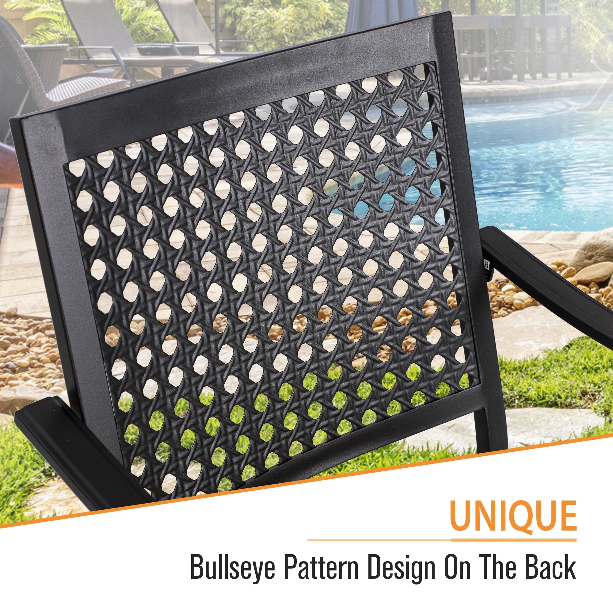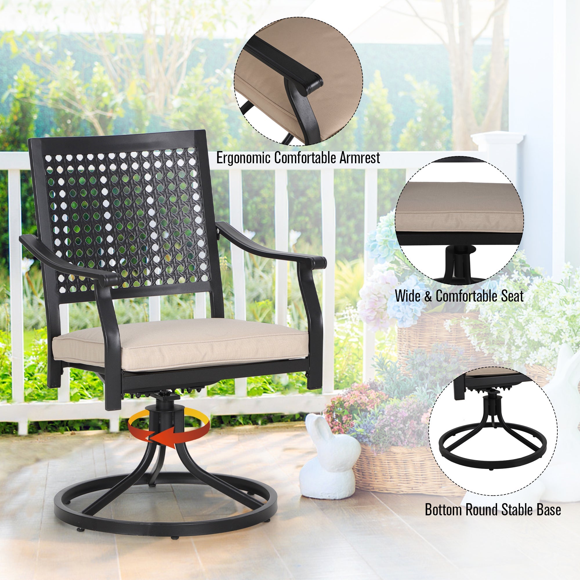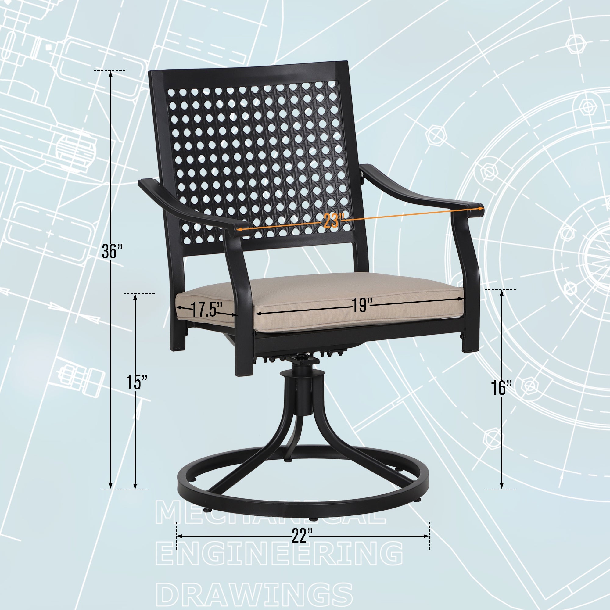 Outdoor Swivel Steel Dining Chairs with Bullseye Flower Pattern - Set of 2