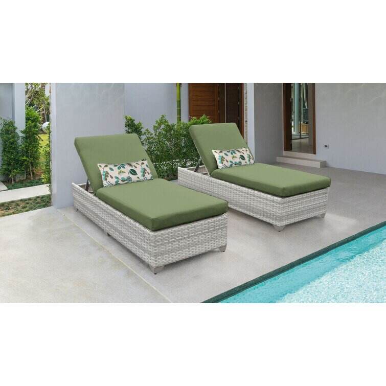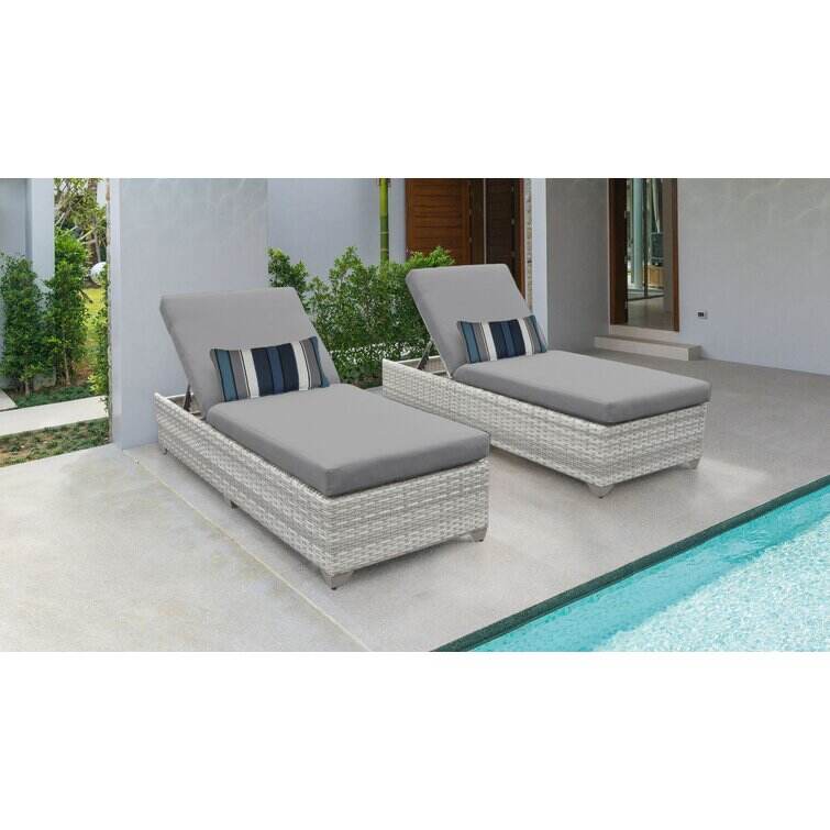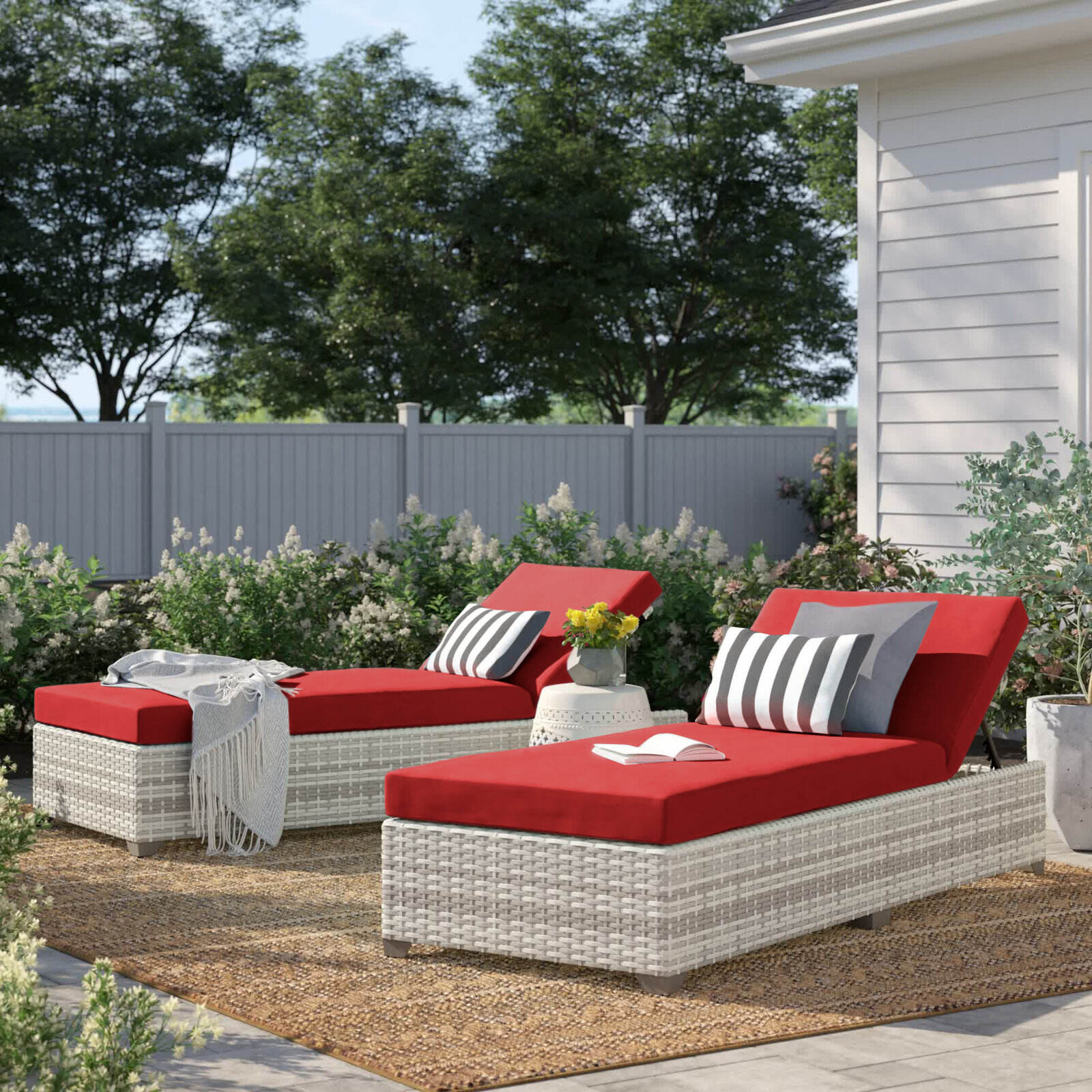 - Includes 2 outdoor chaise lounge chairs with cushions