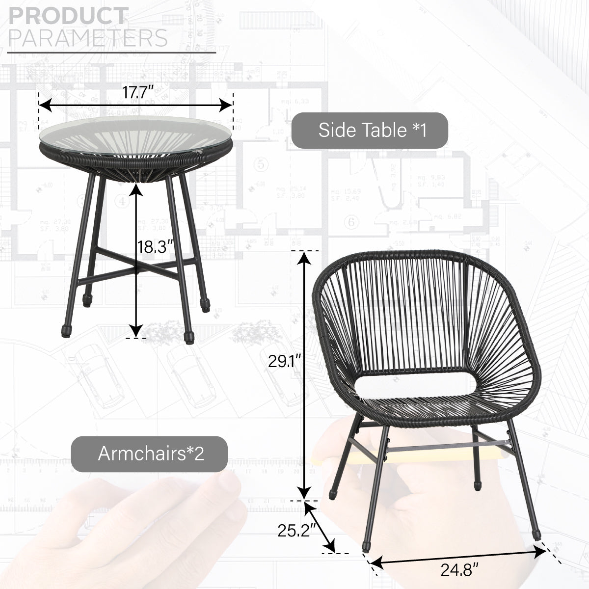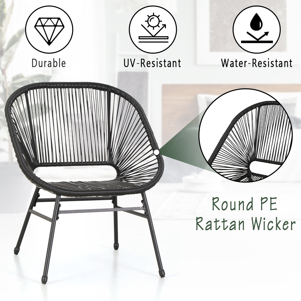 3-Piece Outdoor Wicker Conversation Set