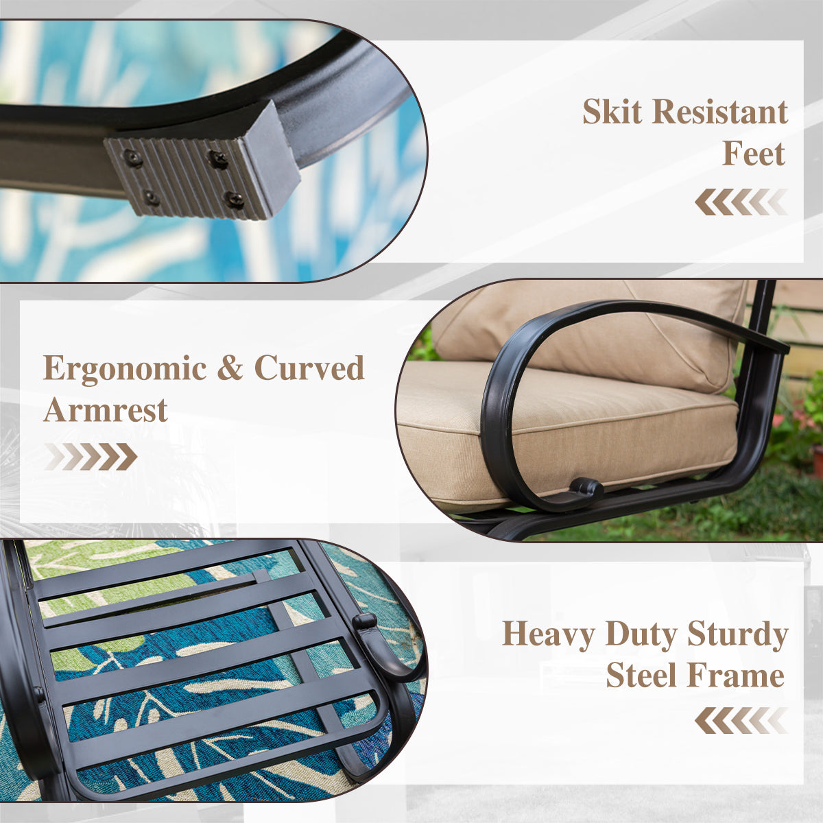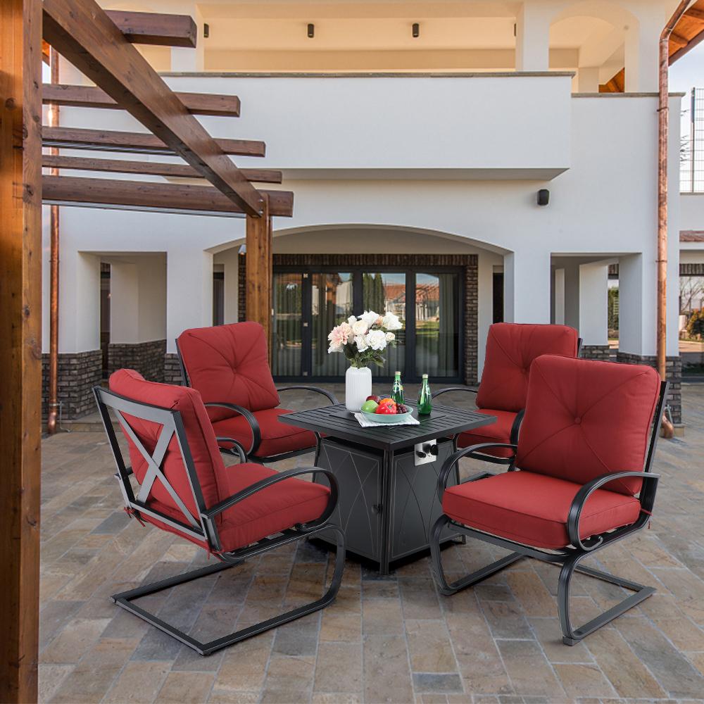5-Piece Outdoor Fire Pit Set C-spring Chairs With Cushions & 50,000BTU Square Fire Pit Table