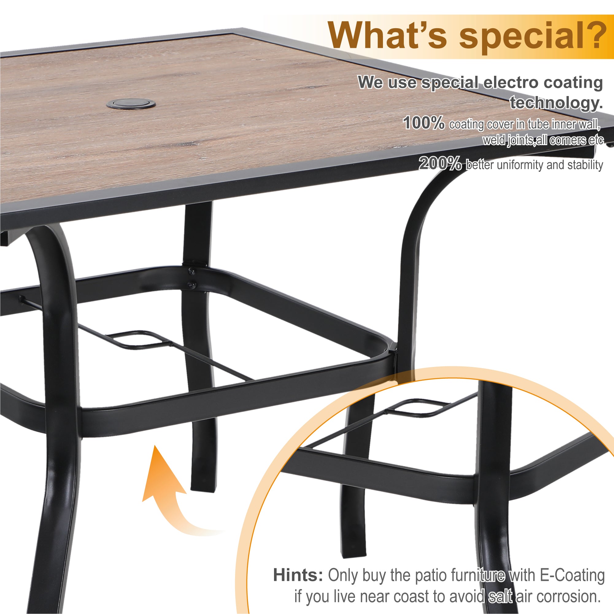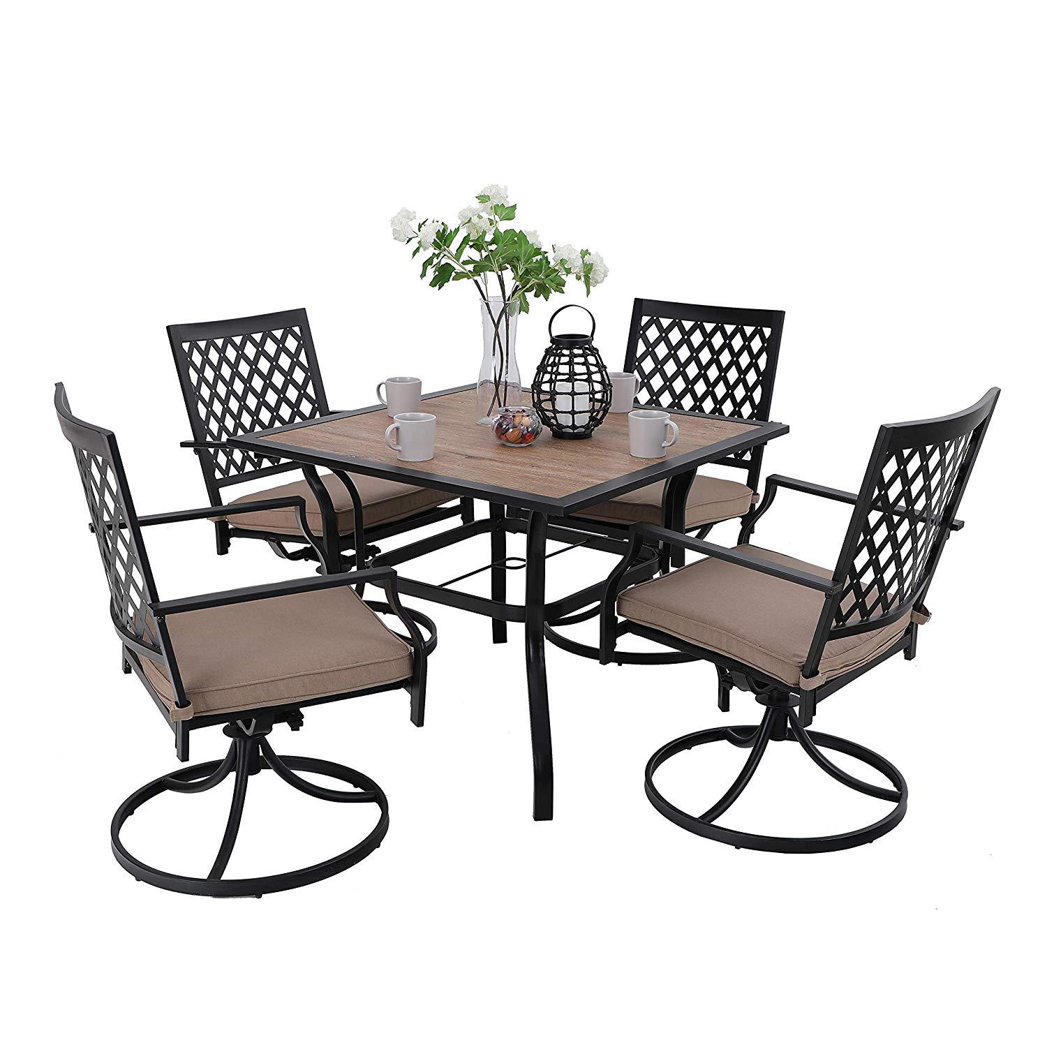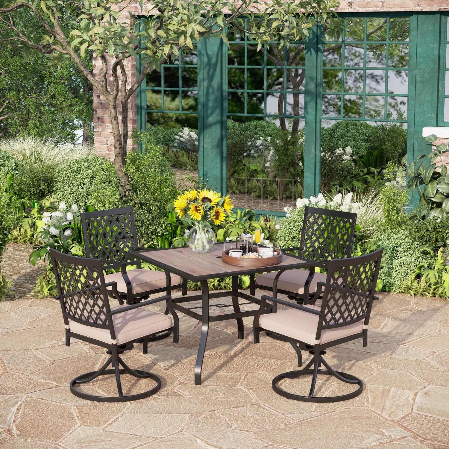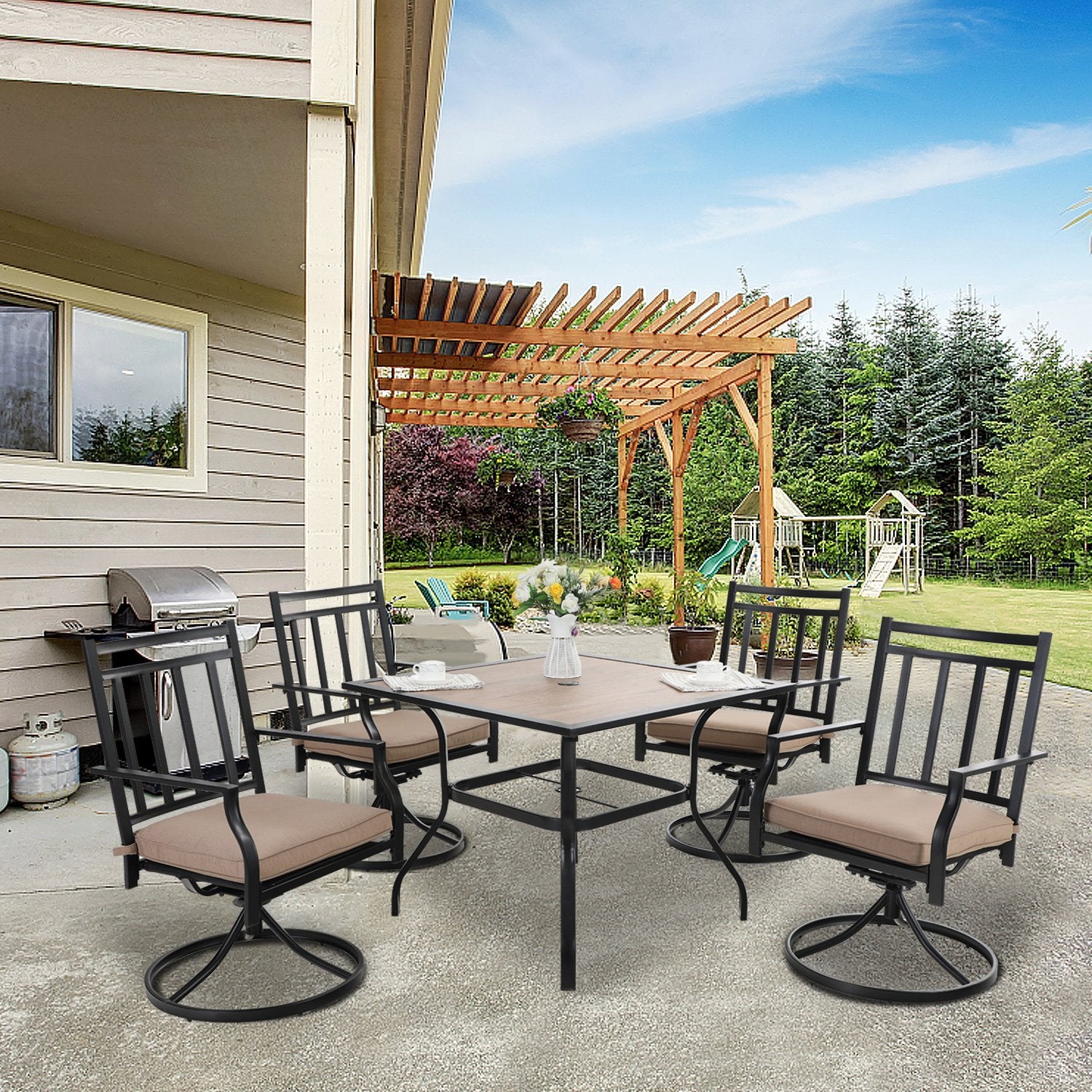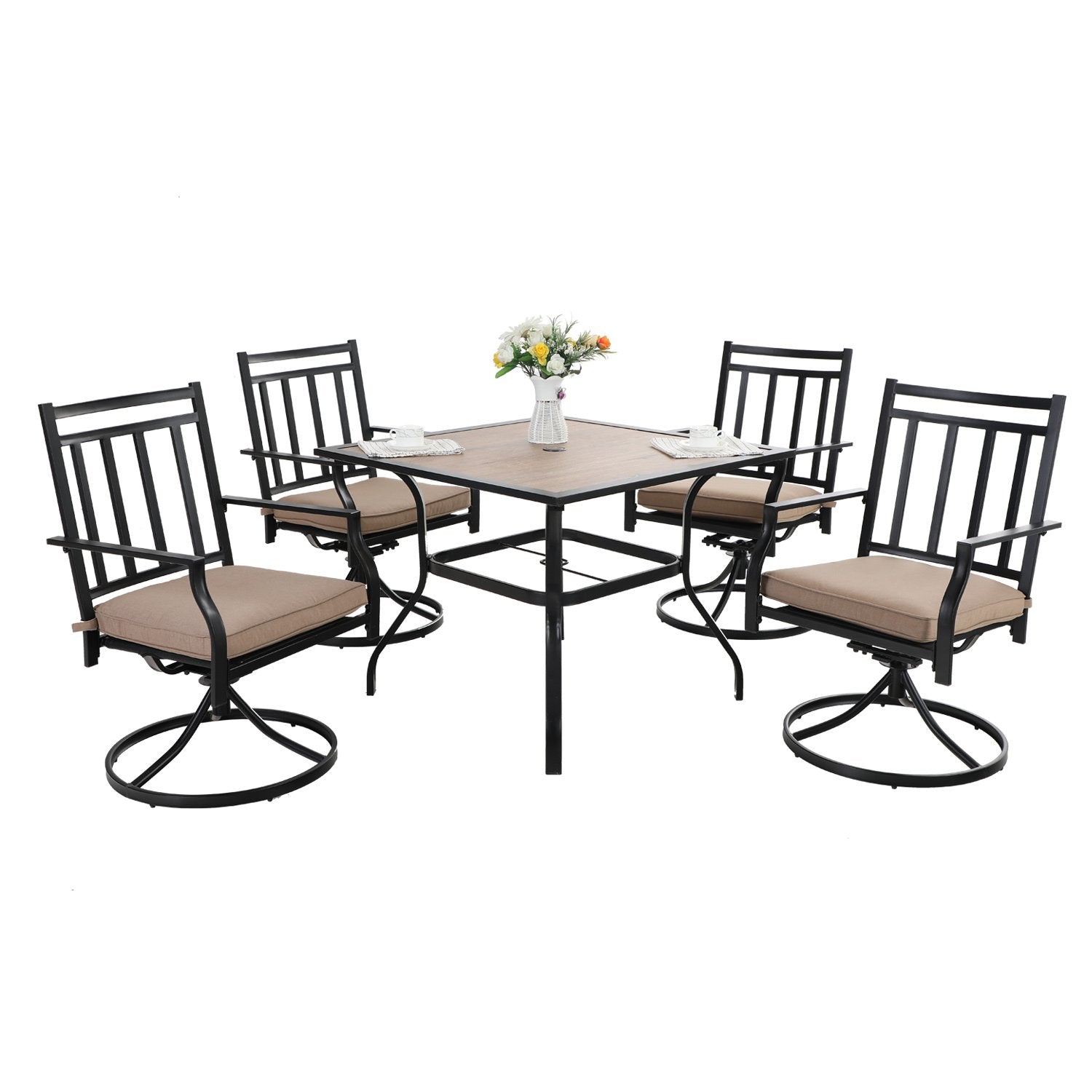 5-Piece Outdoor Patio Dining Set With Wood-look Table and 4 Pattern Swivel Chairs