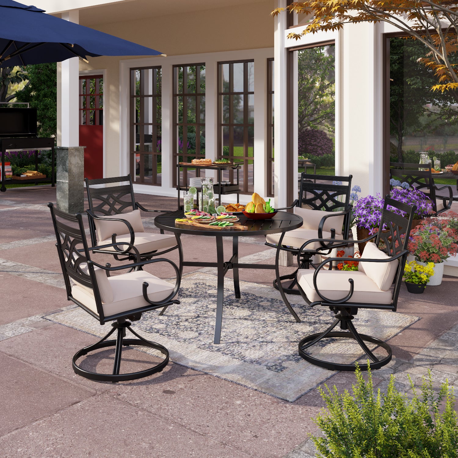5-Piece Outdoor Dining Set 4 Swivel Steel Chairs and Square Table