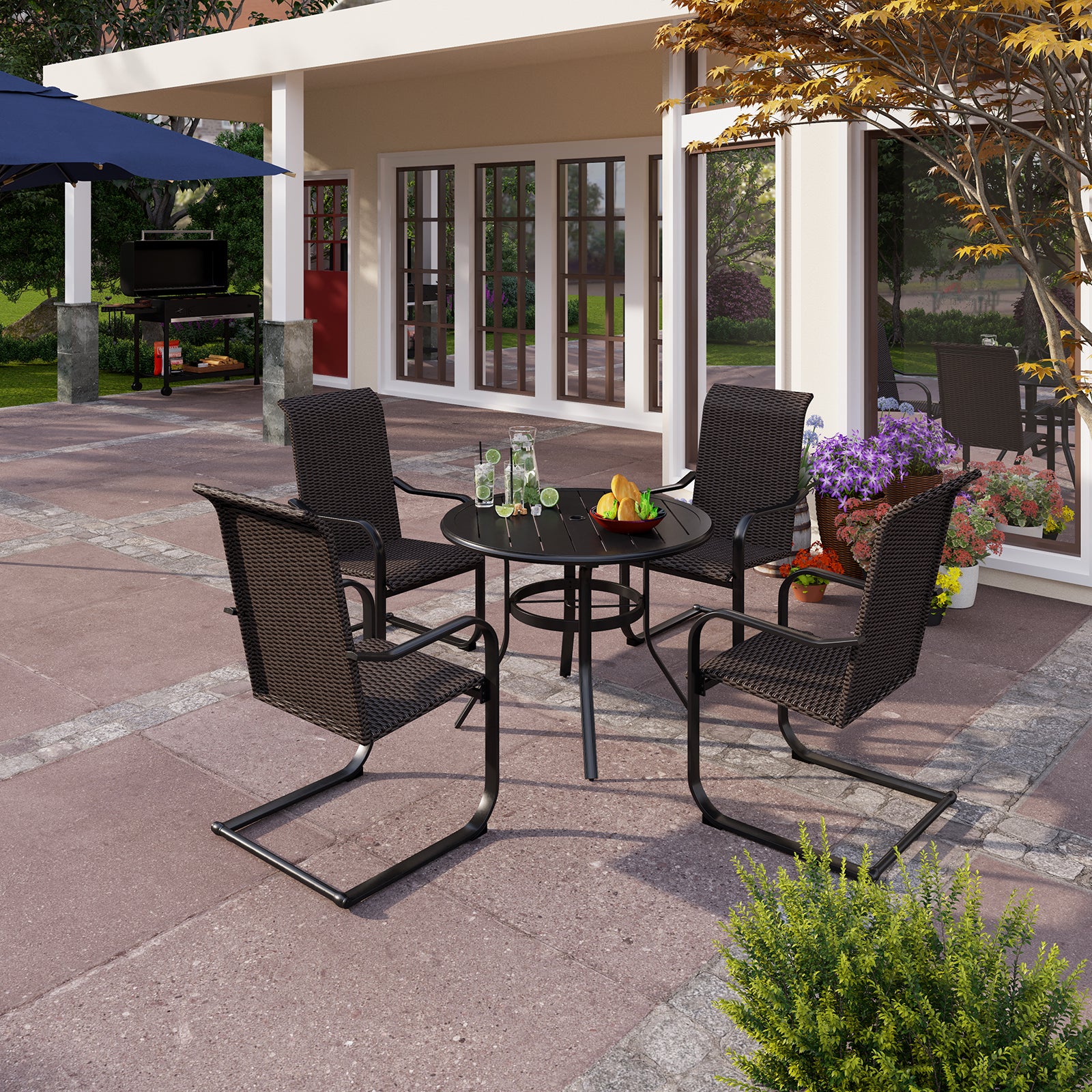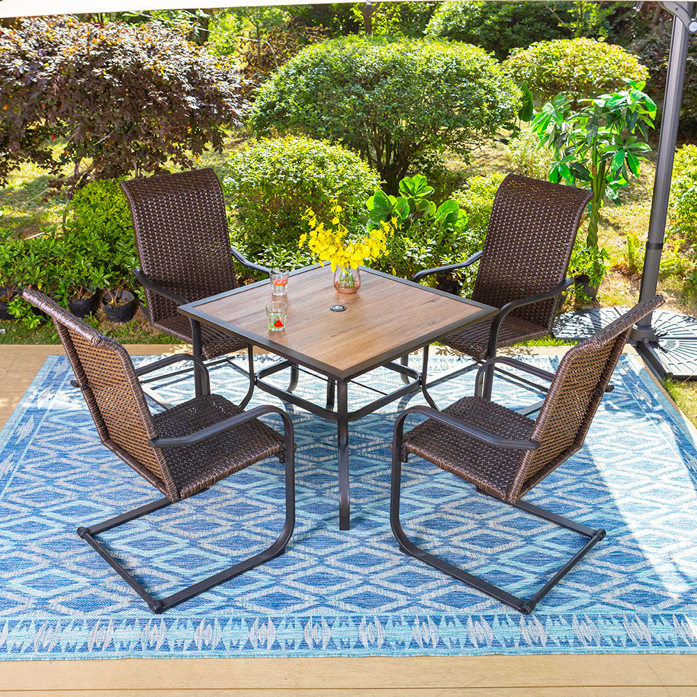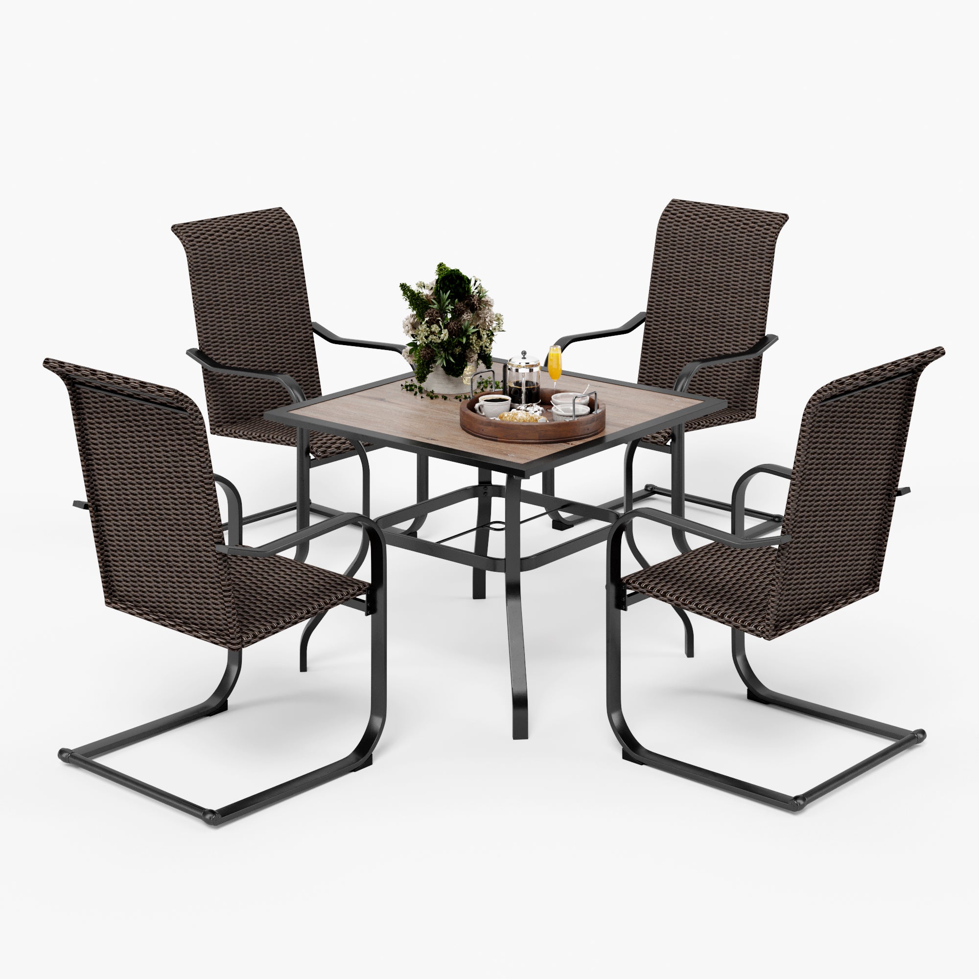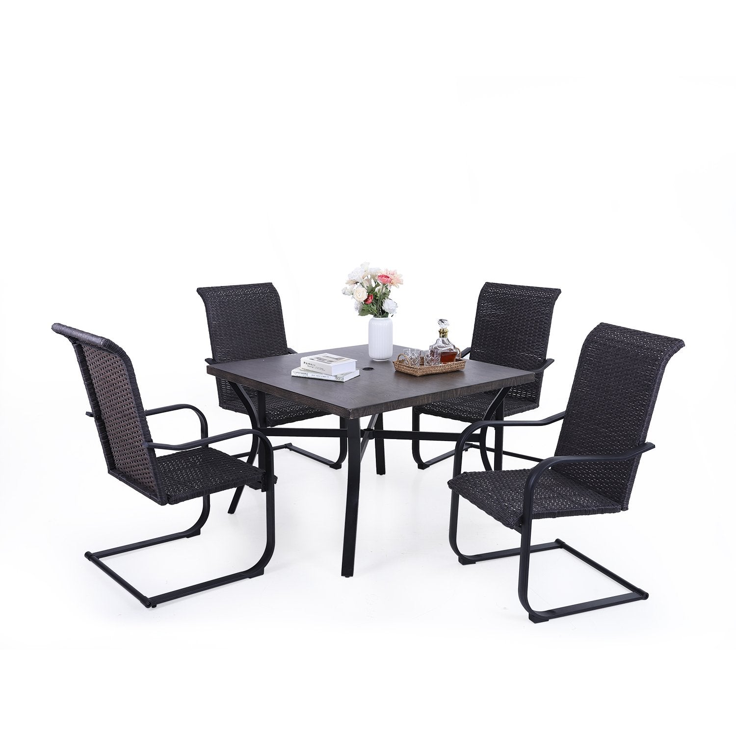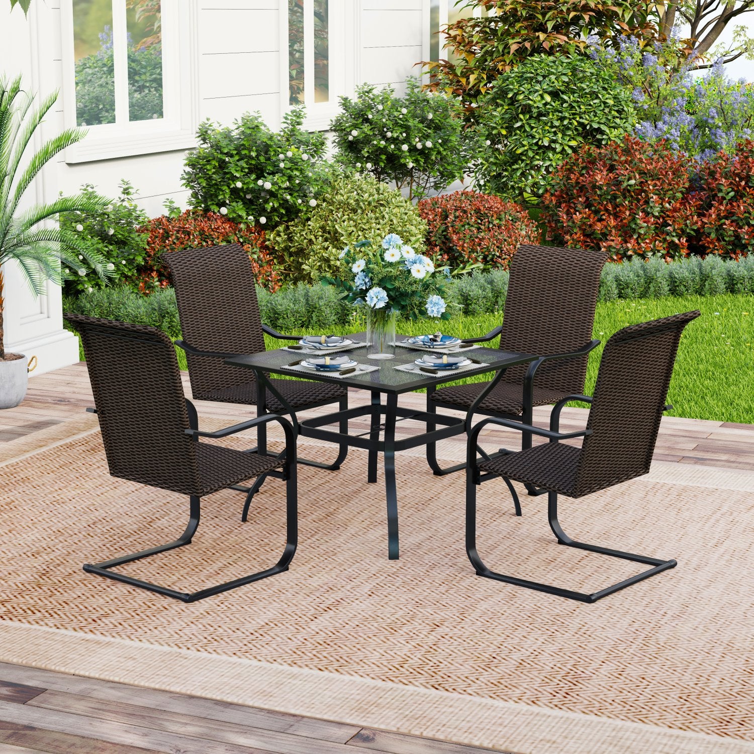 5-Piece Outdoor Dining Set with Steel Square Table & 4 Rattan C-spring Chairs