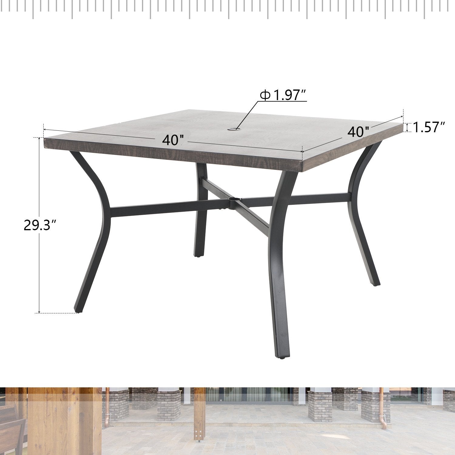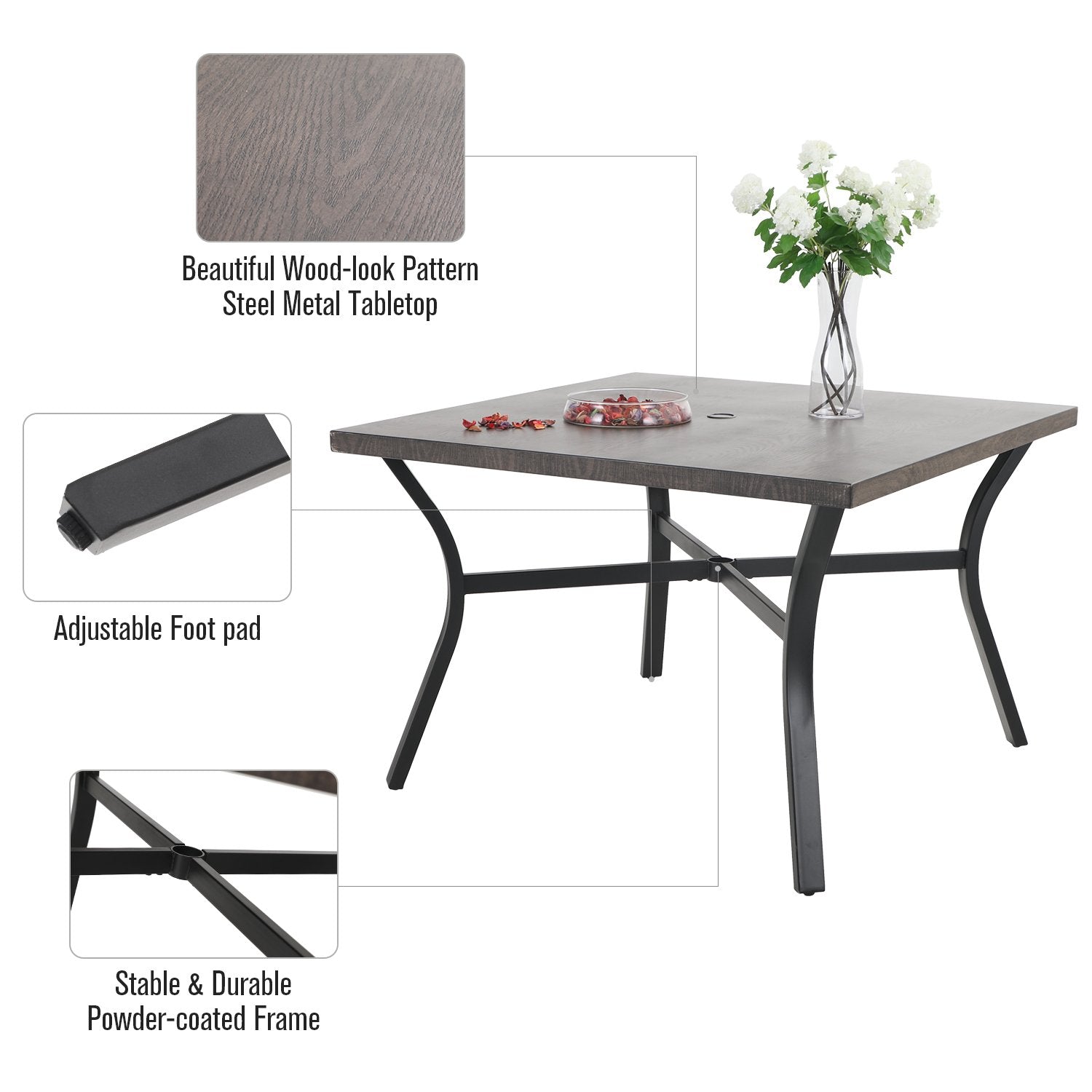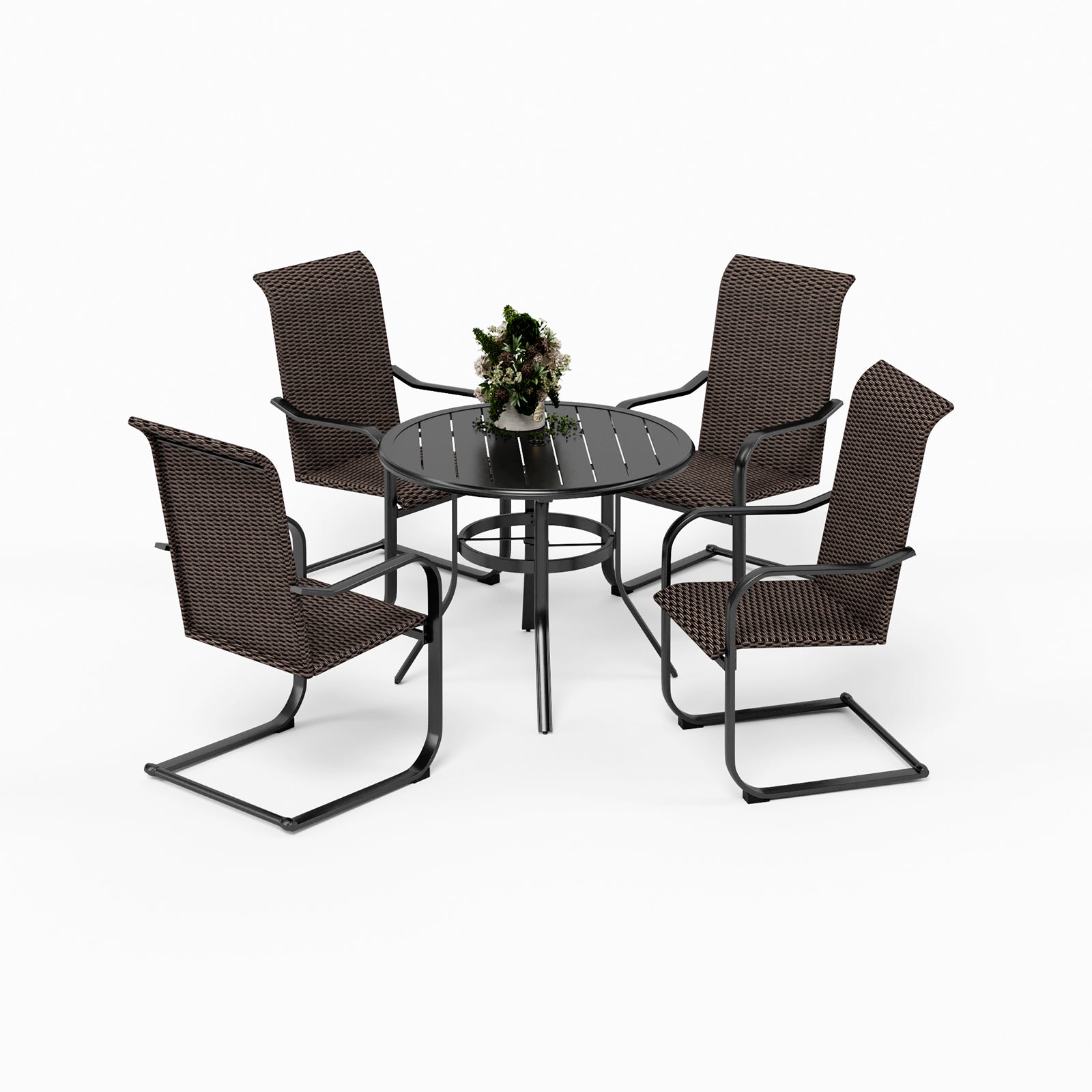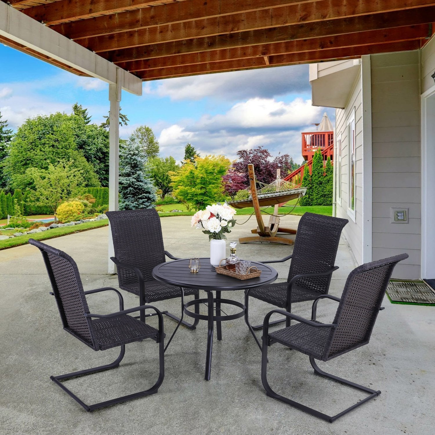 5-Piece Outdoor Dining Set with Steel Square Table & 4 Rattan C-spring Chairs