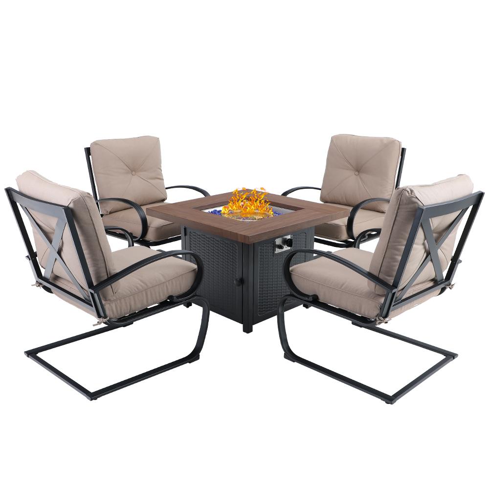 • 5-Piece Outdoor Fire Pit Set C-spring Chairs With Cushions & 50,000BTU Wood-look Fire Pit Table