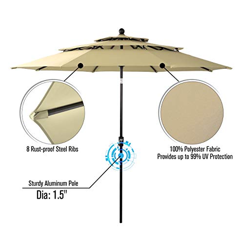 6-Piece Outdoor Dining Set with 10ft Umbrella & Square Table & Swivel Metal Steel Chairs