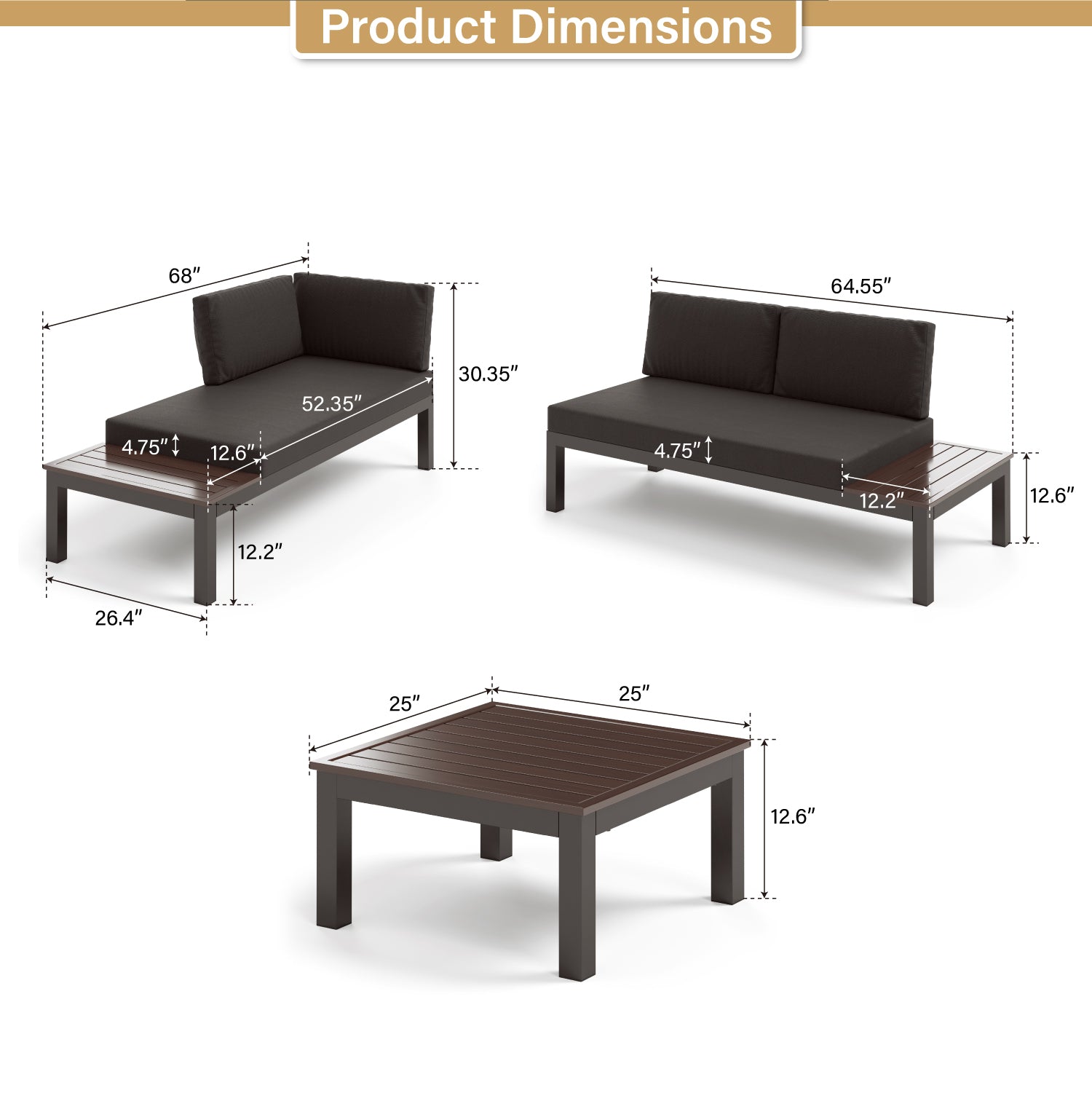 Outdoor Aluminum Sectional Sofa Set with Coffee Table