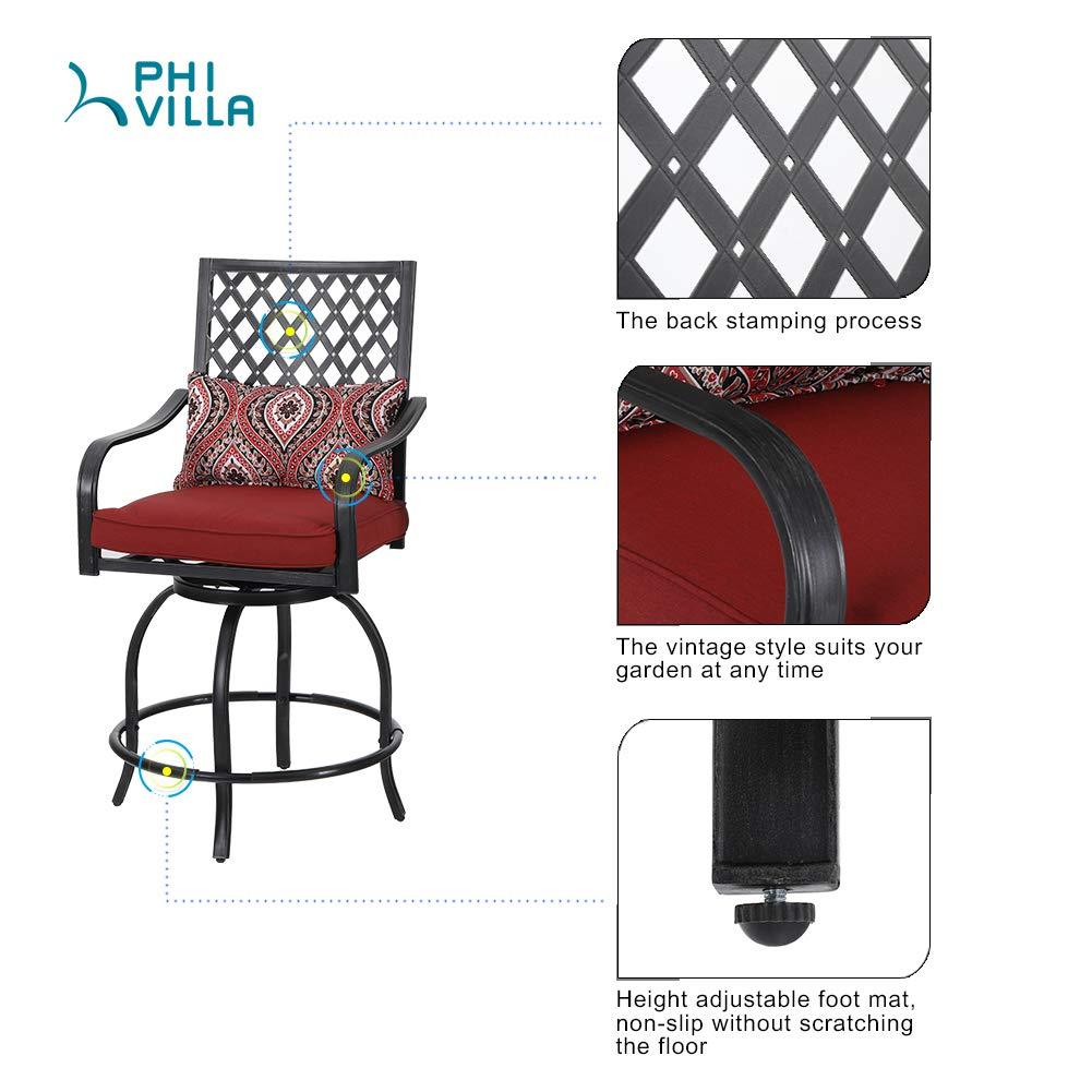 Outdoor Extra Wide Height Swivel Bar Stools Set