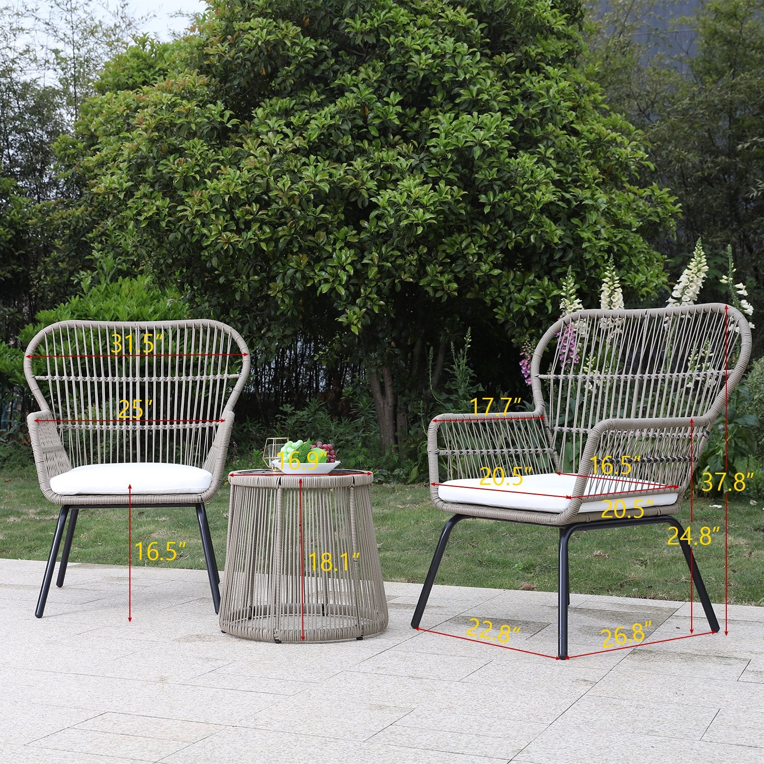 3-Piece Outdoor Rattan Conversation Set With Cushions