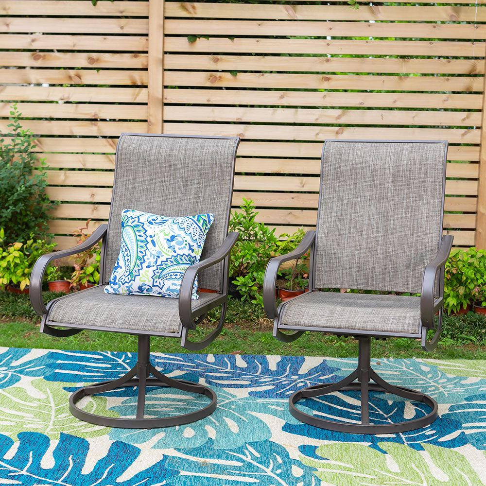 Textilene Swivel Patio Outdoor Dining Chair with Brown Frame, Set of 2