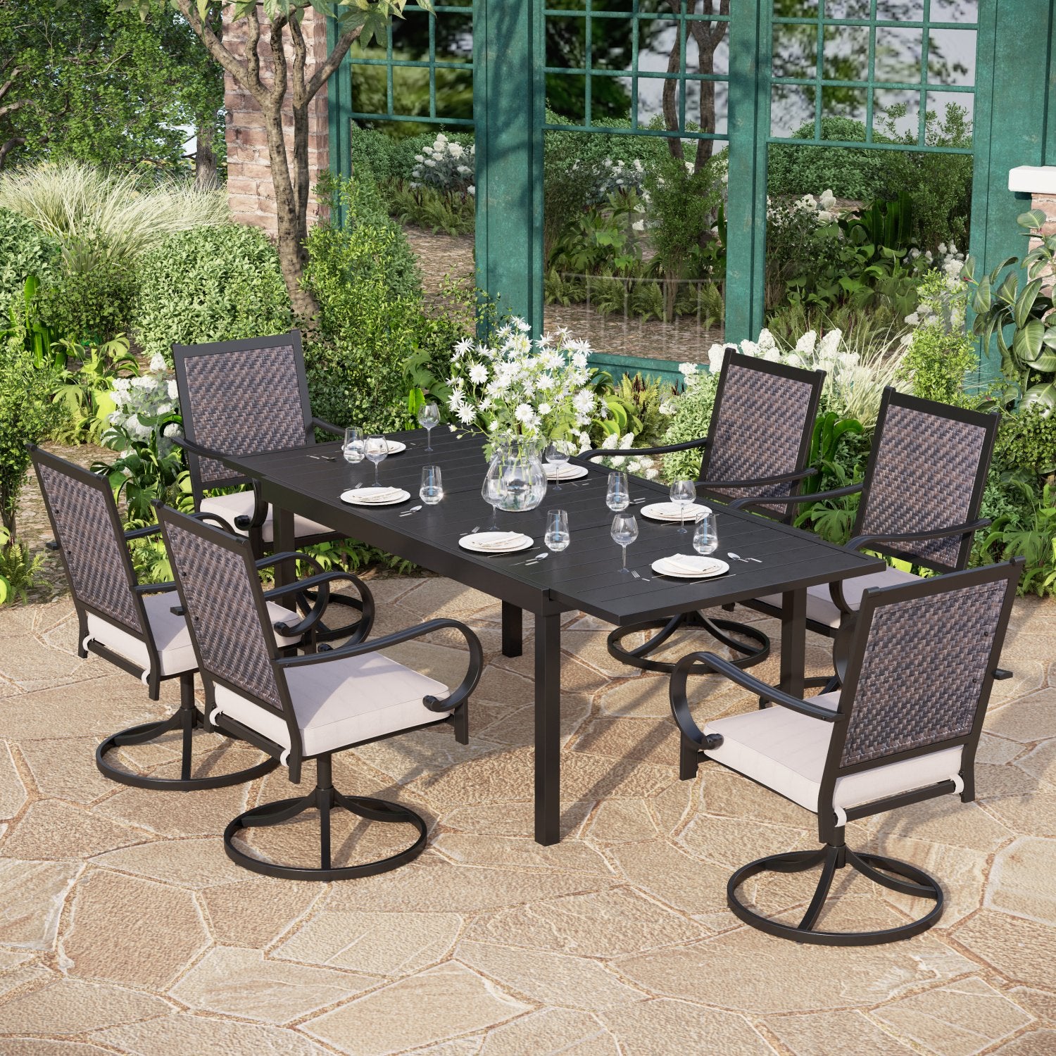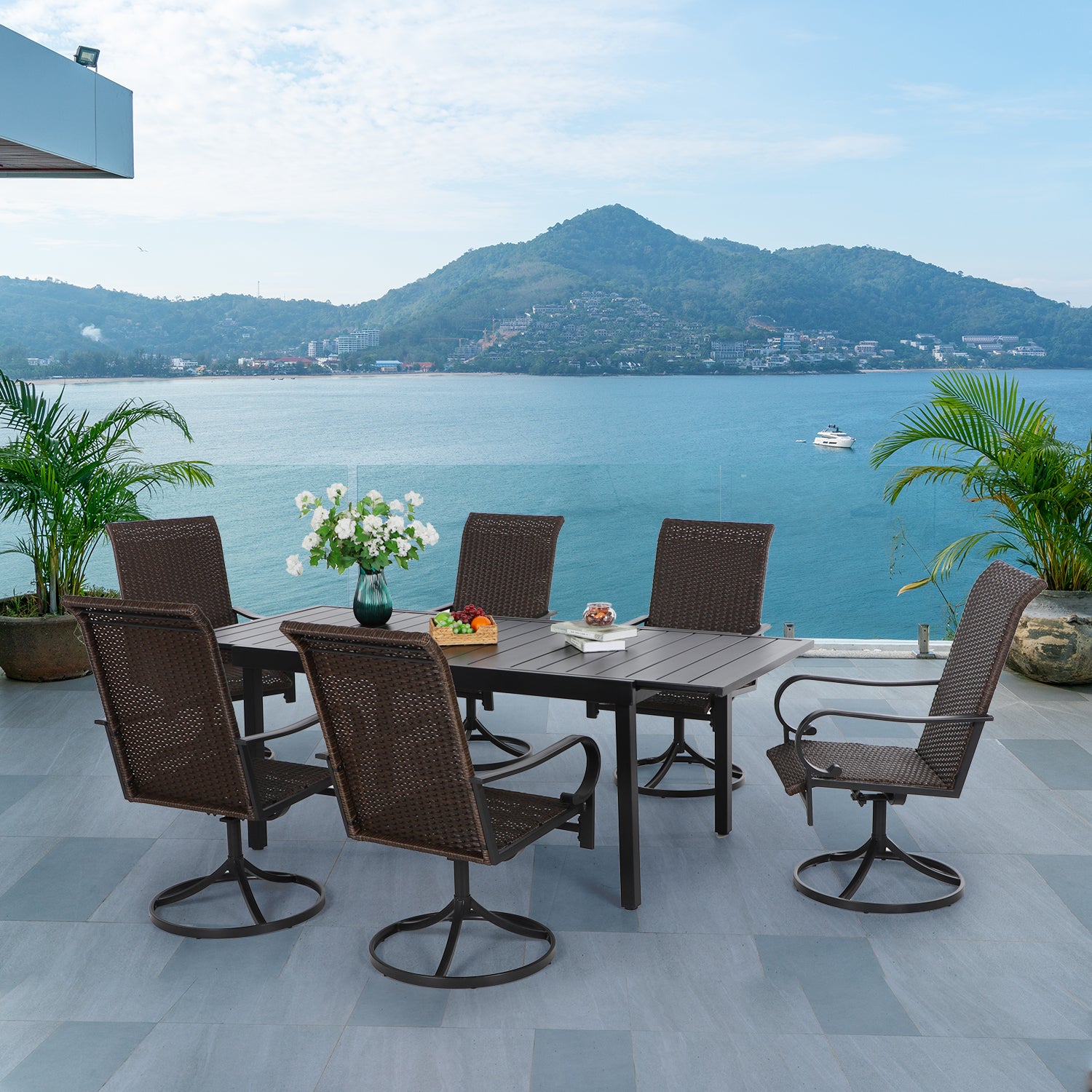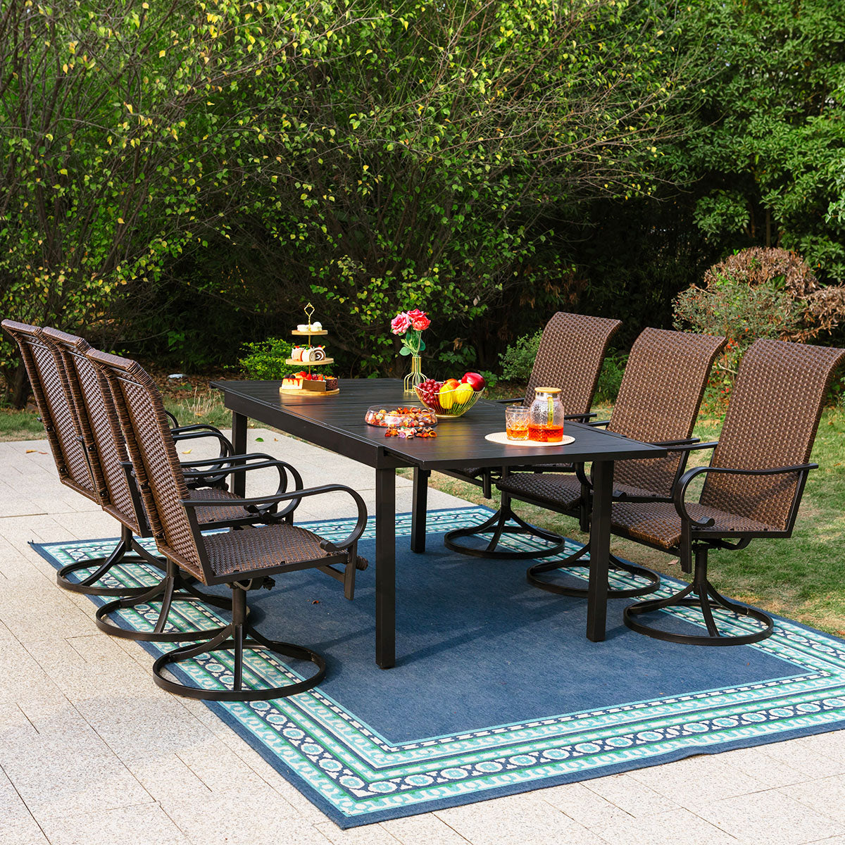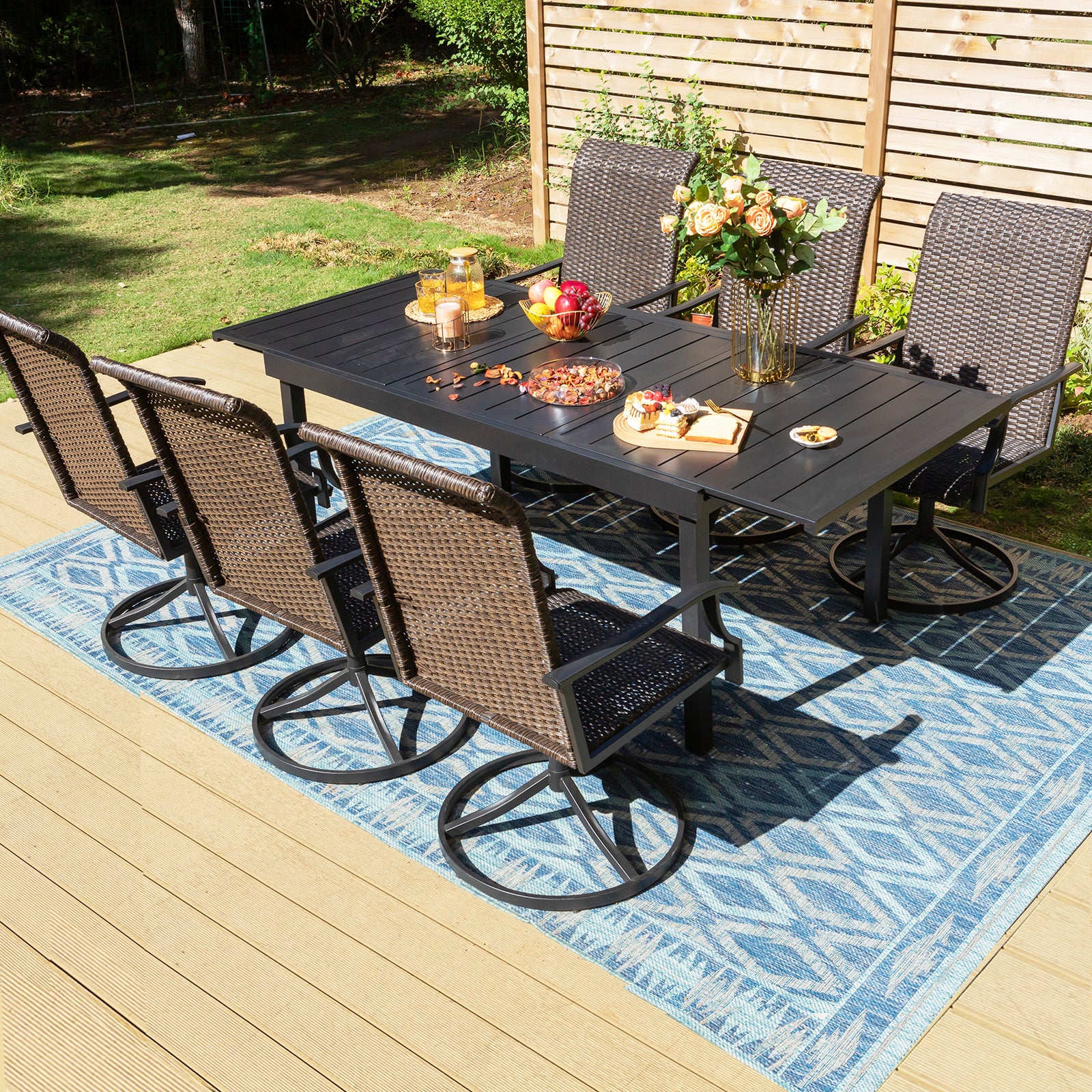 7-Piece/9-Piece Patio Outdoor Dining Set With Steel Extendable Table & Rattan Swivel Chairs