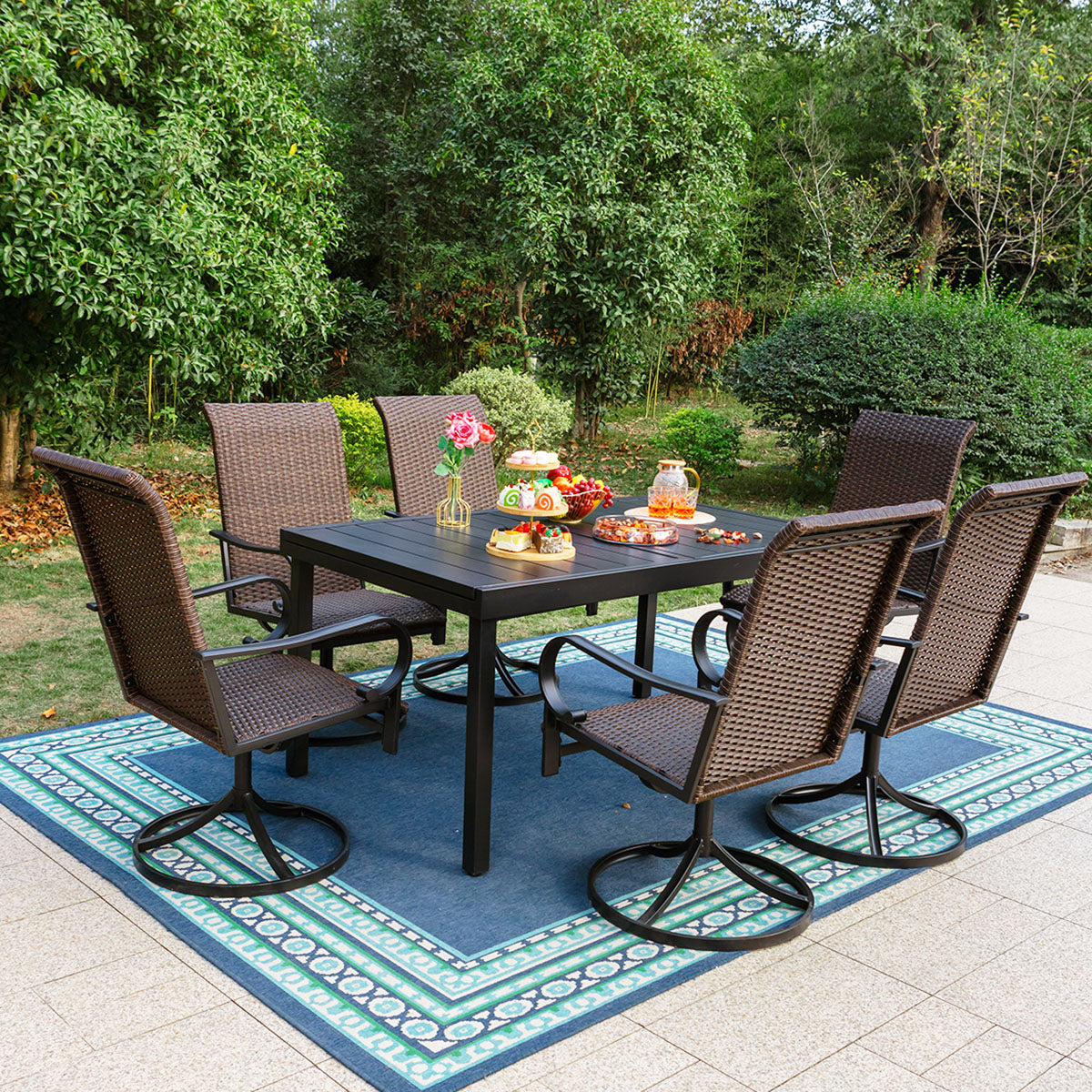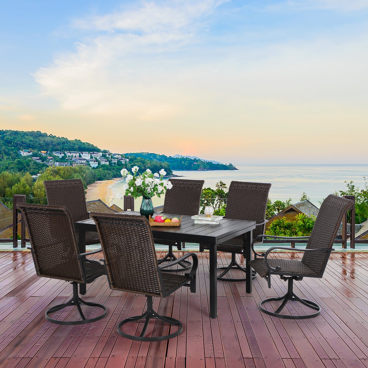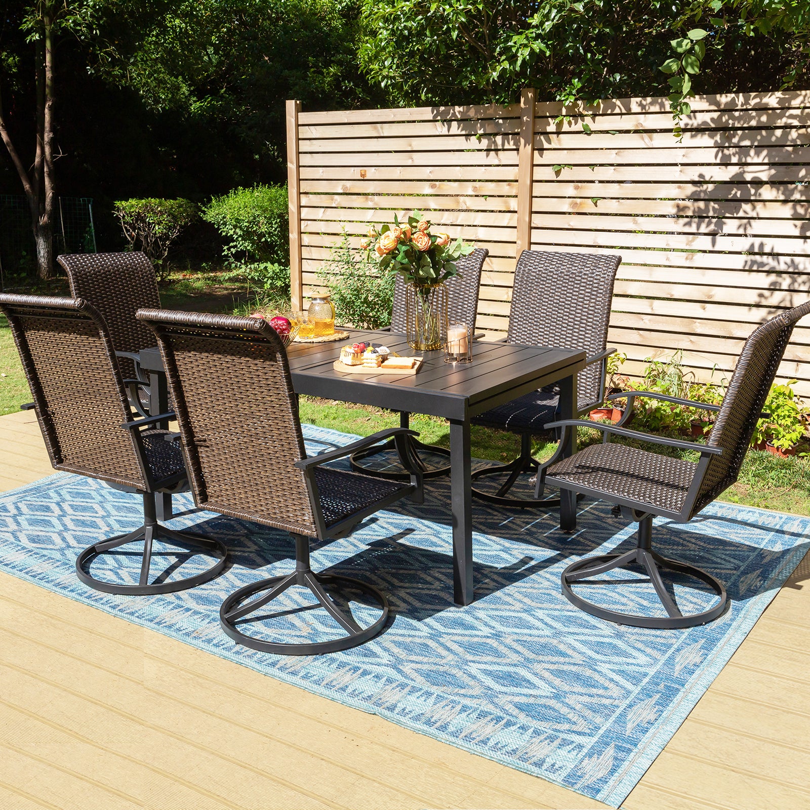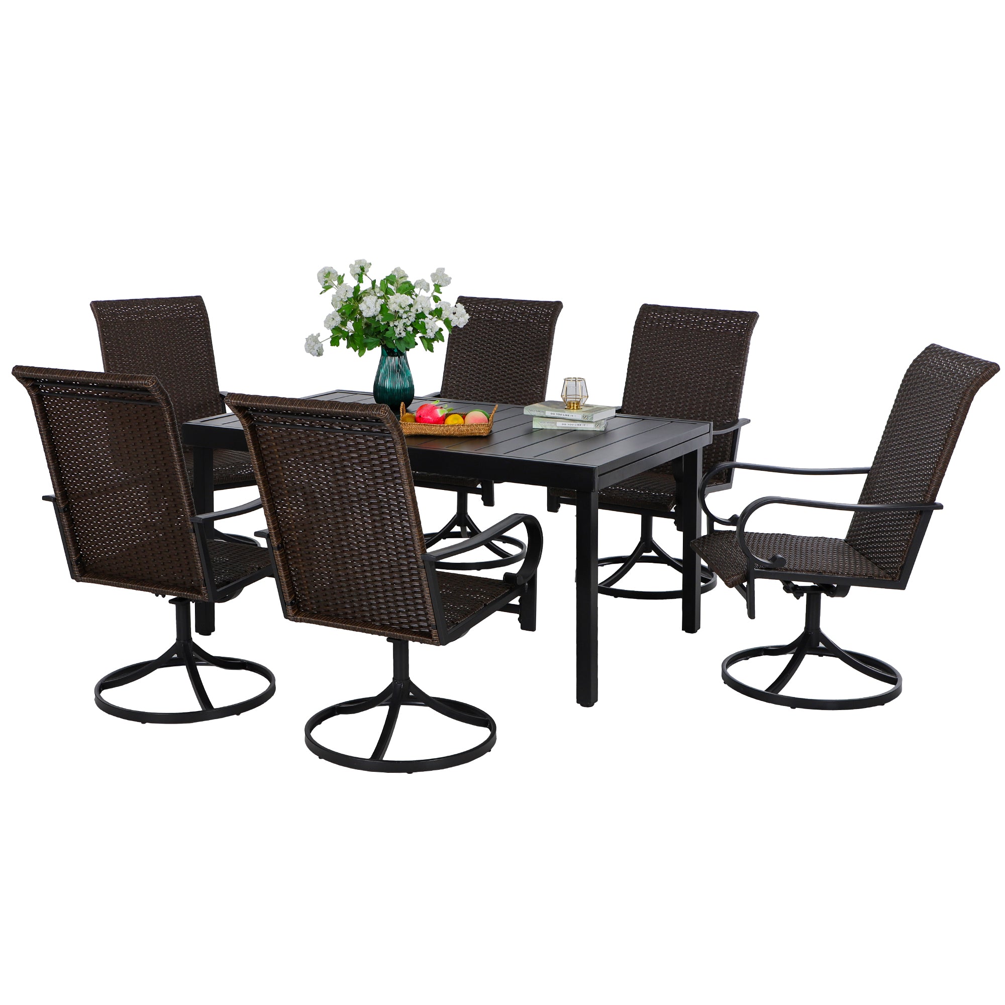 7-Piece/9-Piece Patio Outdoor Dining Set With Steel Extendable Table & Rattan Swivel Chairs