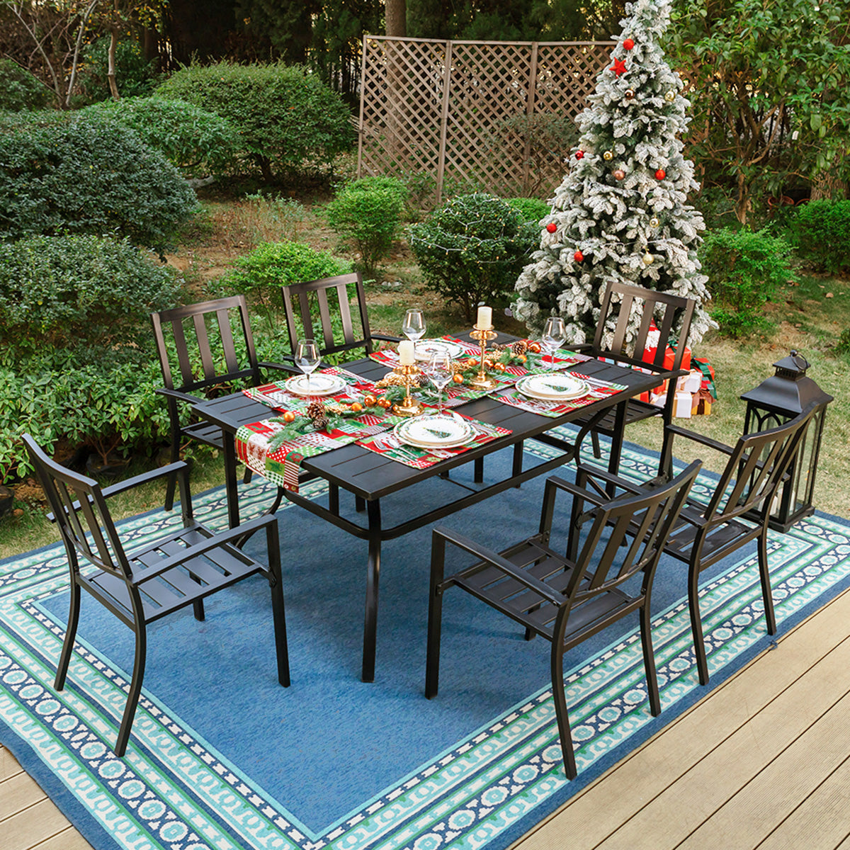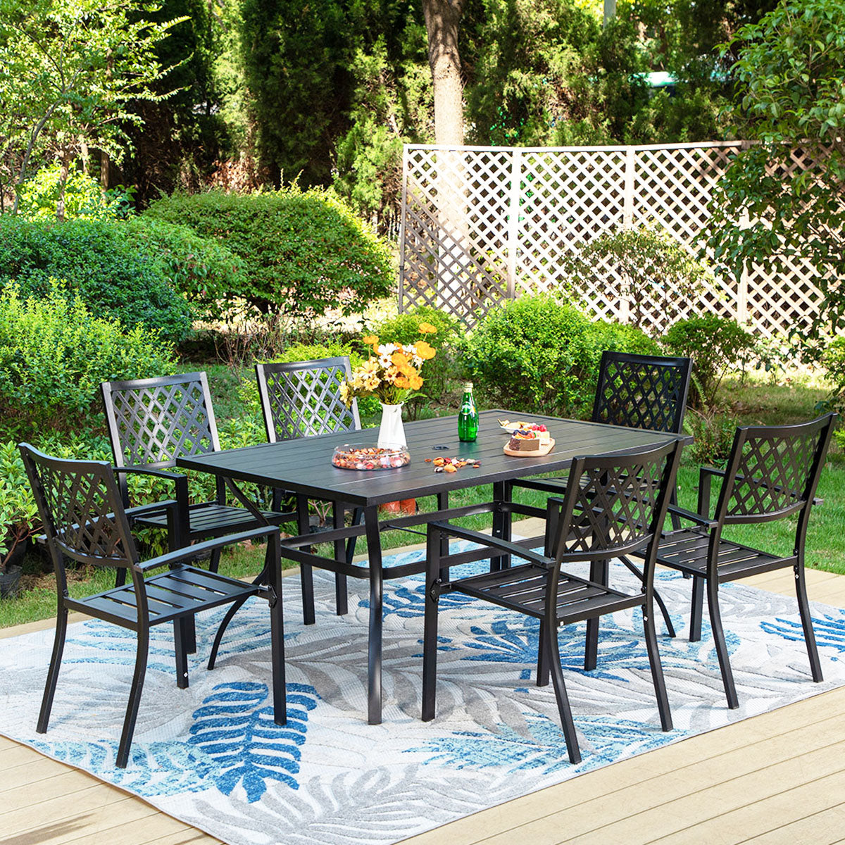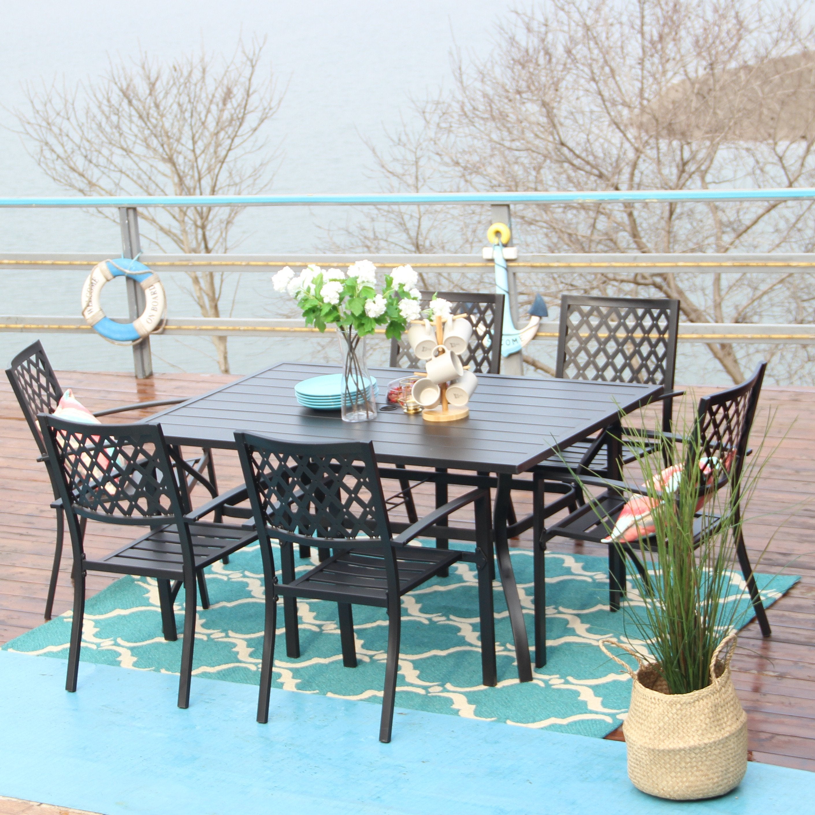 7-Piece Metal Outdoor Patio Dining Set 6 Stackable Chairs and Rectangle Patio Table