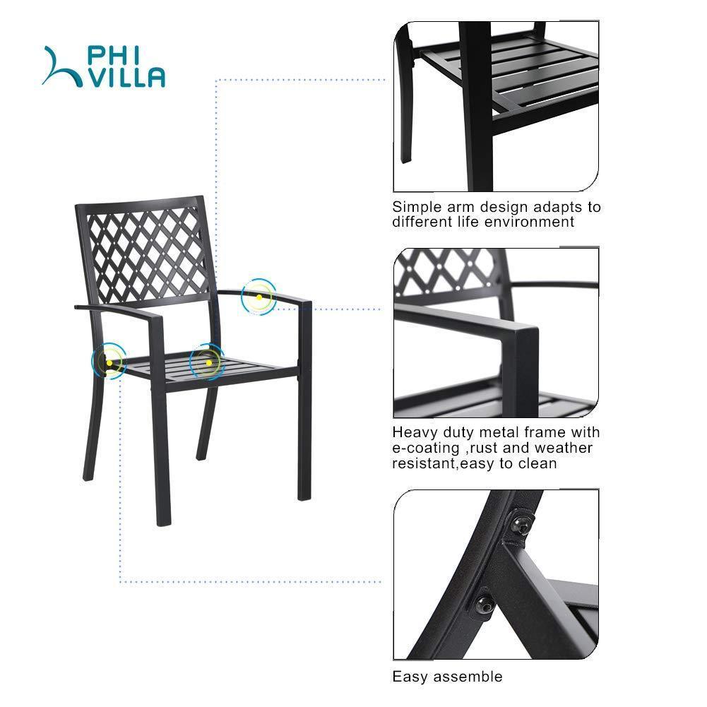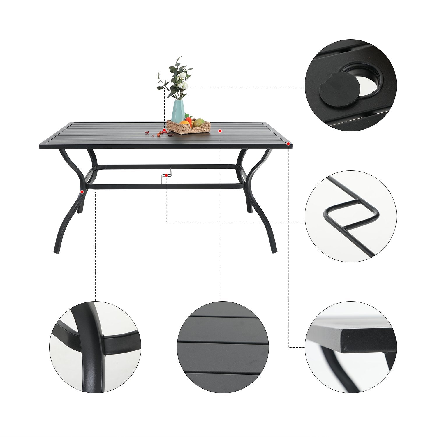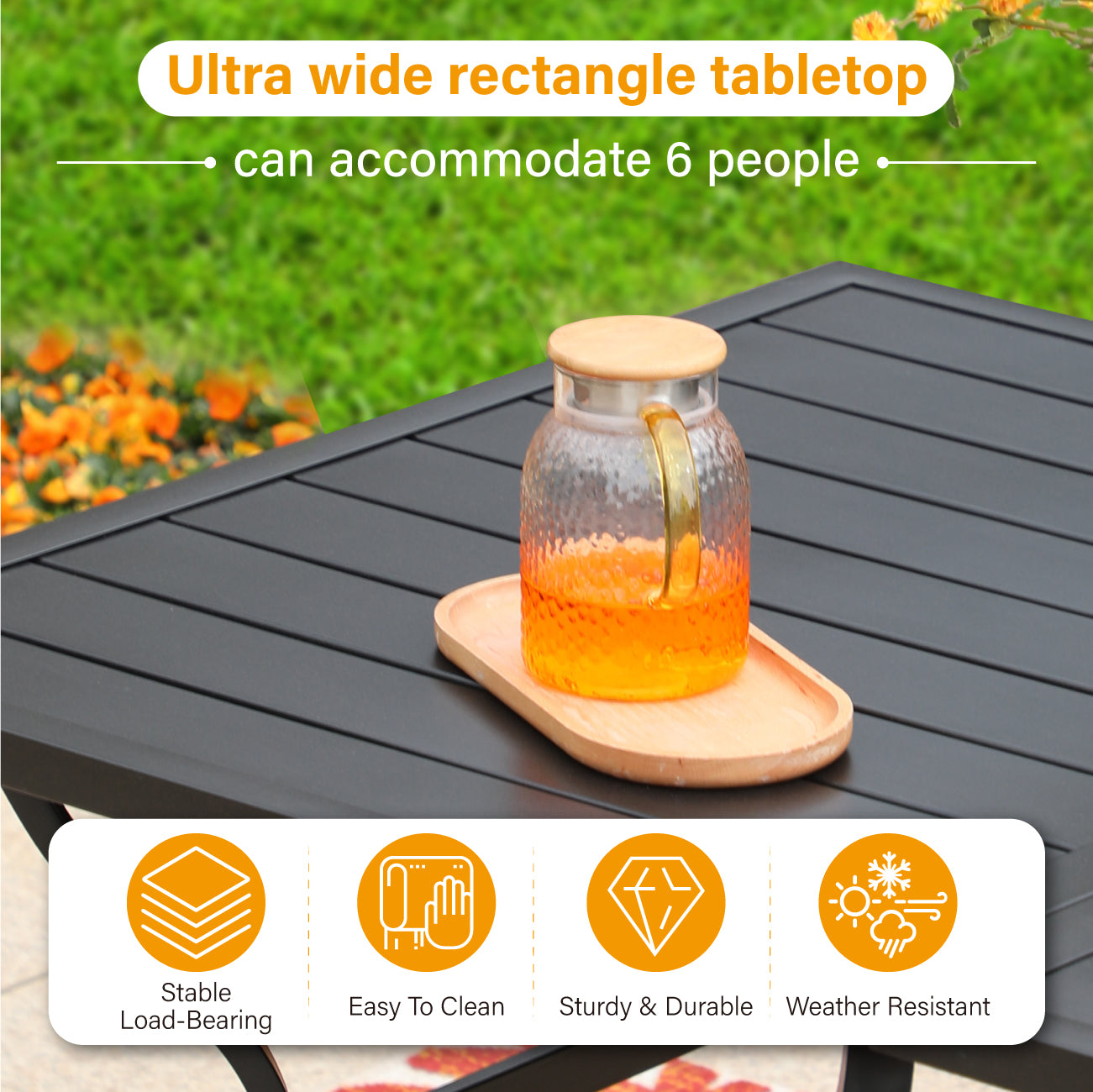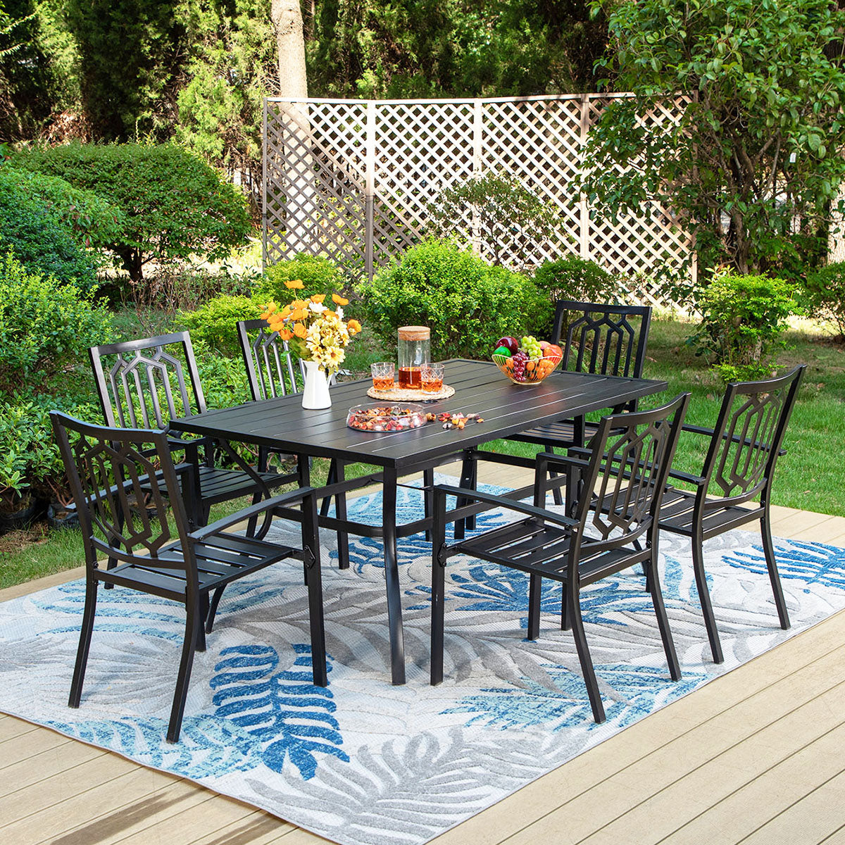 7-Piece Metal Outdoor Patio Dining Set 6 Stackable Chairs and Rectangle Patio Table