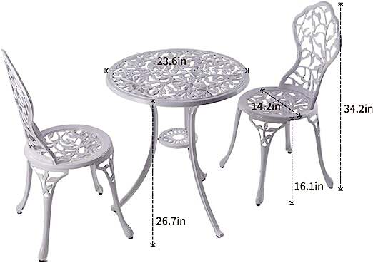 • Sets 3 Piece cast Aluminum Patio Furniture Outdoor Garden Metal Rust Proof Tables and Chairs White bisrto Set (Leaf-White)