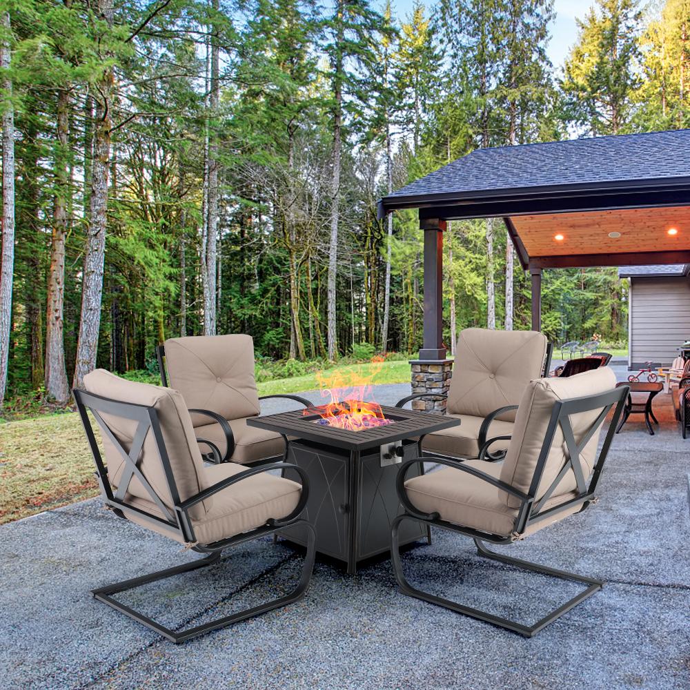 5-Piece Outdoor Patio Dining Set With Wood-look Table and 4 Pattern Swivel Chairs