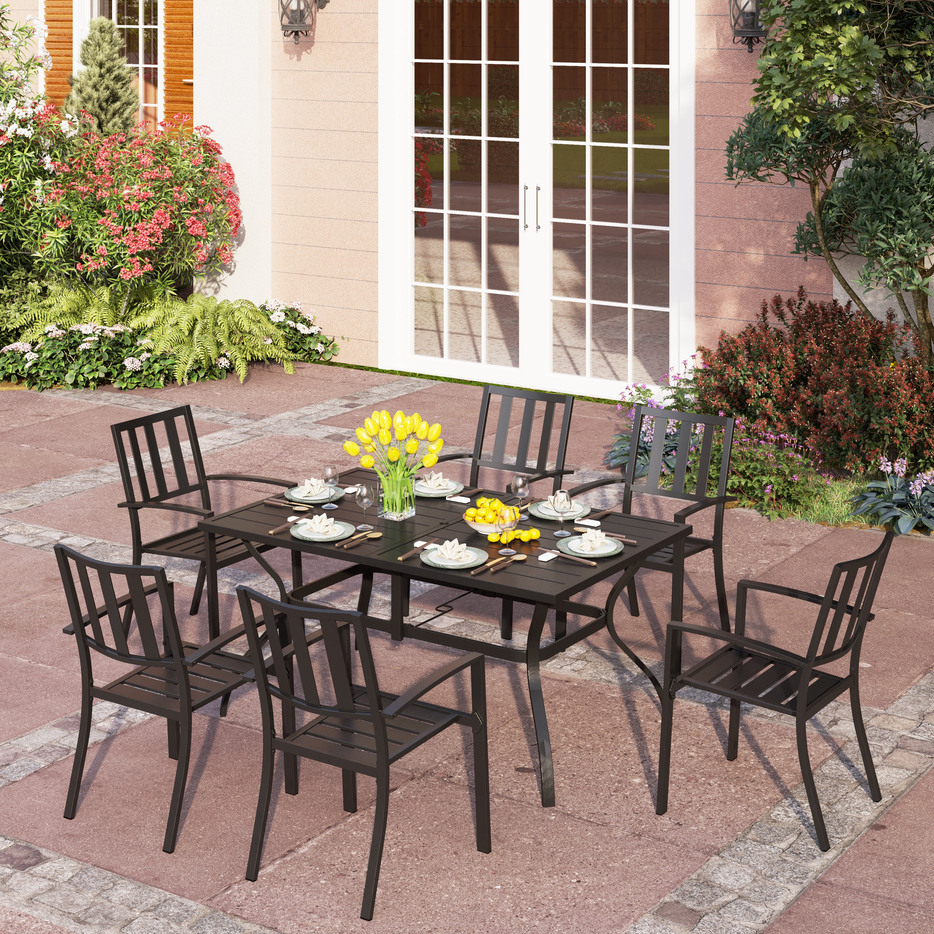 7-Piece Metal Outdoor Patio Dining Set 6 Stackable Chairs and Rectangle Patio Table