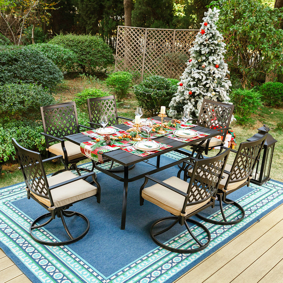 7-Piece Outdoor Patio Dining Set 6 Swivel Chairs and Rectangle Steel Table