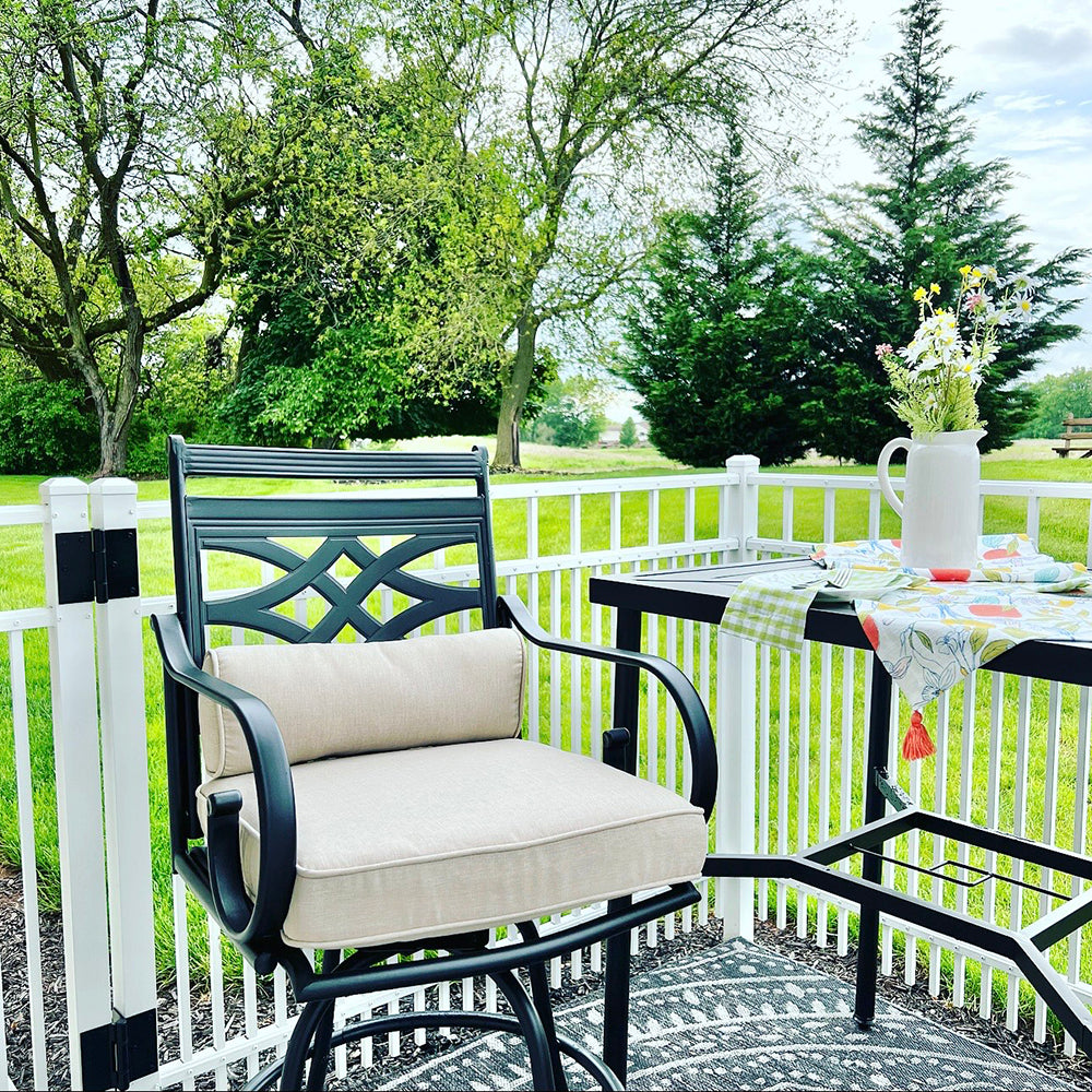Outdoor Bar Stools Set with Steel Swivel Cushioned Bar Stools and High Table with Geometric Patterns