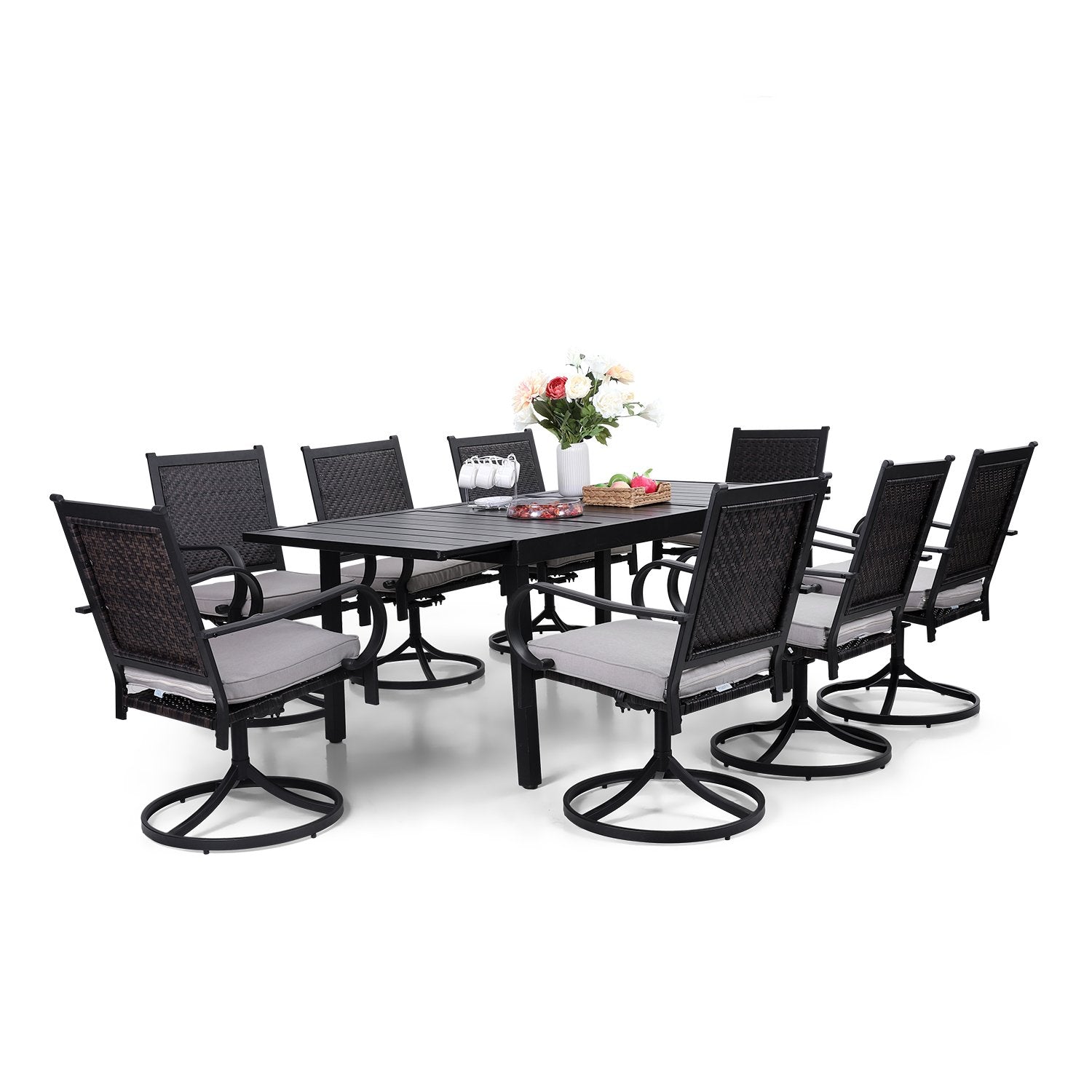 7-Piece/9-Piece Patio Outdoor Dining Set With Steel Extendable Table & Rattan Swivel Chairs