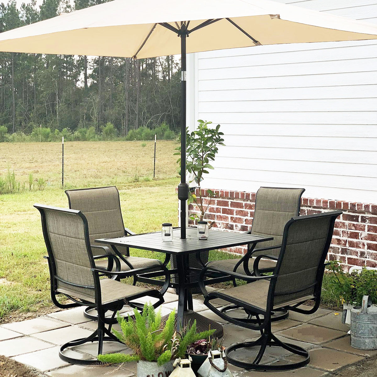 5-Piece Outdoor Dining Set 4 Swivel Steel Chairs and Square Table