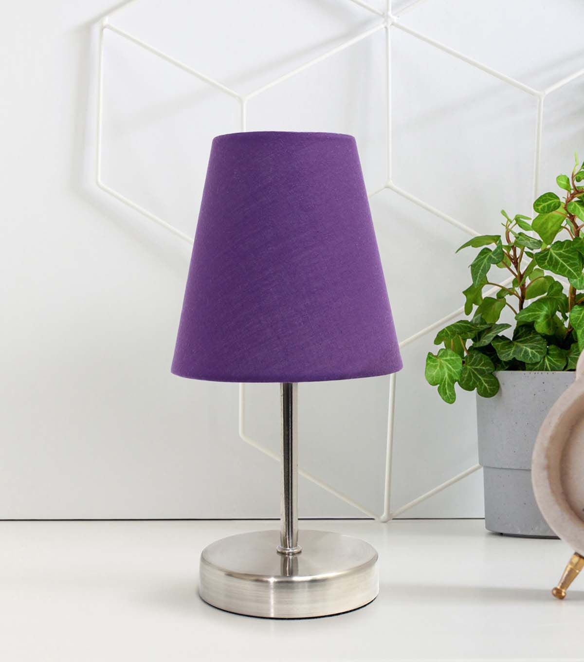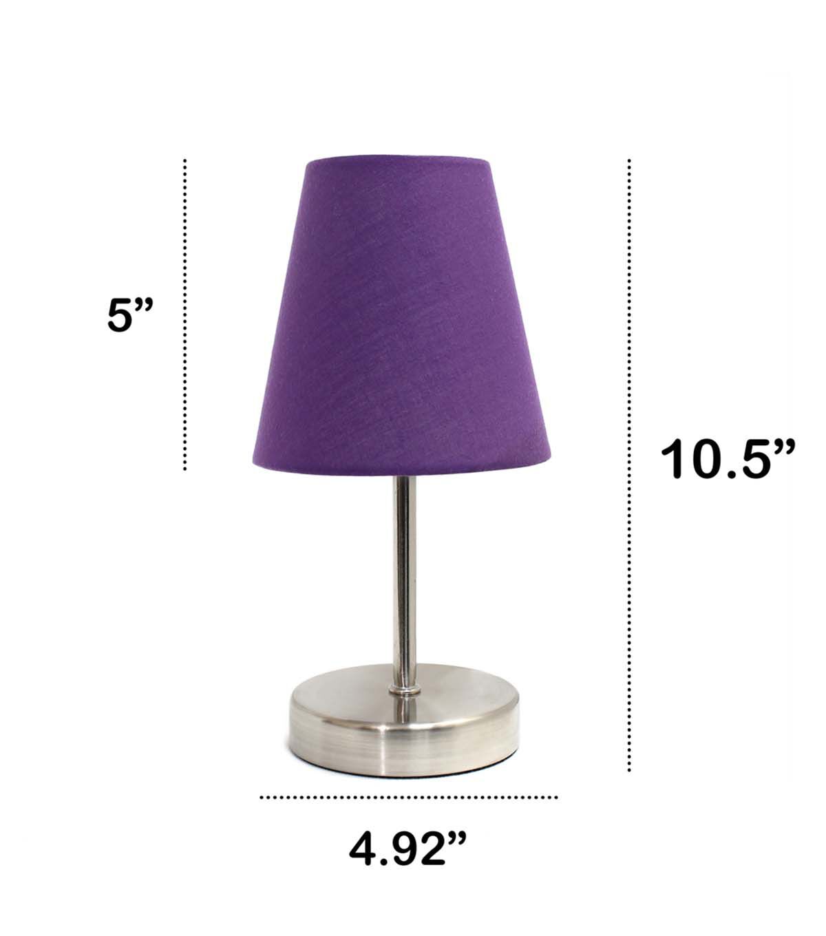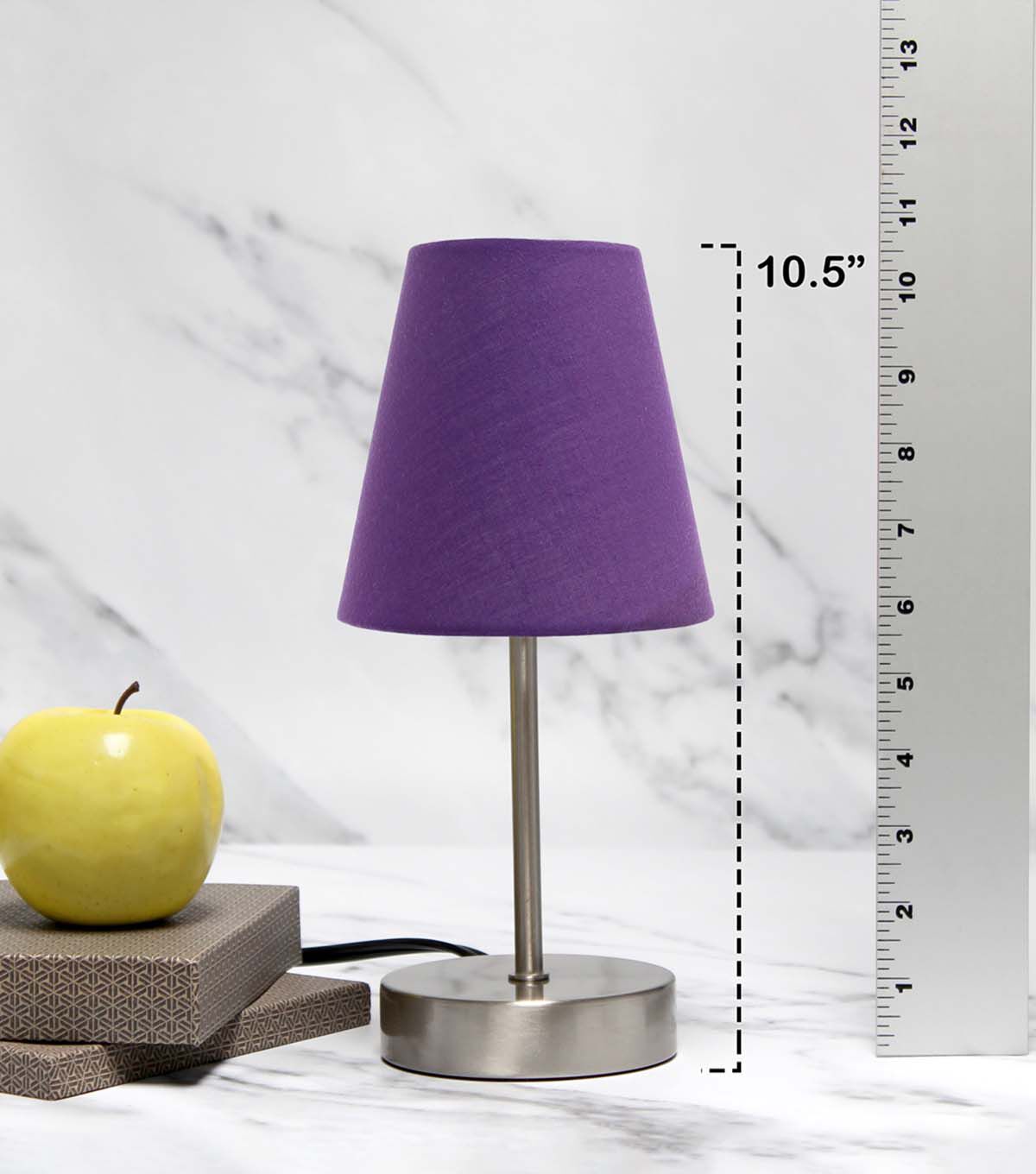 This timeless styled table lamp is unique to its size, standing at just 10.5" tall to sit perfectly atop your bedroom nightstand, end table, college dorm desk, or child's room. A round bottom stick base is fixed beneath a standard empire fabric shade in a number of different color options to compliment your space as needed. You'll find the perfect shade color option to suit your decor needs in no time.