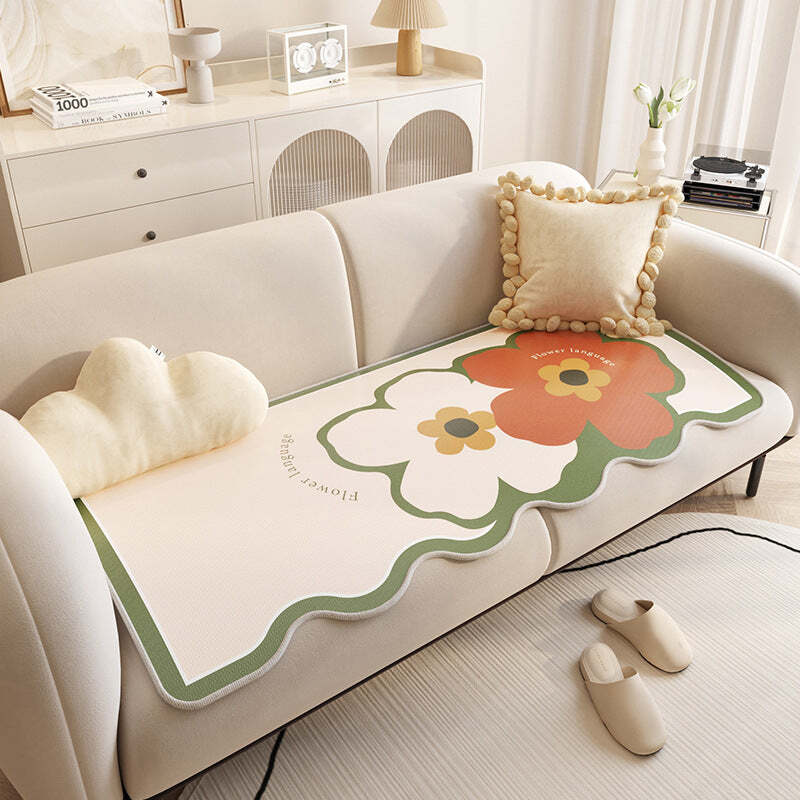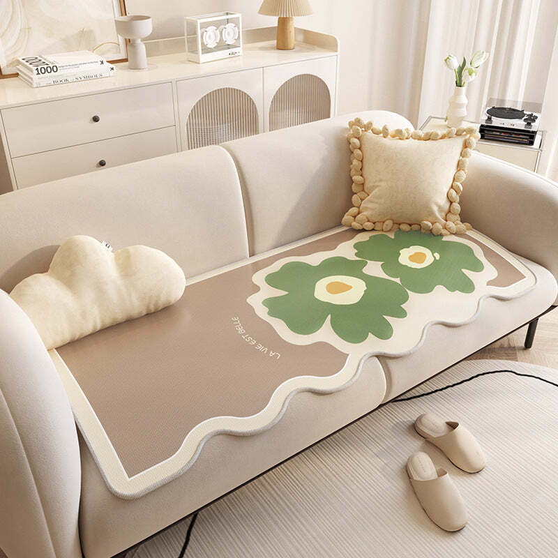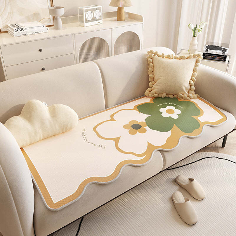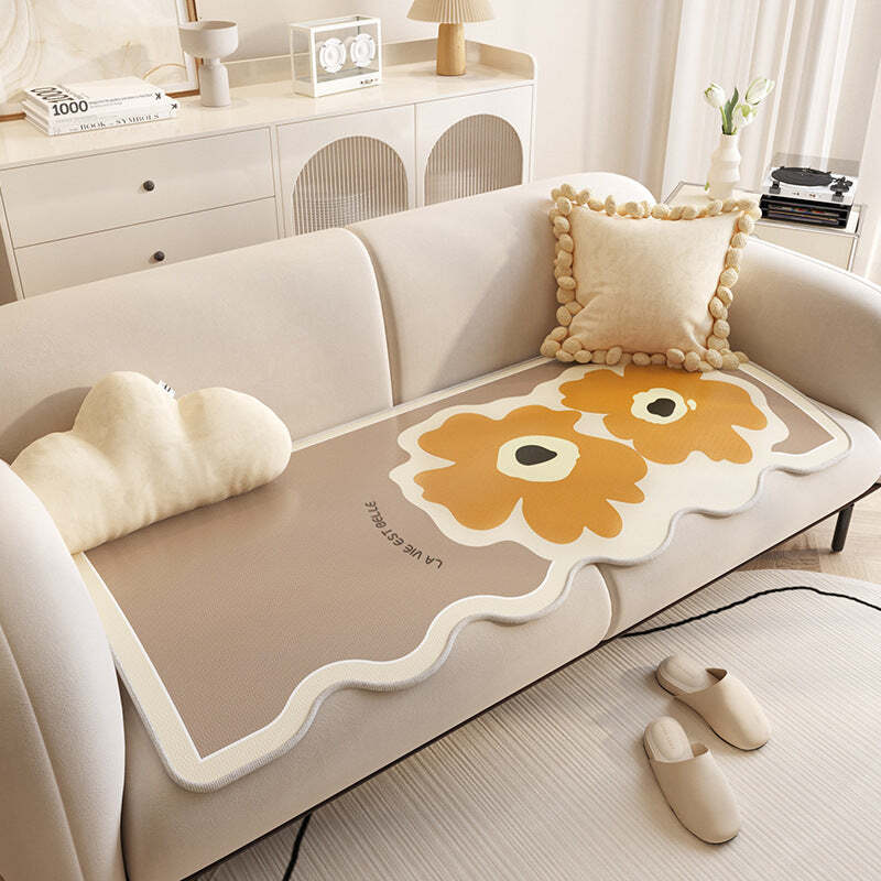 Flower Ice Silk Non-Slip Sofa Cover Anti-Scratch Couch Cover Pet Mat
