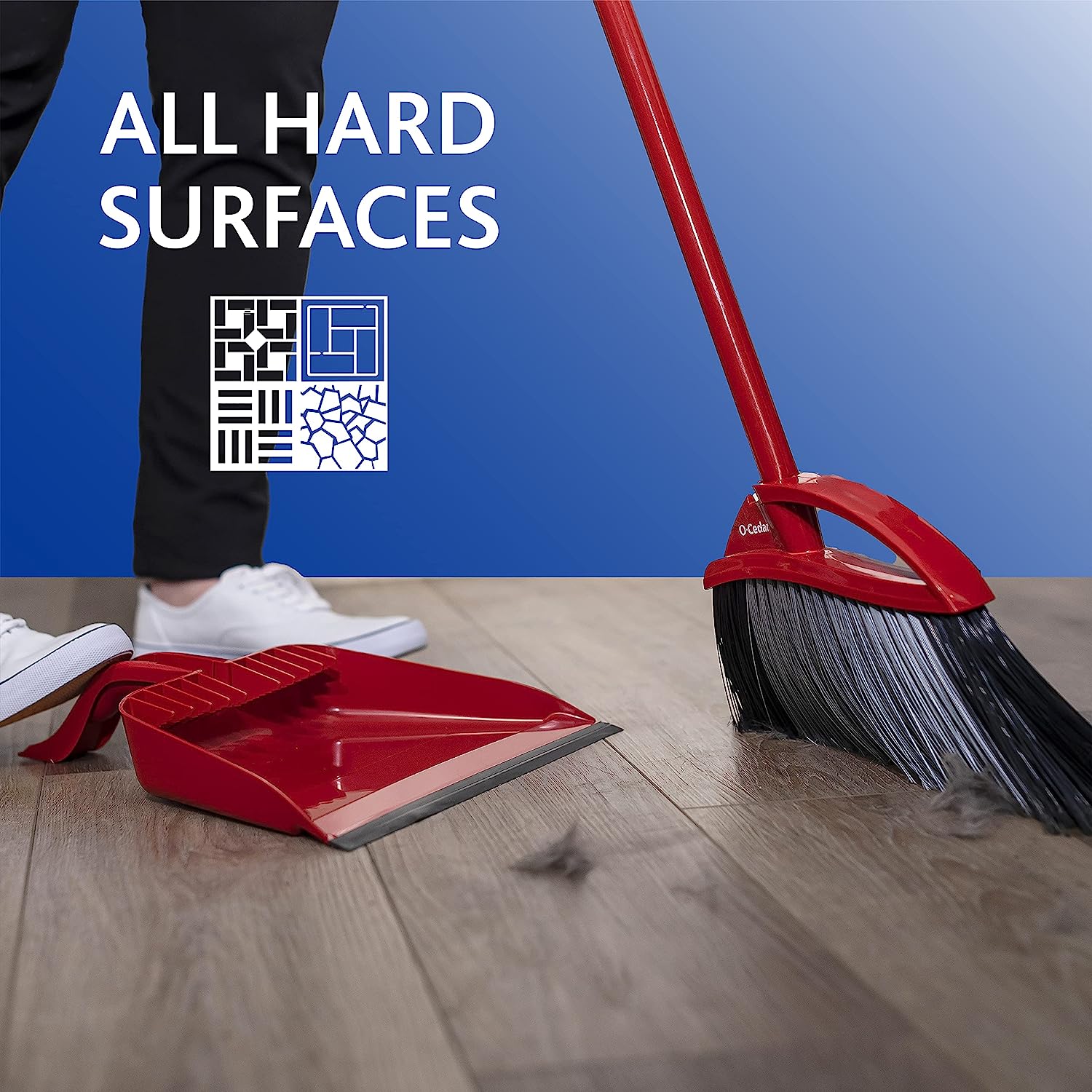 O-Cedar Pet Pro Broom & Step-On Dustpan PowerCorner, Red