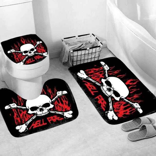 Skull Print Shower Curtain, Bath Mat, Toilet Lid Cover Or Bathroom Carpet