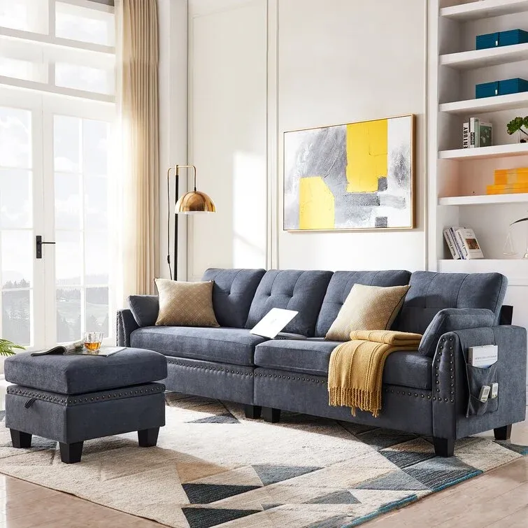 An Amazing hidden storage space underside could be a perfect place to store children’s toys, blankets, or remote control to make the room tidy and organized. The ottoman can be placed on the left or right side of this sofa to customize your space easily.