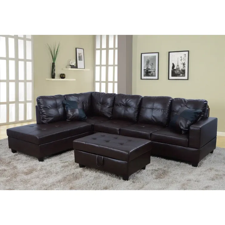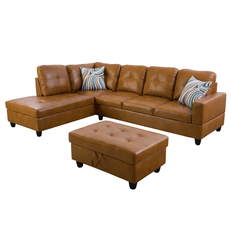 Wilhelmine 103.5" Wide Faux Leather Sofa & Chaise with Ottoman
