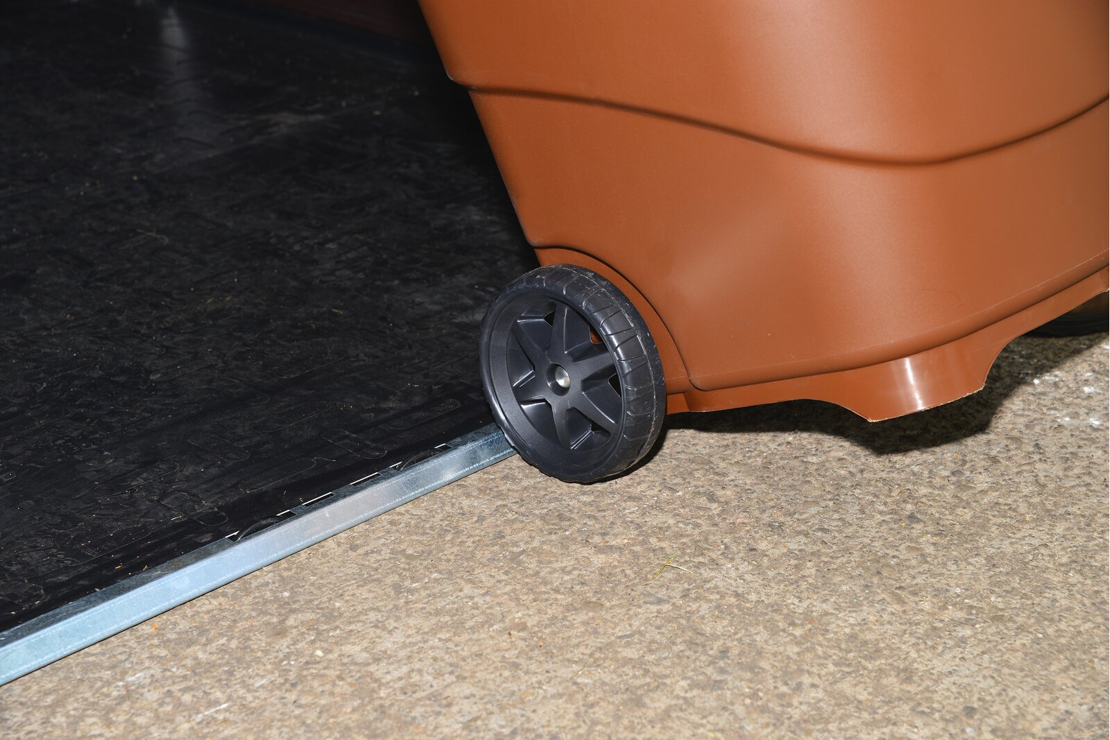 - A low-threshold ramp & wide double door provide easy access and the lockable door latch is standard (lock not included)