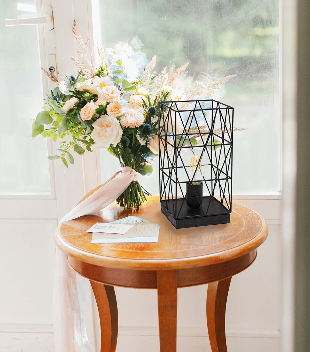 This metal table lamp with a retro inspired shade will add ambiance and style to any room in your home! With a trendy cut out design this lamp illuminates beautifully. Undoubtedly the perfect accent piece to your home, this lamp will not disappoint! **HELPFUL TIP: To get the complete vintage look, we recommend using a decorative Edison/Vintage bulb (not included). **