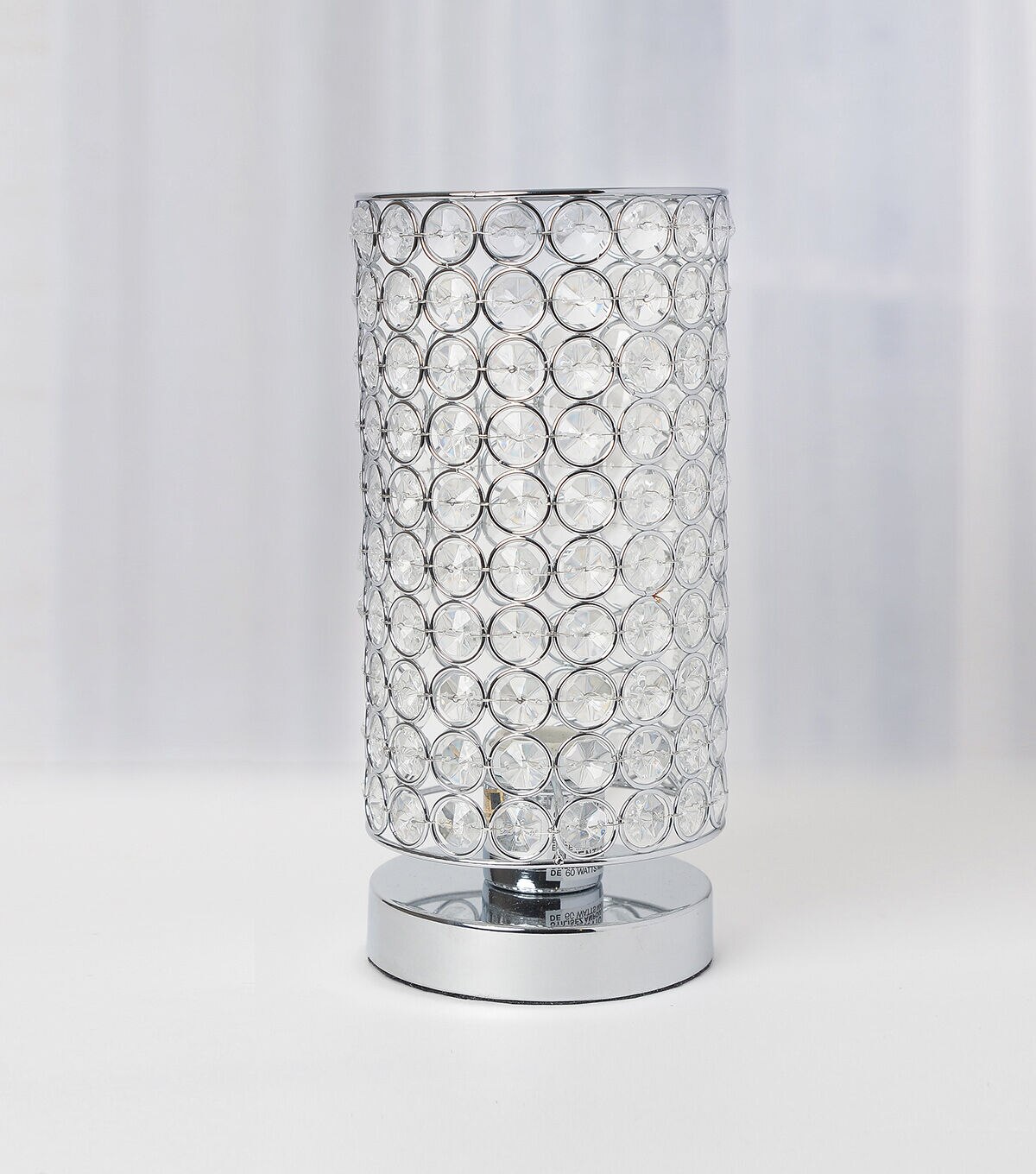 All The Rages Crystal Nightstand Cylindrical Uplight Table Lamp, Chrome