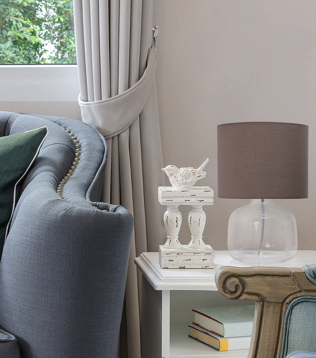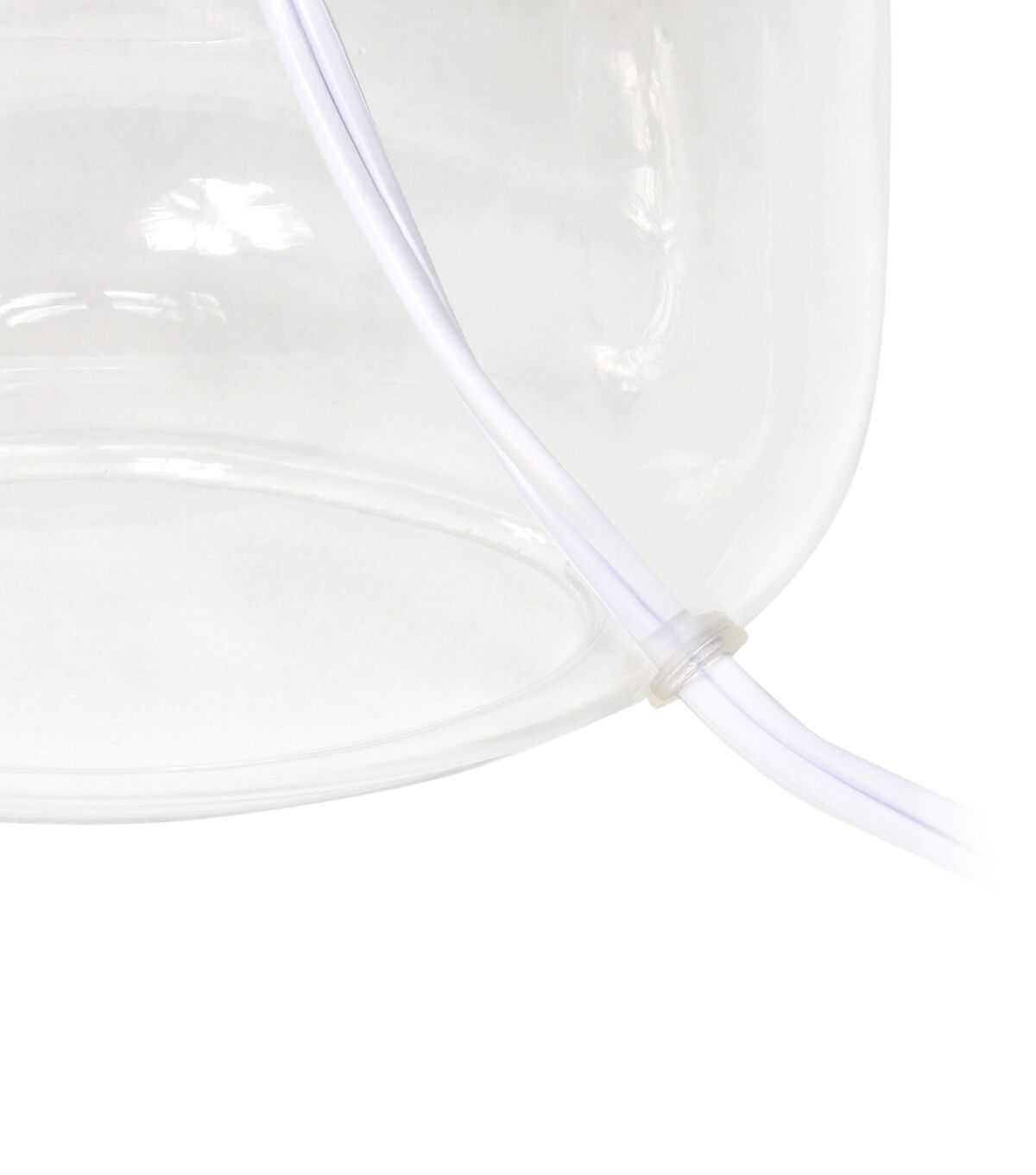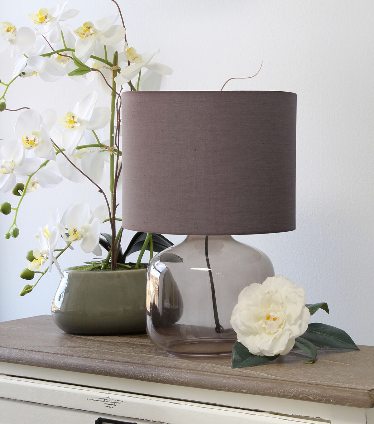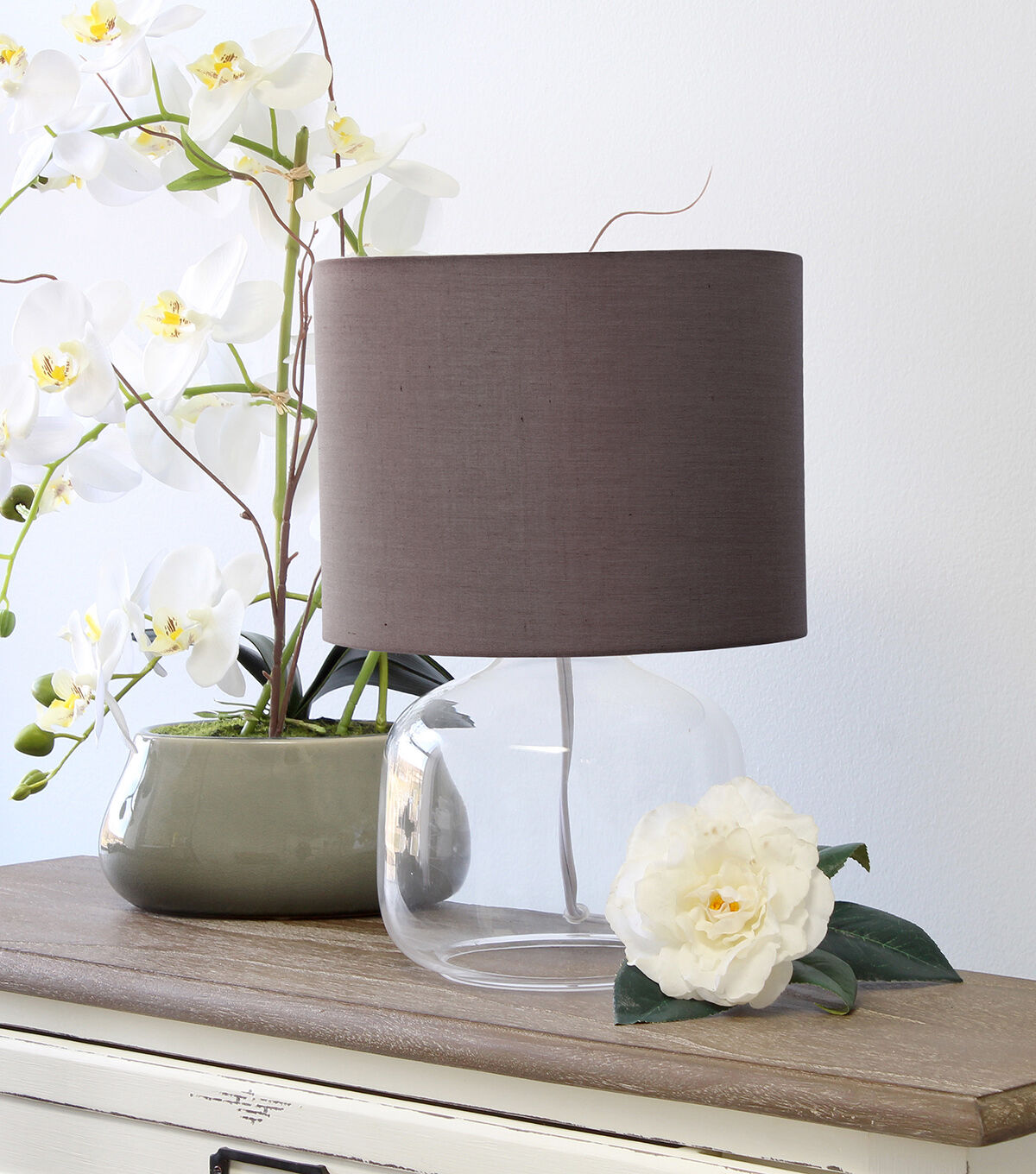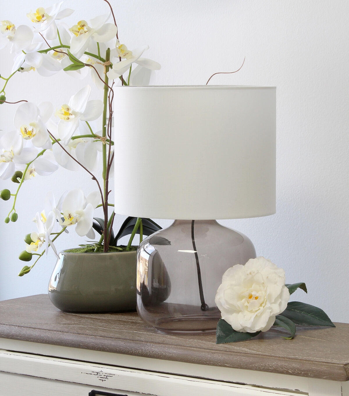 Illuminate your living space with this simple yet stylish glass table lamp. The aqua glass jar shaped base and white fabric drum shade is the perfect blend of charm to give your home a contemporary and modern upgrade. Perfect for living rooms, bedrooms, kids and teens, college dorms, apartments, nurseries, or offices.