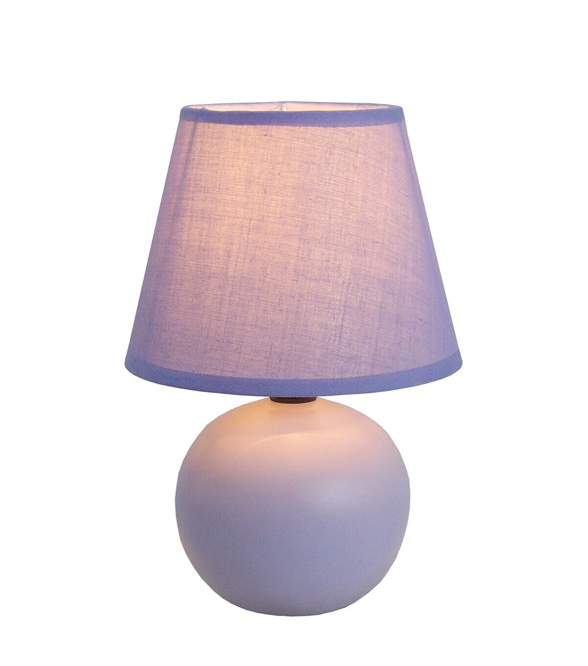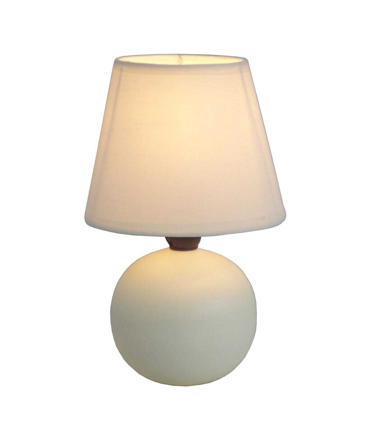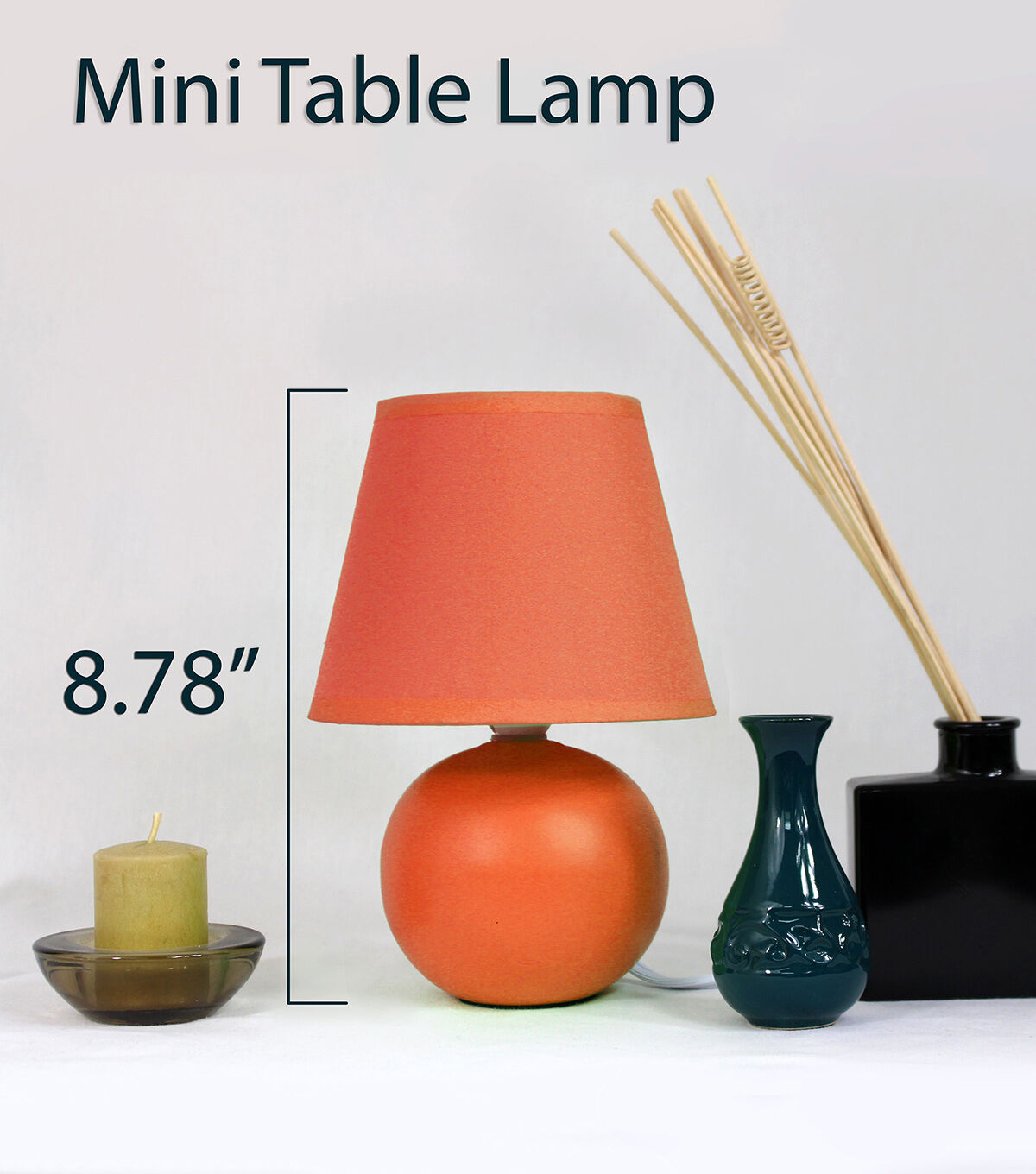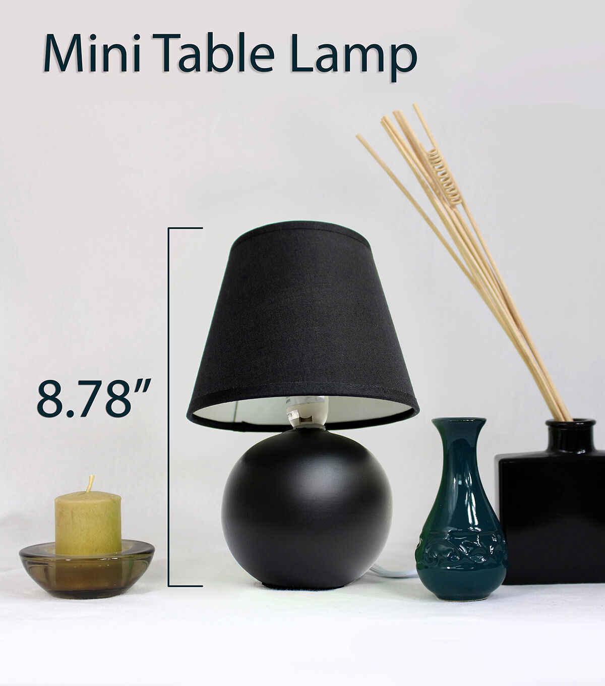 A lovely, inexpensive, and practical table lamp to meet your basic fashion lighting needs. This mini globe lamp features a ceramic base and matching fabric shade. Perfect for living room, bedroom, office, kids room, or college dorm!