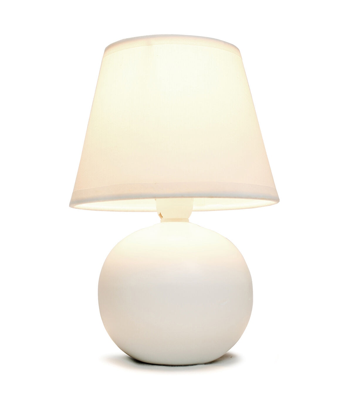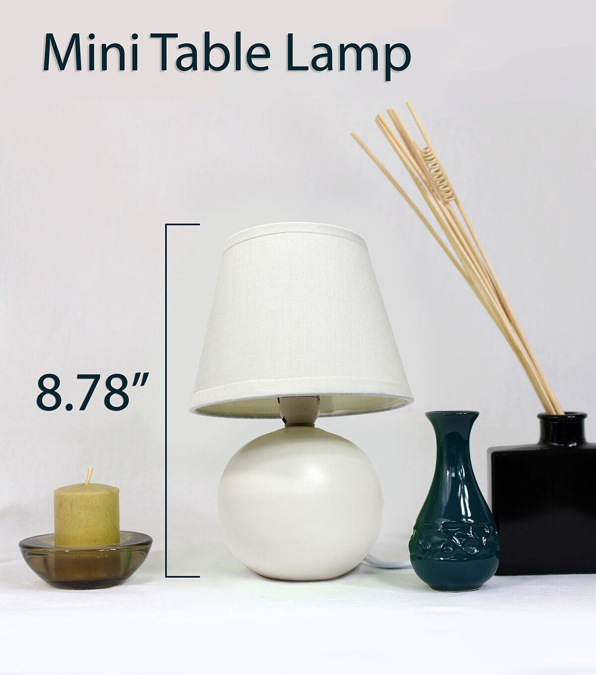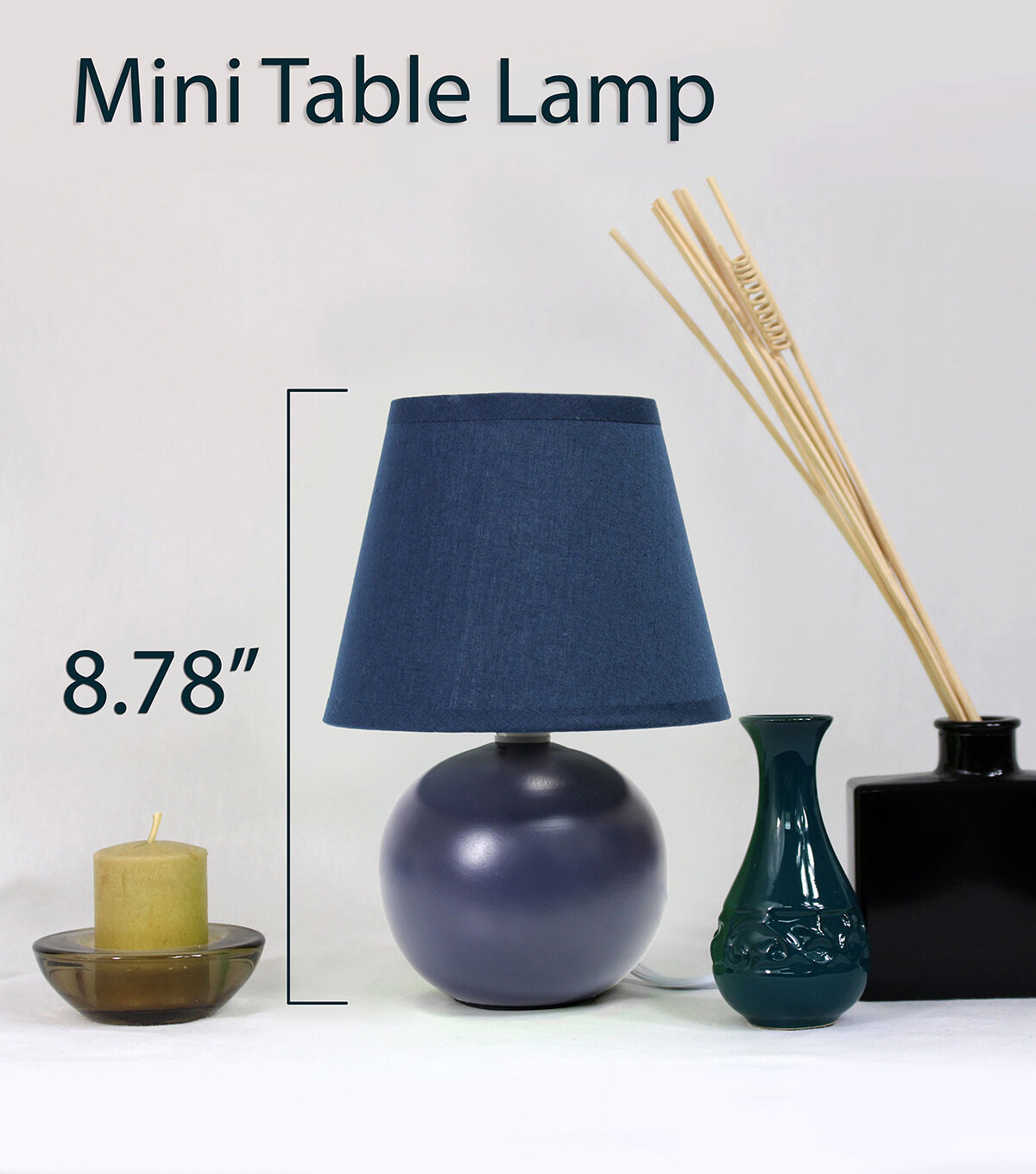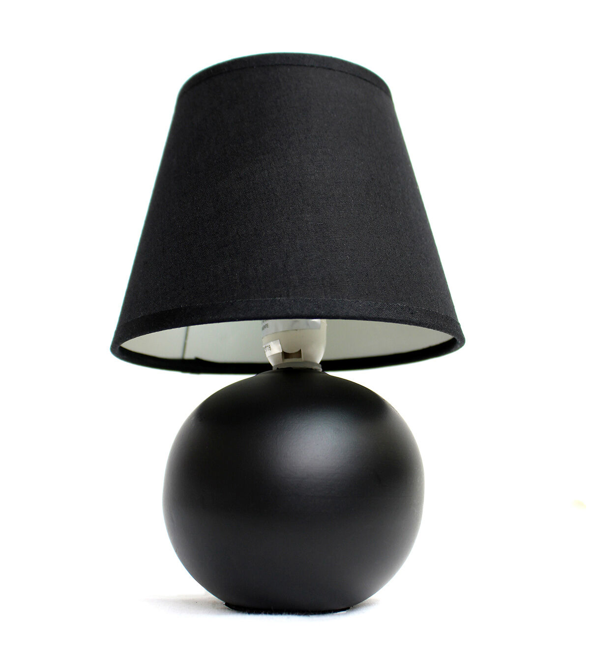 A lovely, inexpensive, and practical table lamp to meet your basic fashion lighting needs. This mini globe lamp features a ceramic base and matching fabric shade. Perfect for living room, bedroom, office, kids room, or college dorm!