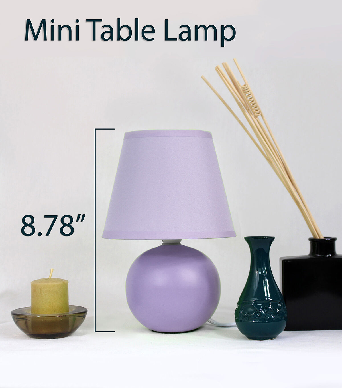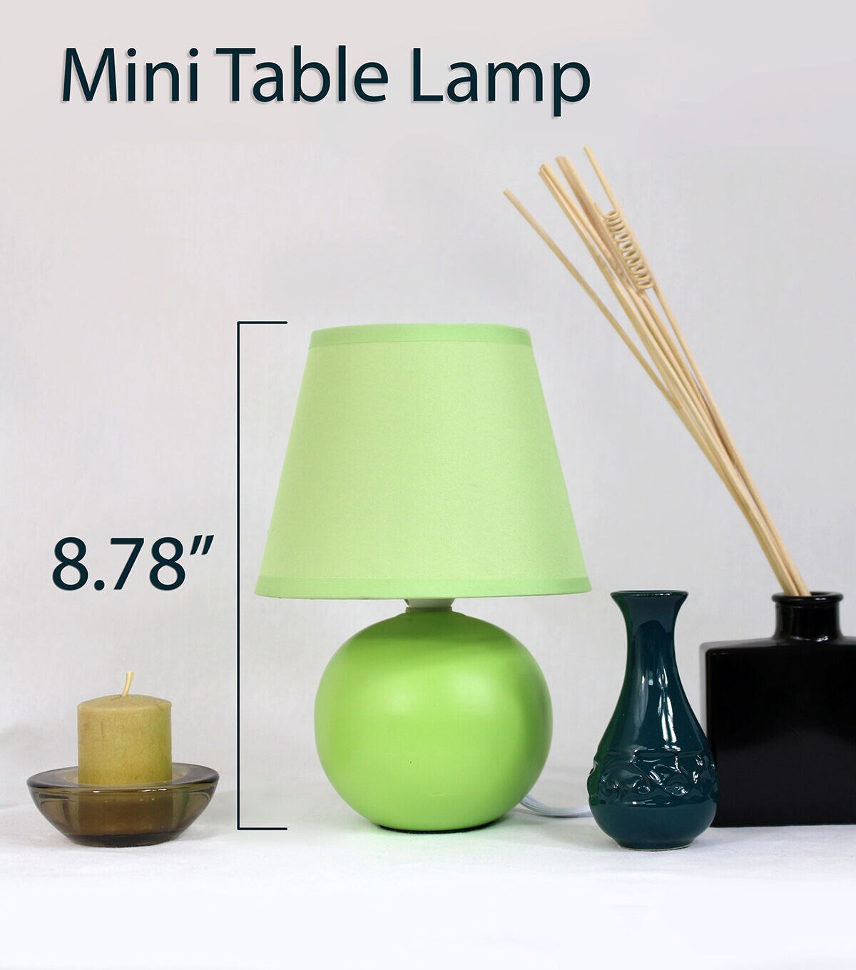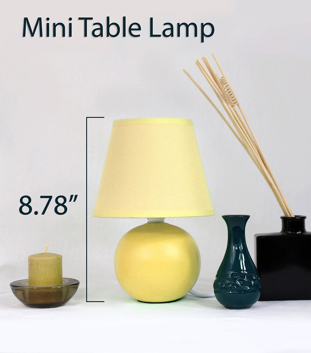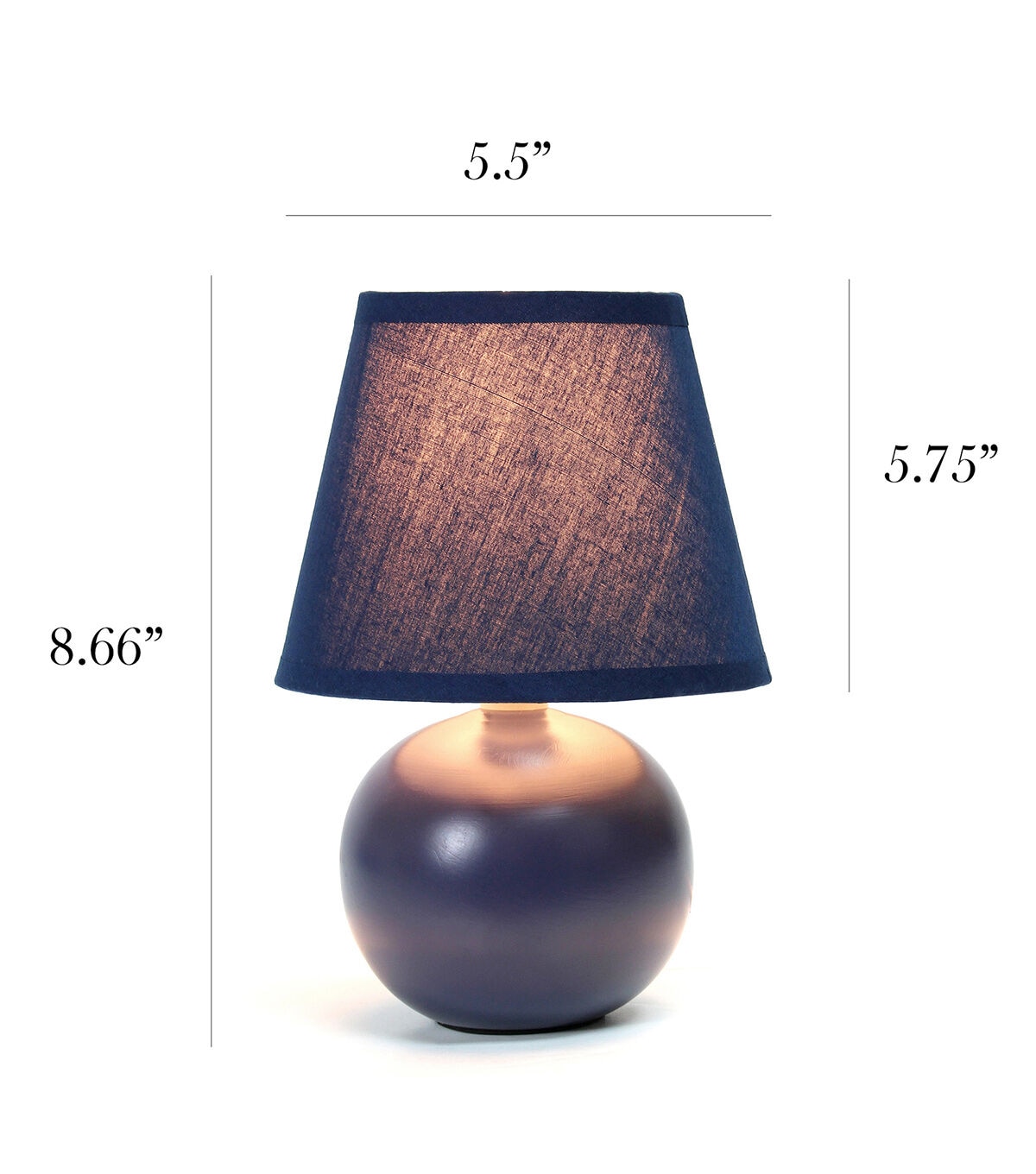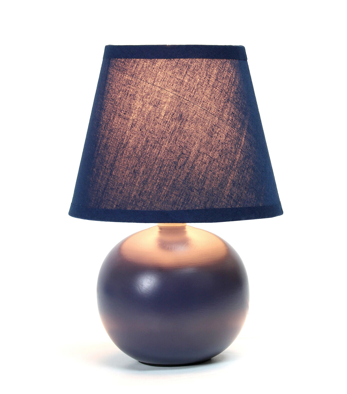 A lovely, inexpensive, and practical table lamp to meet your basic fashion lighting needs. This mini globe lamp features a ceramic base and matching fabric shade. Perfect for living room, bedroom, office, kids room, or college dorm!