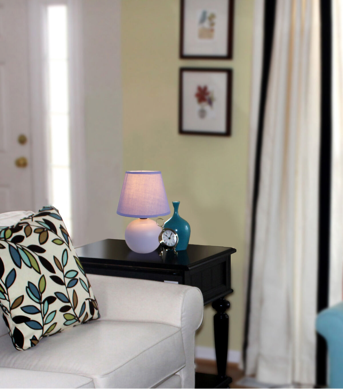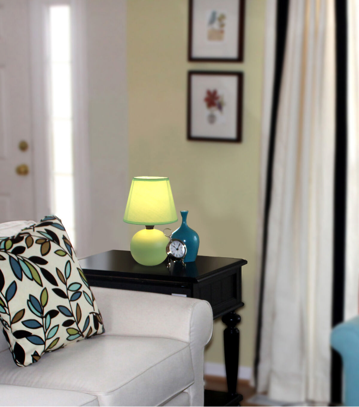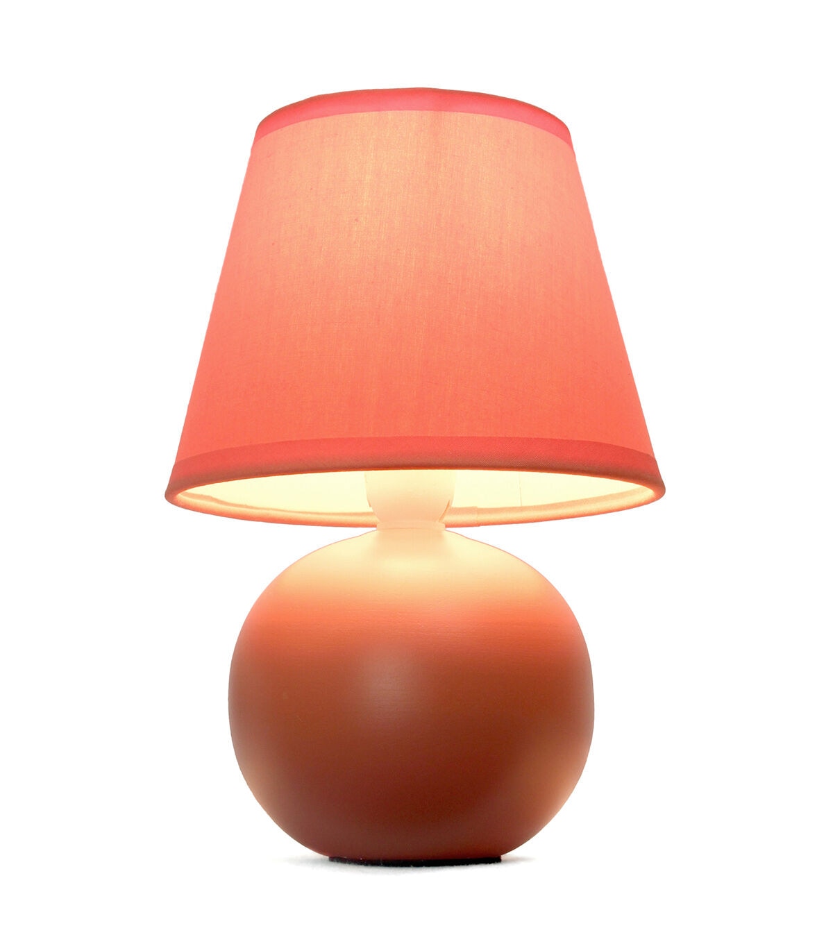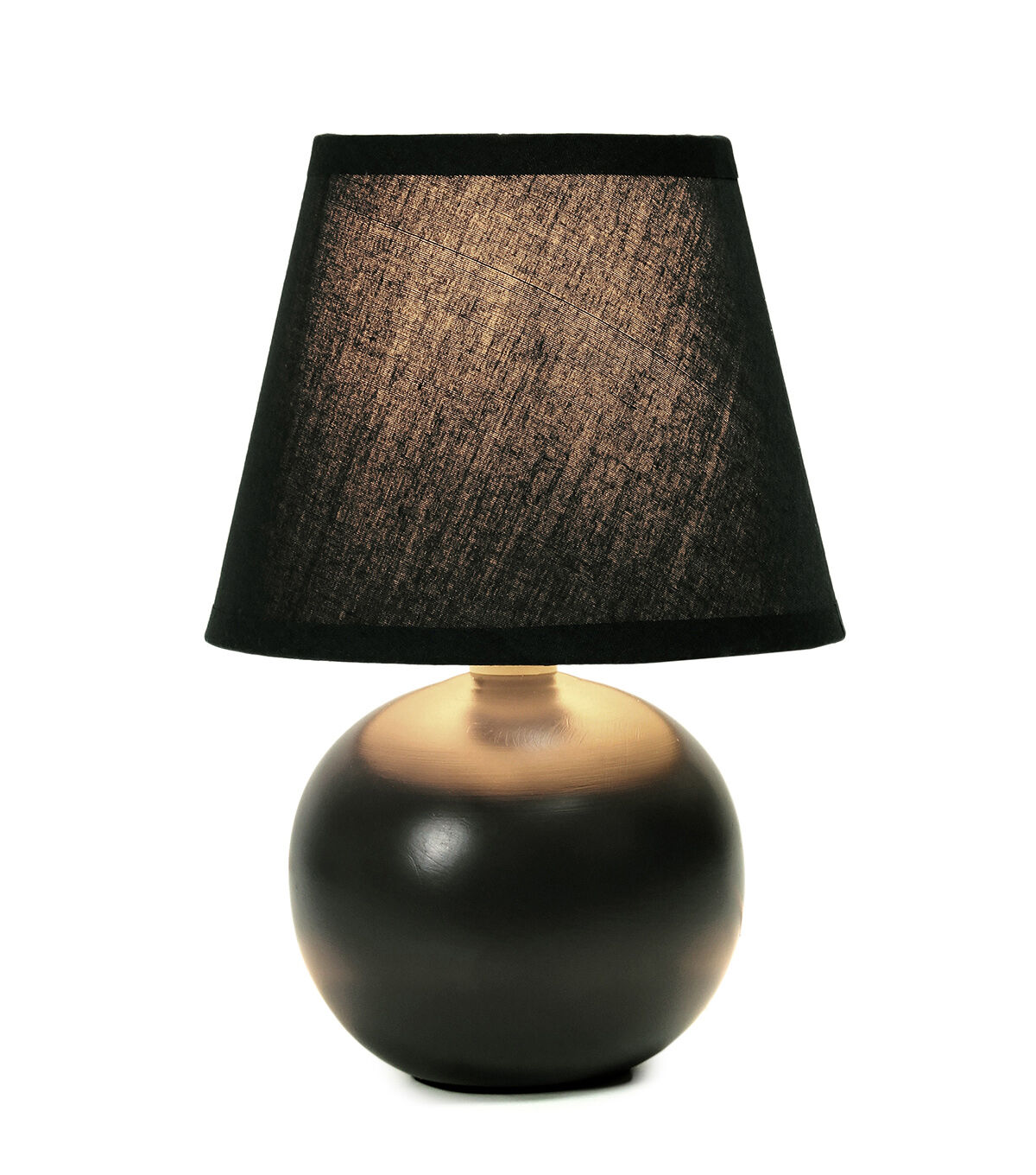 A lovely, inexpensive, and practical table lamp to meet your basic fashion lighting needs. This mini globe lamp features a ceramic base and matching fabric shade. Perfect for living room, bedroom, office, kids room, or college dorm!
