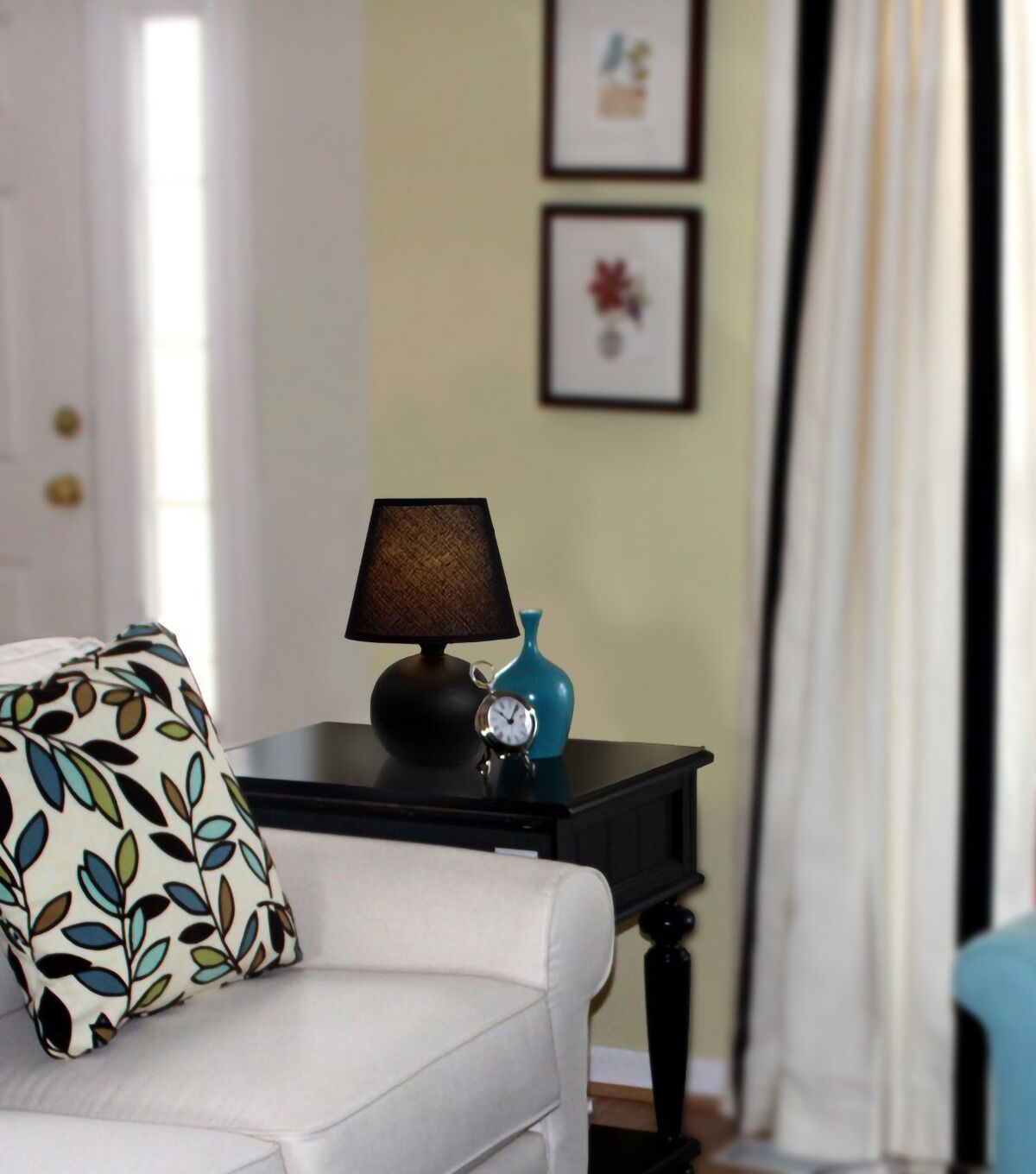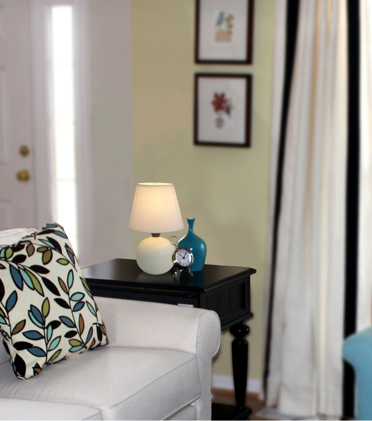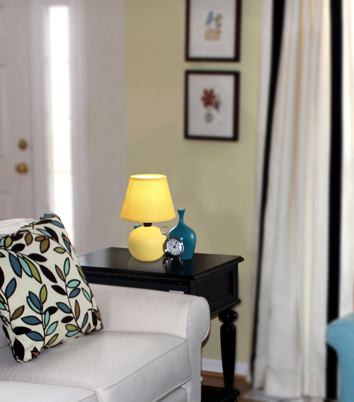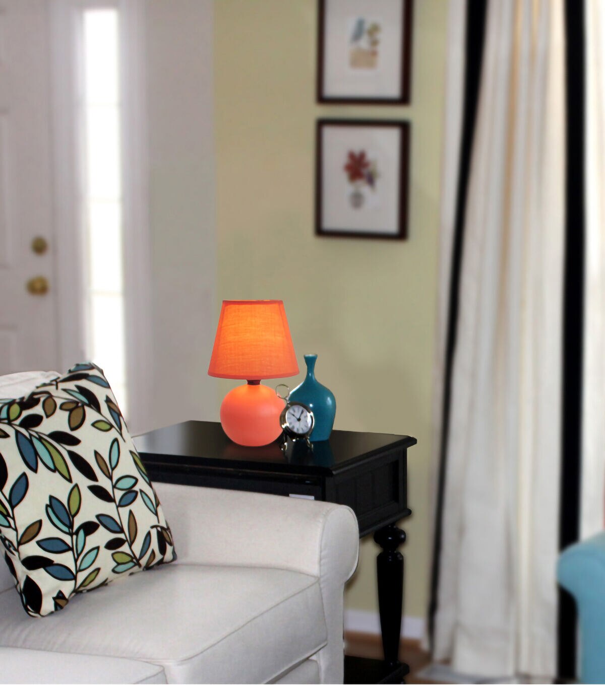 A lovely, inexpensive, and practical table lamp to meet your basic fashion lighting needs. This mini globe lamp features a ceramic base and matching fabric shade. Perfect for living room, bedroom, office, kids room, or college dorm!