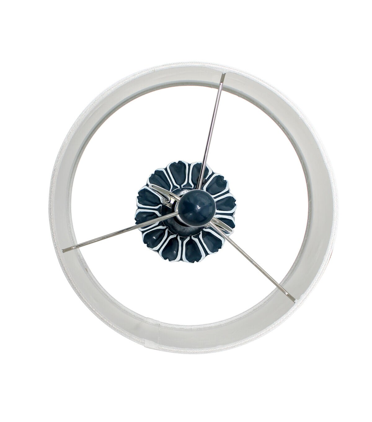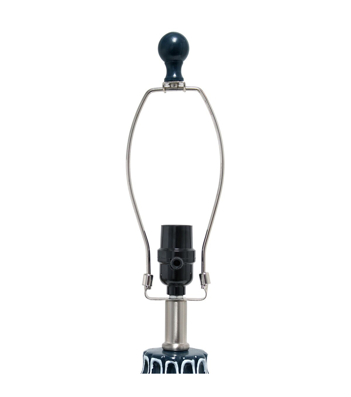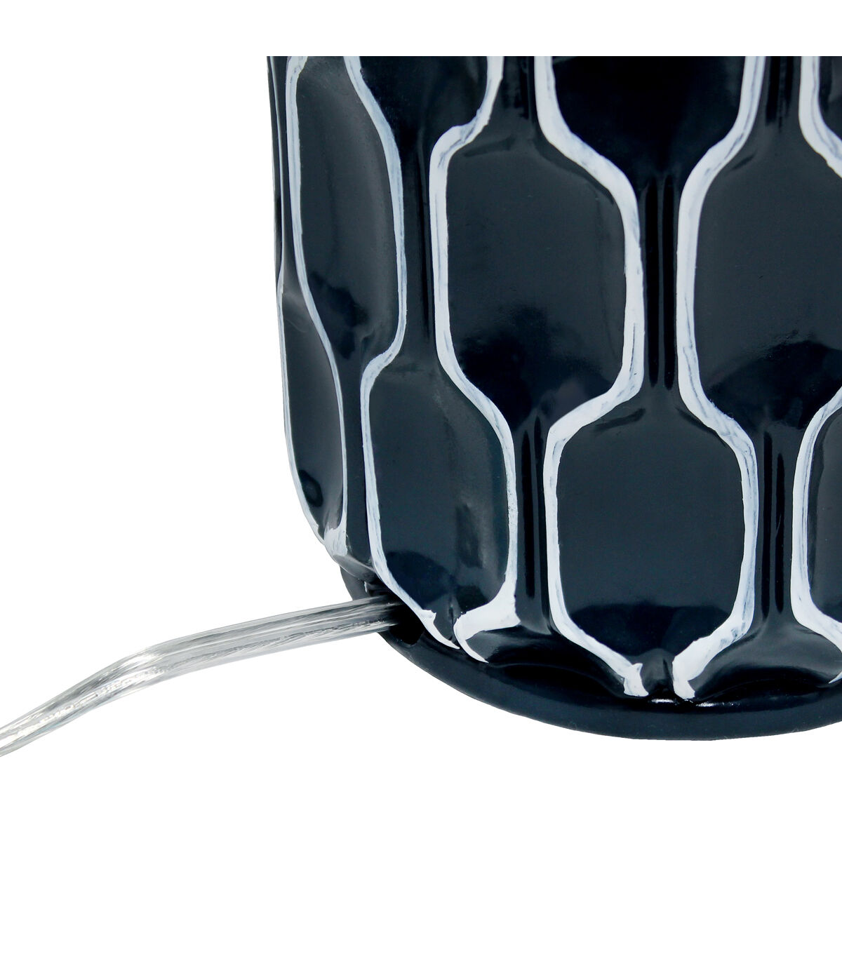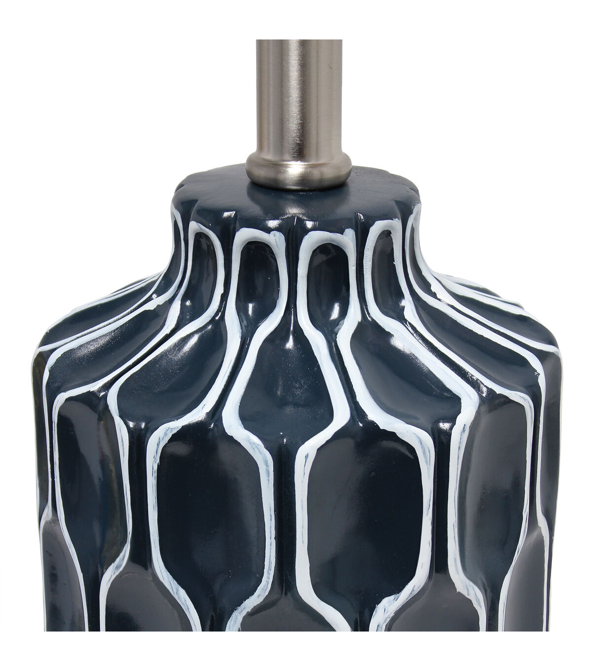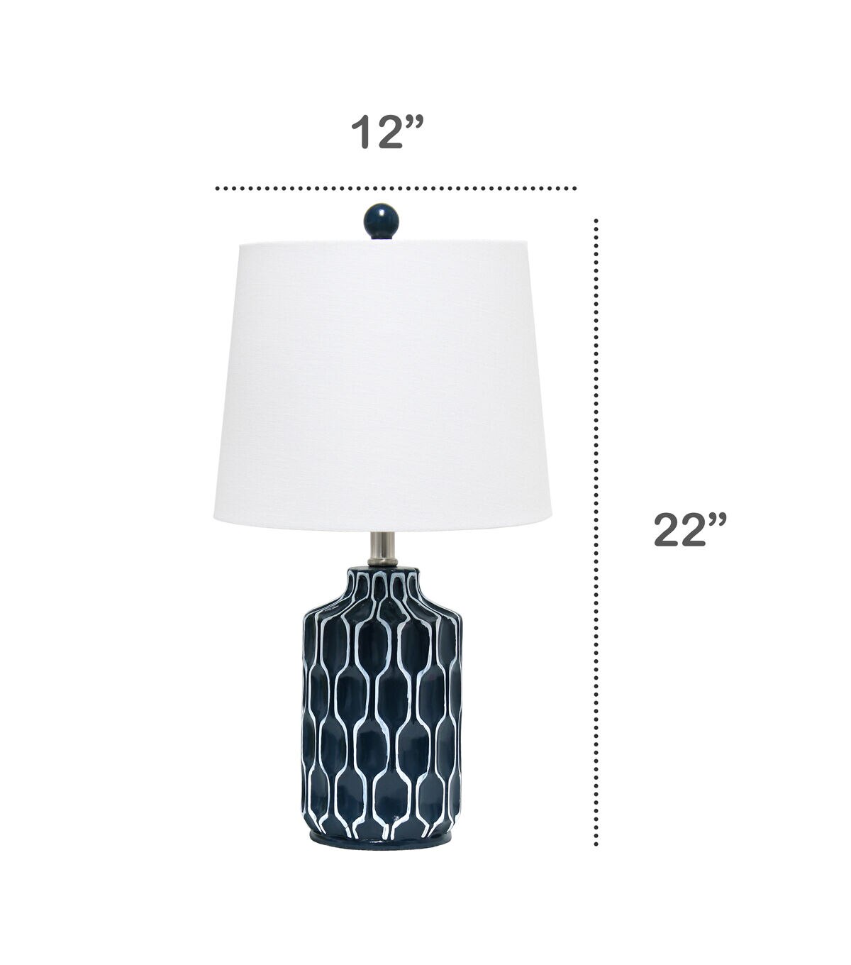 Enhance any room in your home with this contemporary table lamp. The blue base features a simple yet stylish handpainted white design and is complemented by a white fabric shade. Perfect for adding the little refresh to your living room, bedroom, foyer or office that you've been looking for!