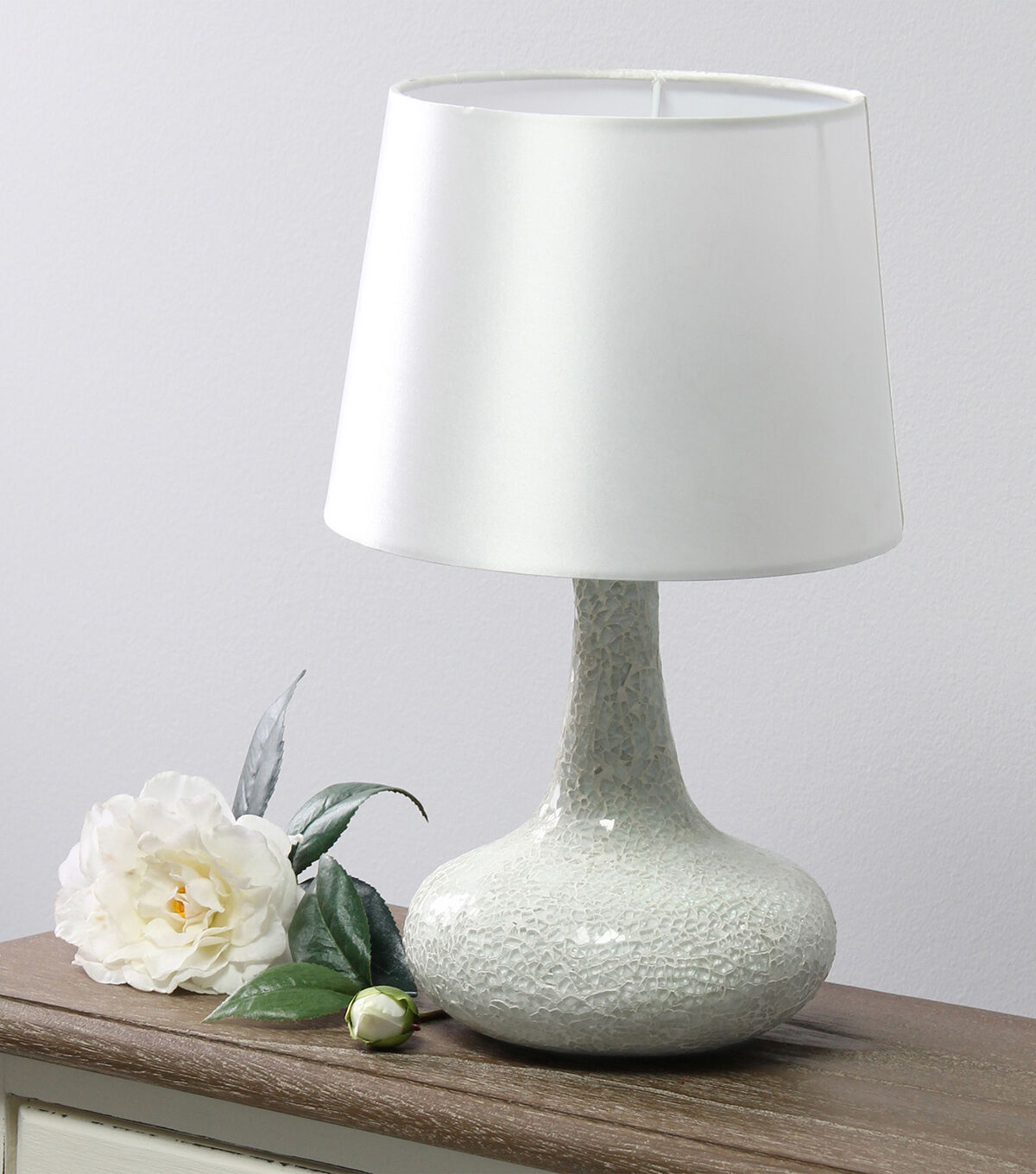 Bejewel your home with this gorgeous and unique genie table lamp. It features a beautiful mosaic tiled base and matching fabric shade. This fabulously chic design will be the envy of all your friends! We believe that lighting is like jewelry for your home. Our products will help to enhance your room with elegance and sophistication.