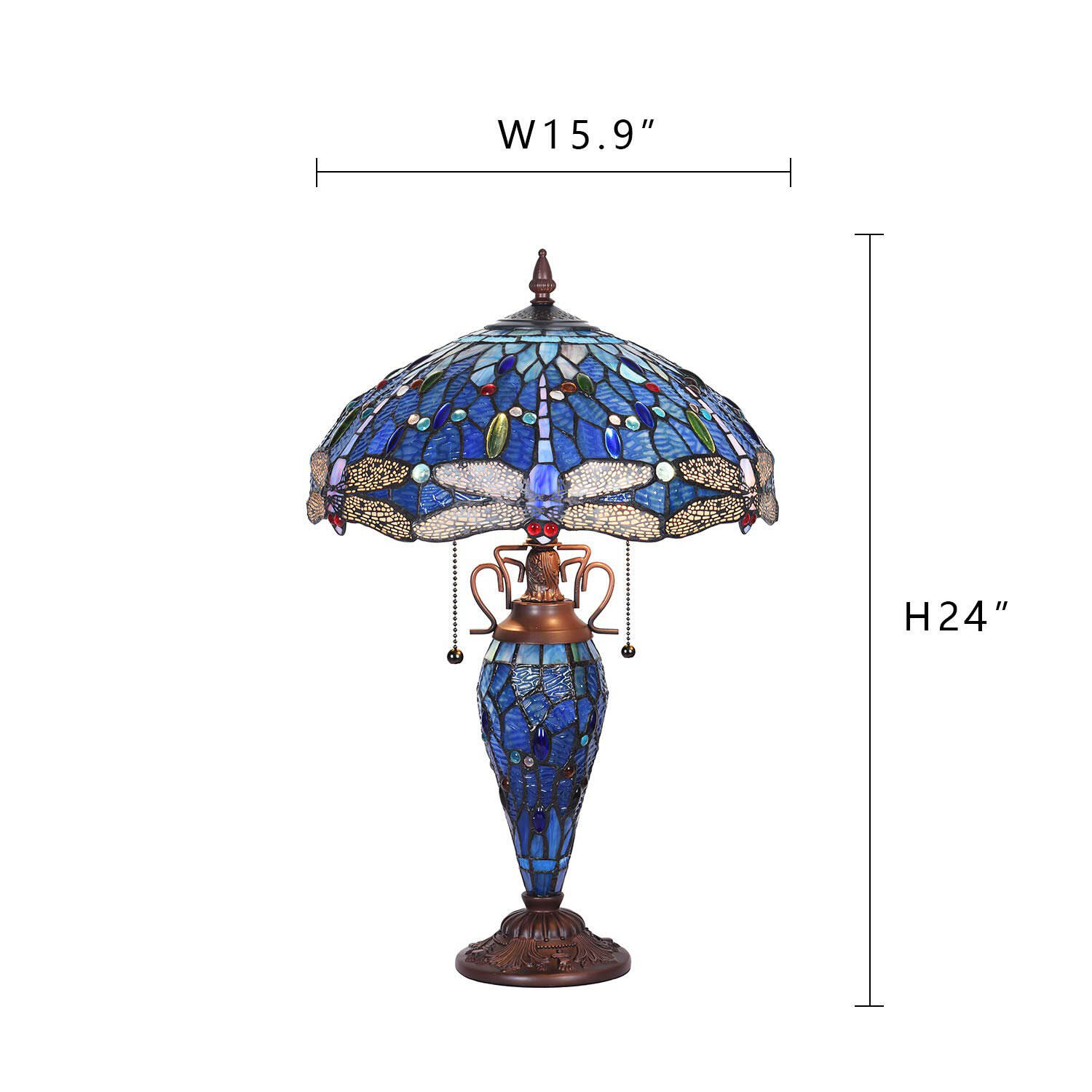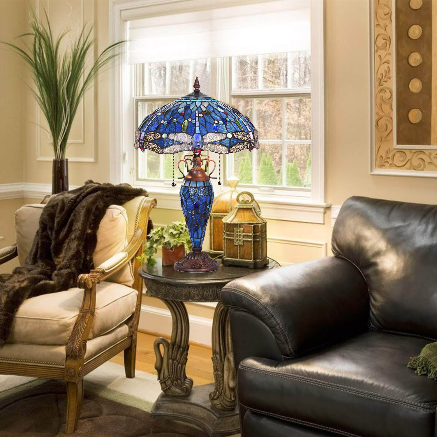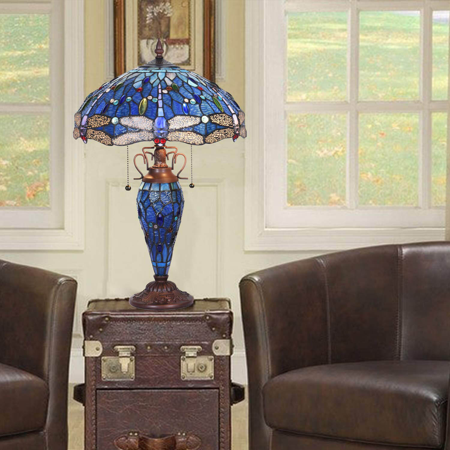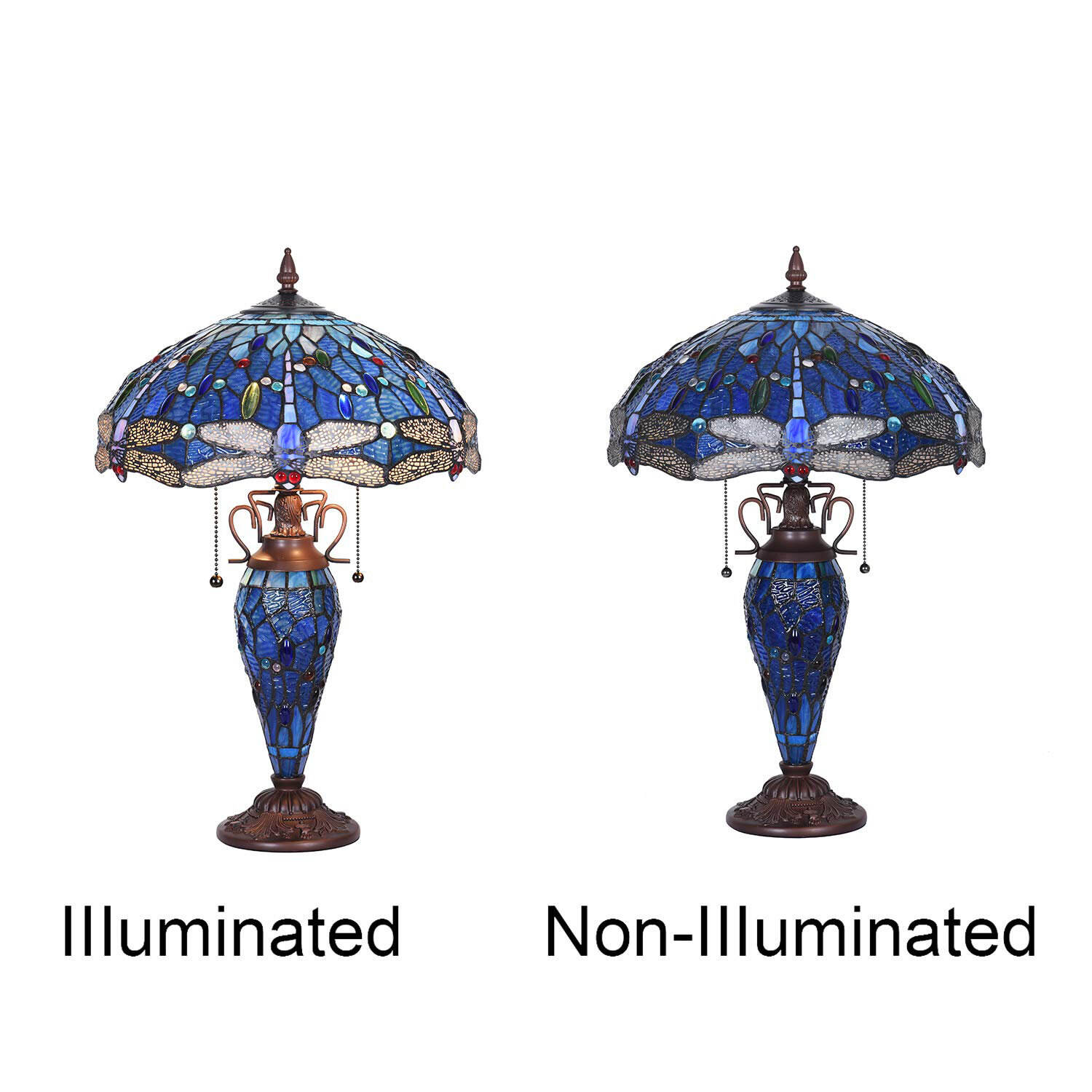 Dragonfly Style Tiffany Large Table Lamp 3-Light With Nightlight Rustic Antique Desk Light
